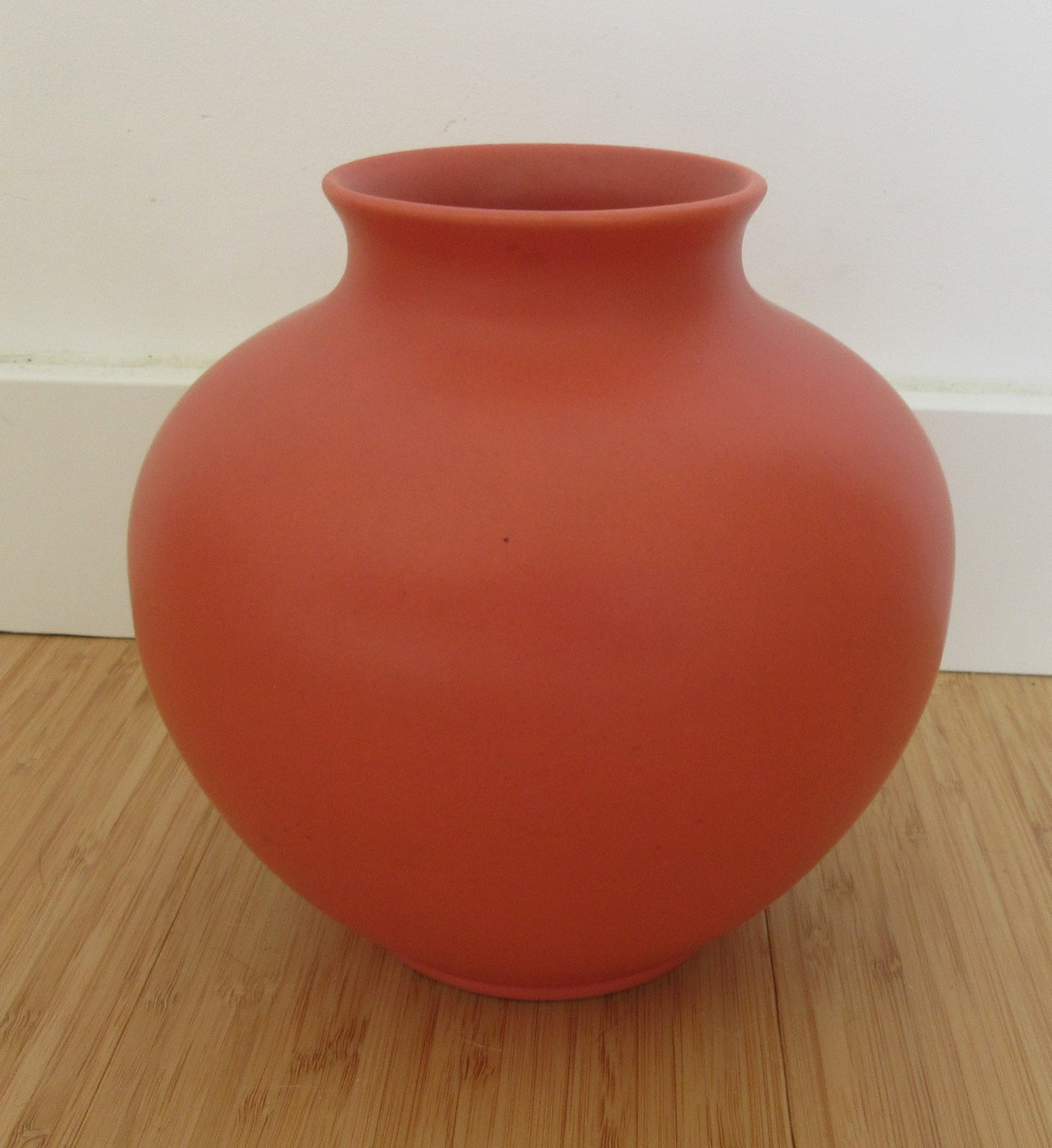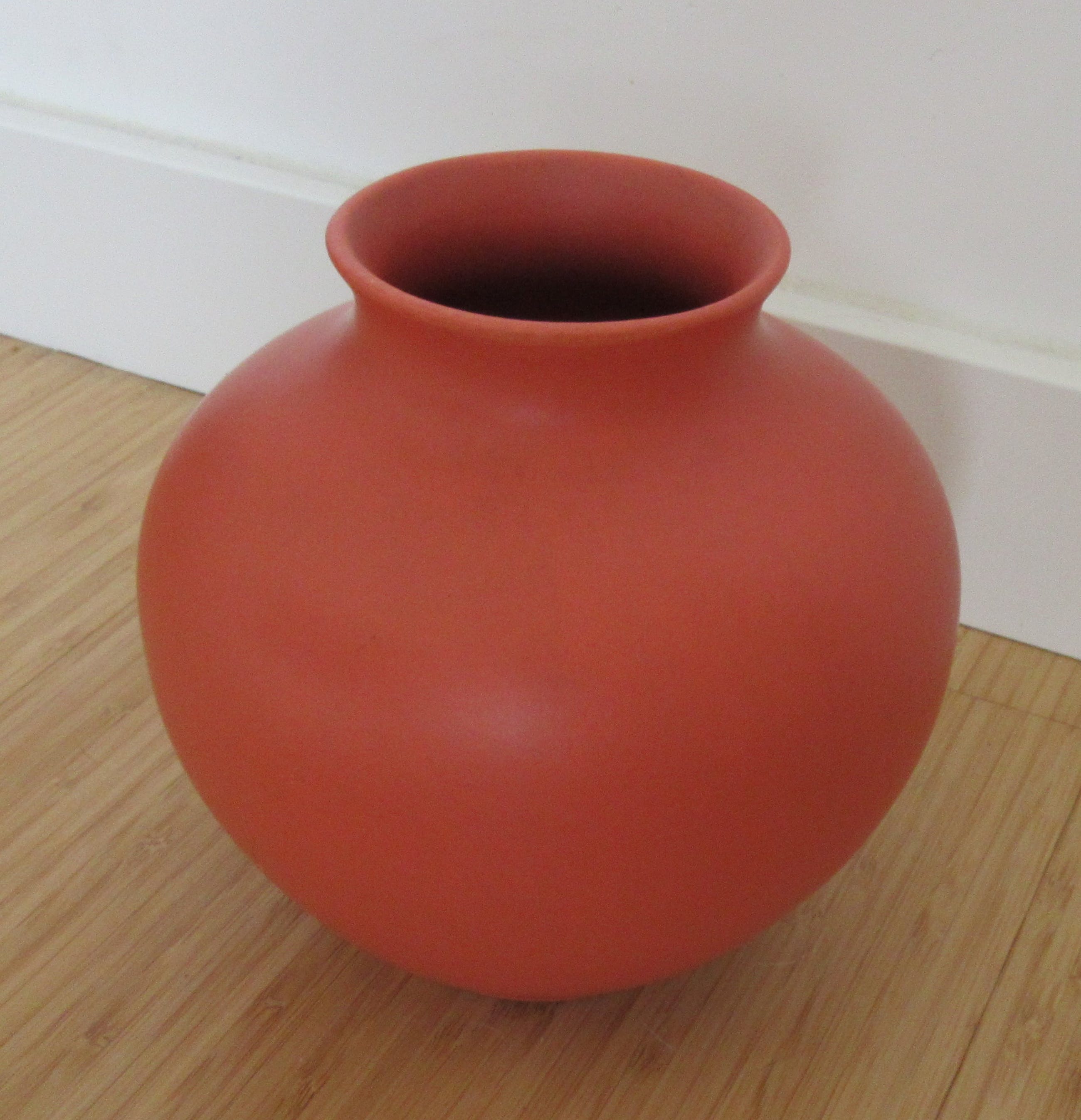 Monochrome terracotta plateln vaas (Delfts) van Keramiek Velsen uit Sassenheim. In priam onbeschadigde conditie. Aan de onderzijde gemerkt.