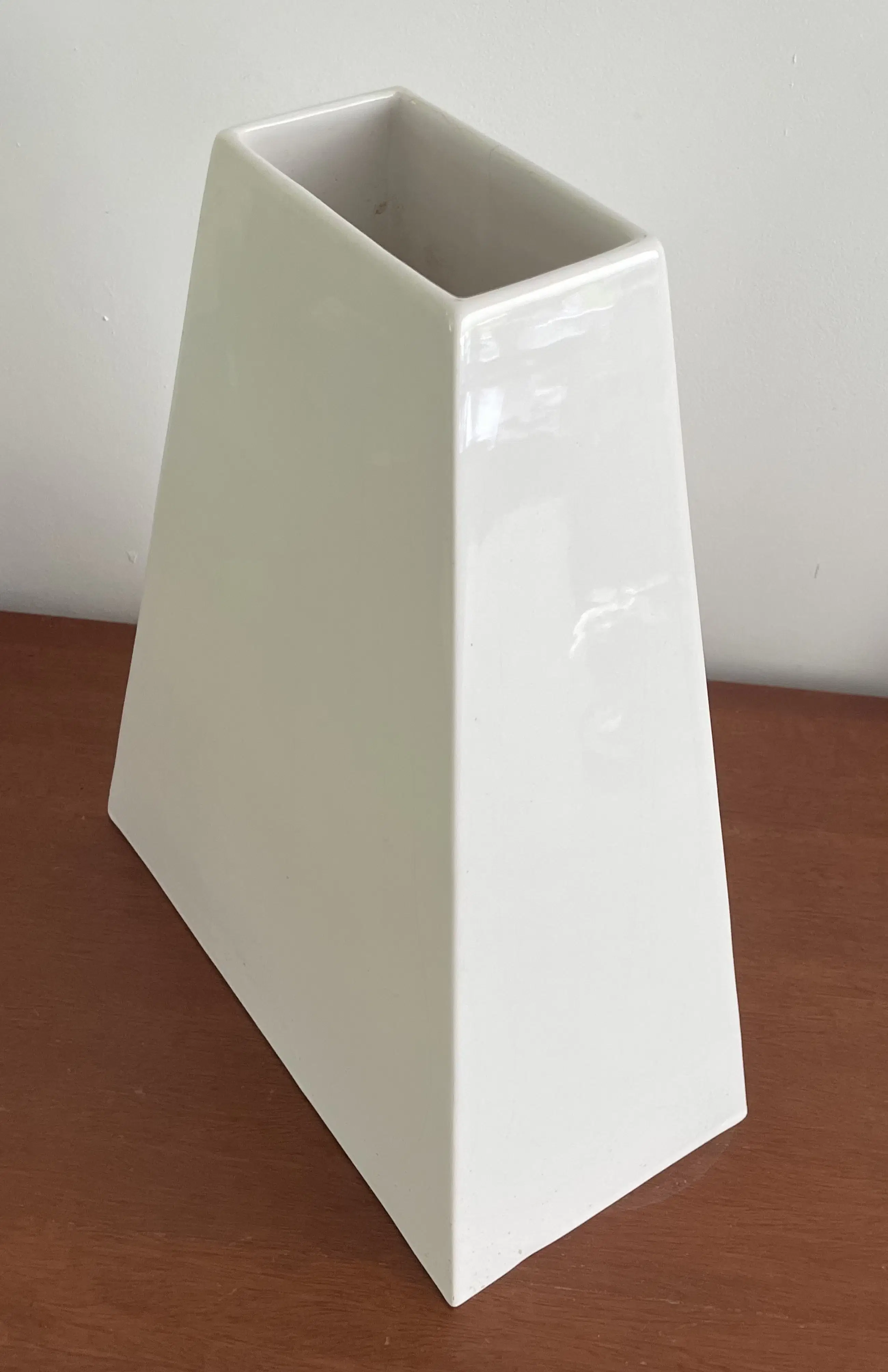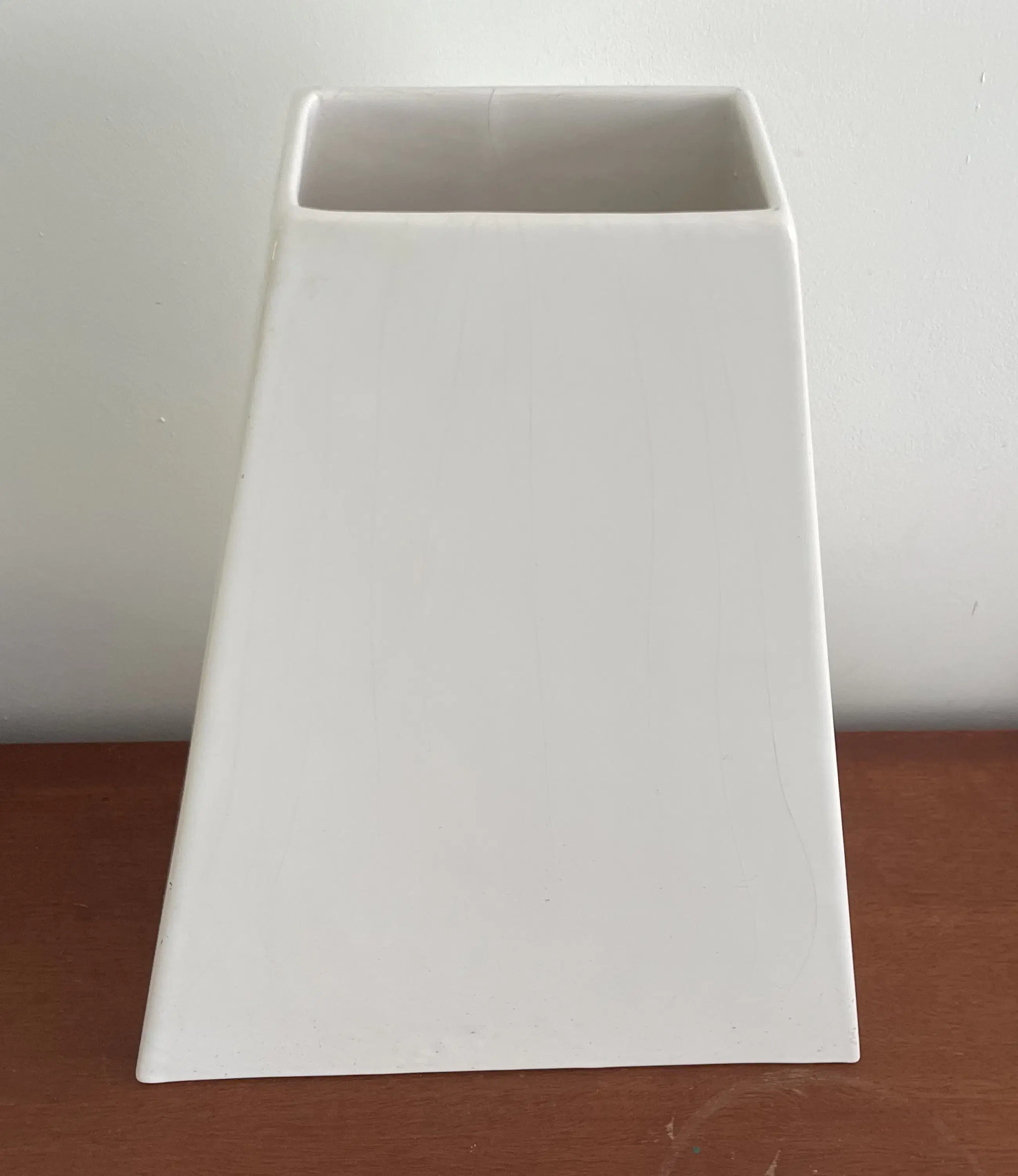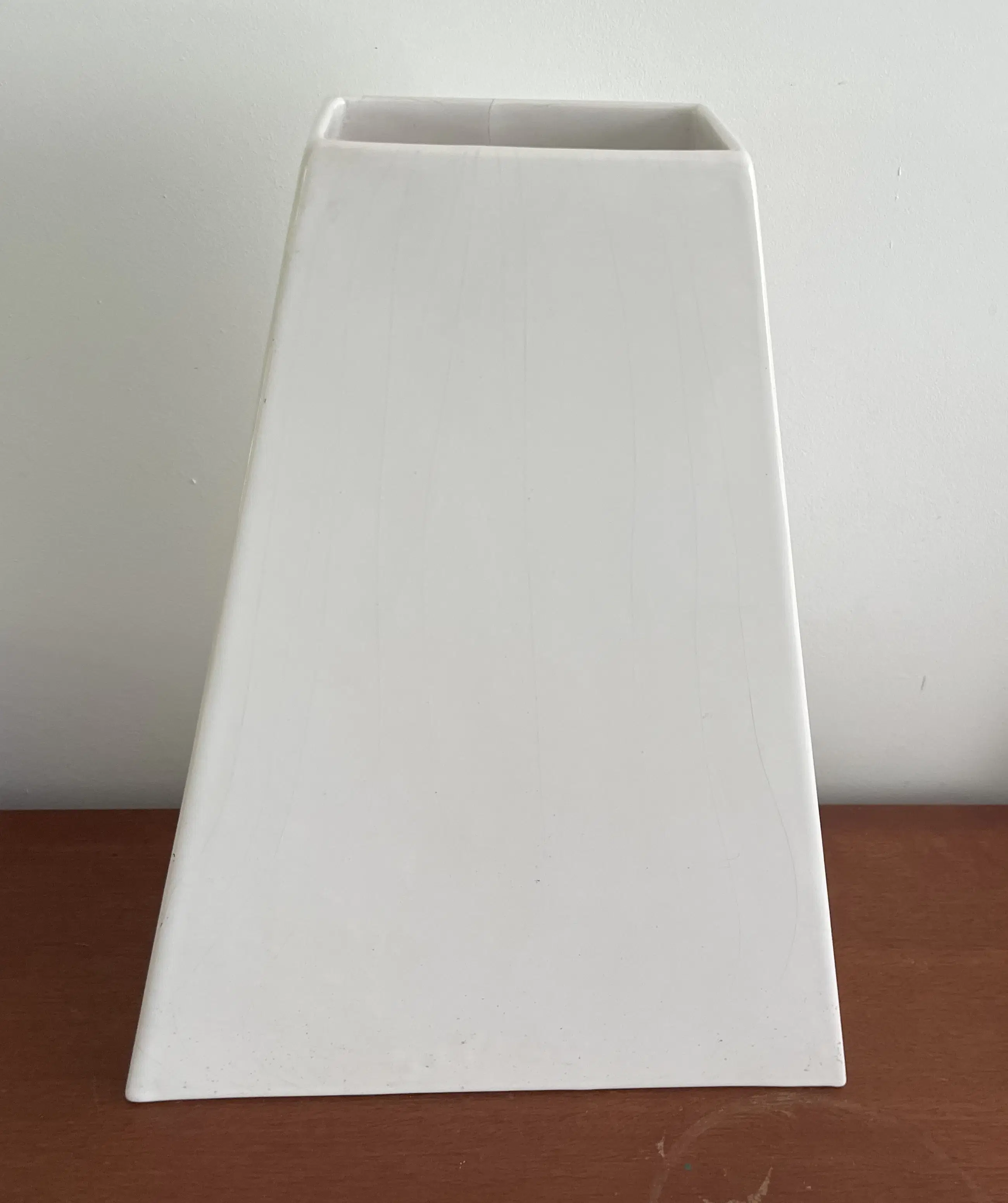 80s design XL wit aardewerken pyramide vormige vaas van Velsen Keramiek. In goede staat, heeft een klein haarlijntje aanneembare bovenkant.