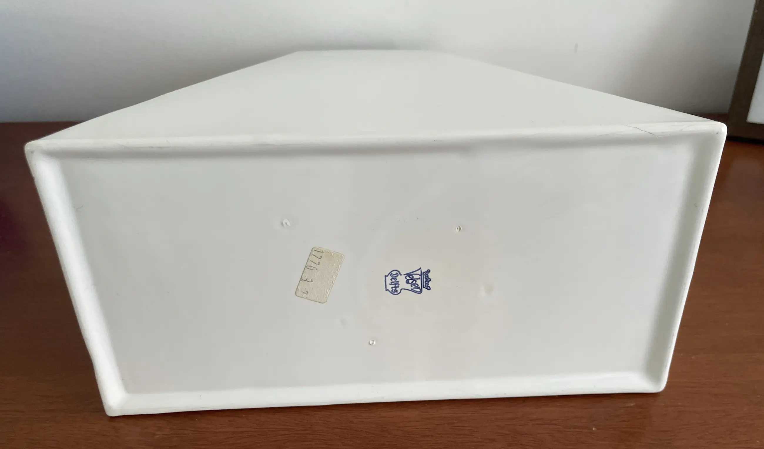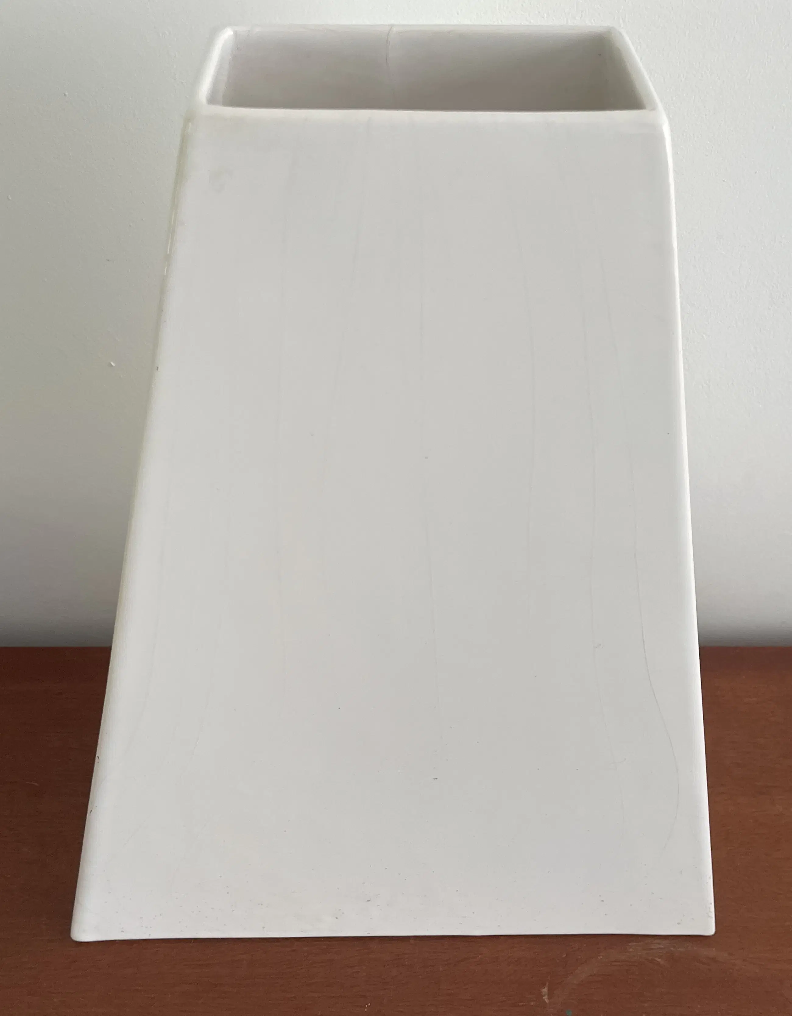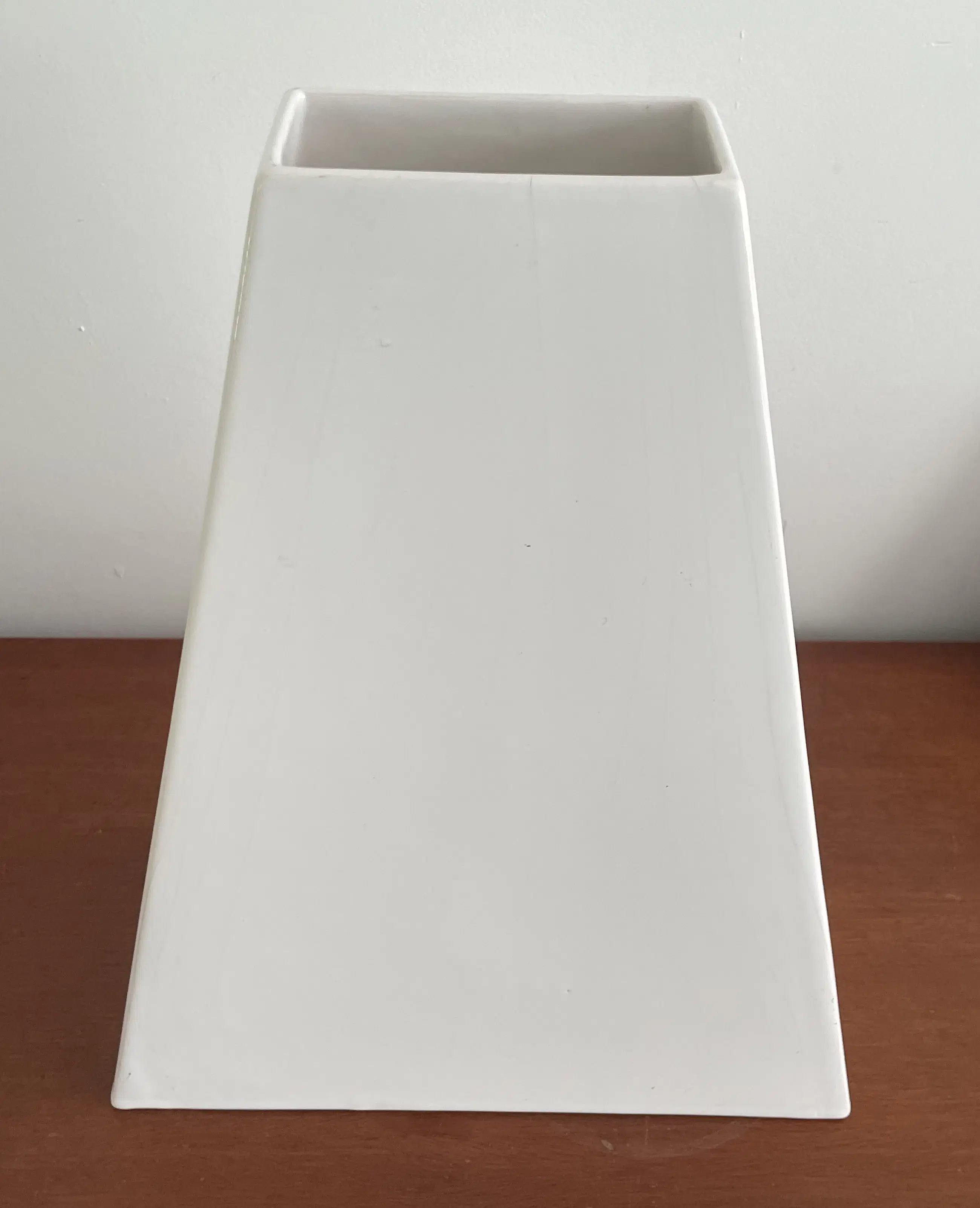 80s design XL wit aardewerken pyramide vormige vaas van Velsen Keramiek. In goede staat, heeft een klein haarlijntje aanneembare bovenkant.
