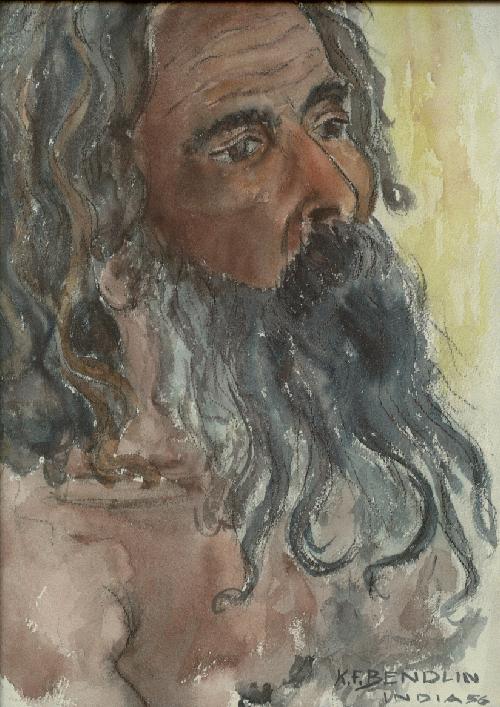 Aquarell.Unten rechts signiert K.F.Bendlin India 56.Altersspuren!An den Rändern knittrig und rechts einen schrägen Einriß von etwa 3 cm.Trotzdem sehr eindrucksvolles Blatt.Fragen bitte unbedingt vorab klären.Blattgröße etwa : 29,5 mal44 cm.Privatverkauf.Versand 8 Euro-