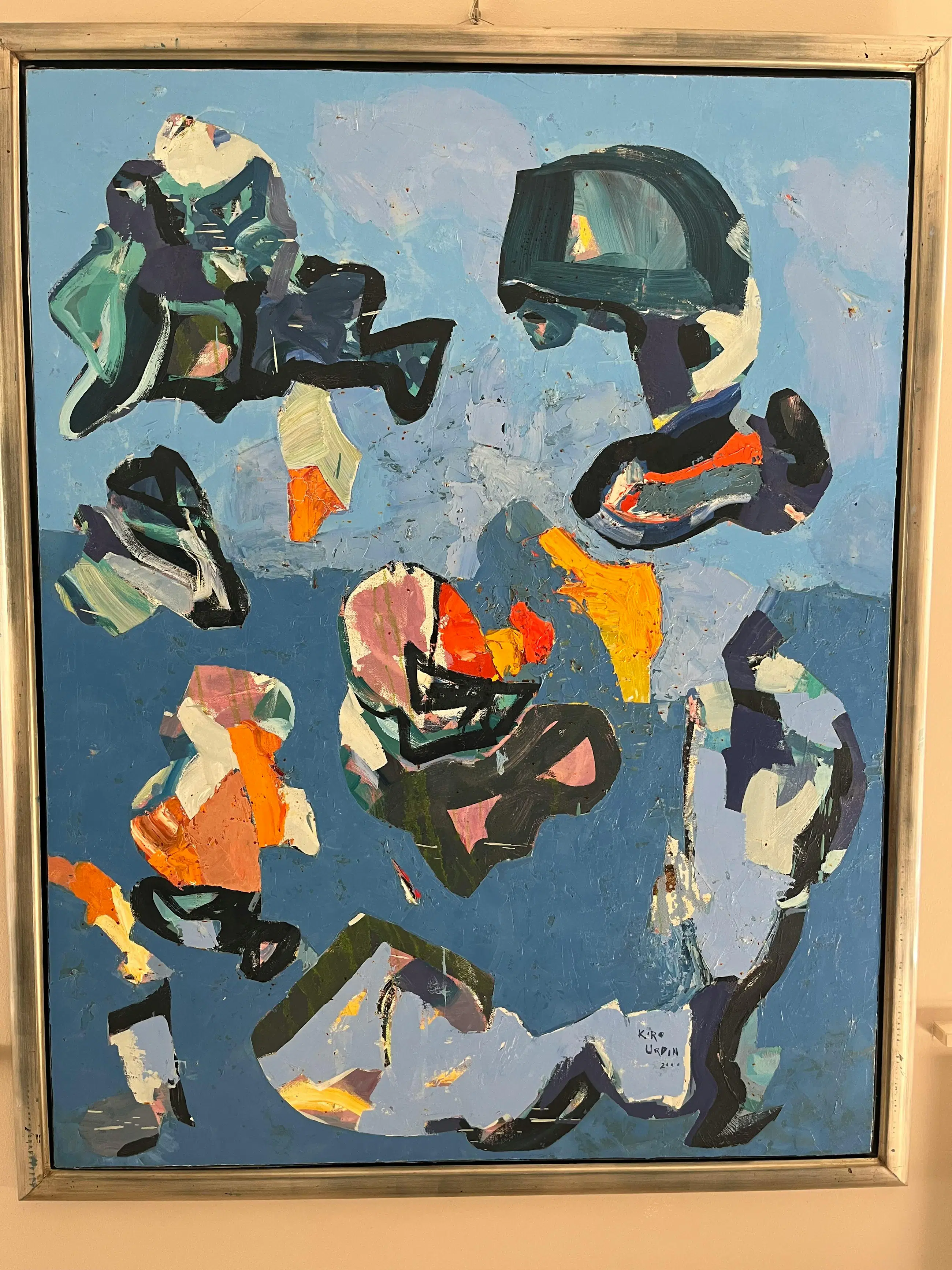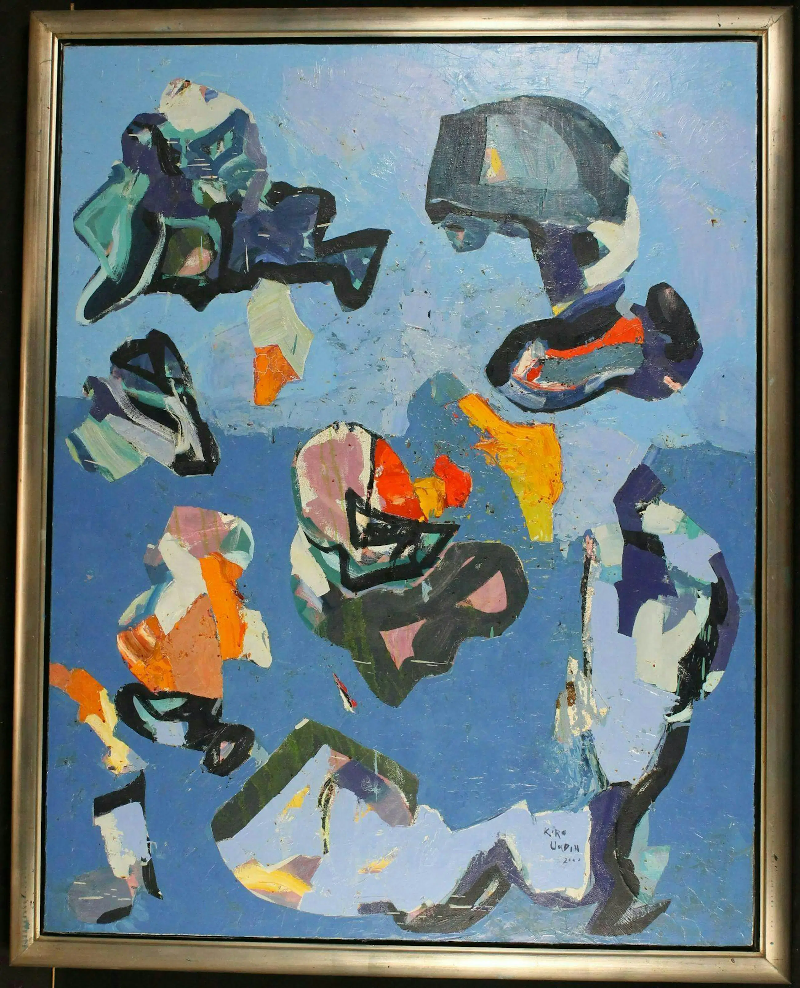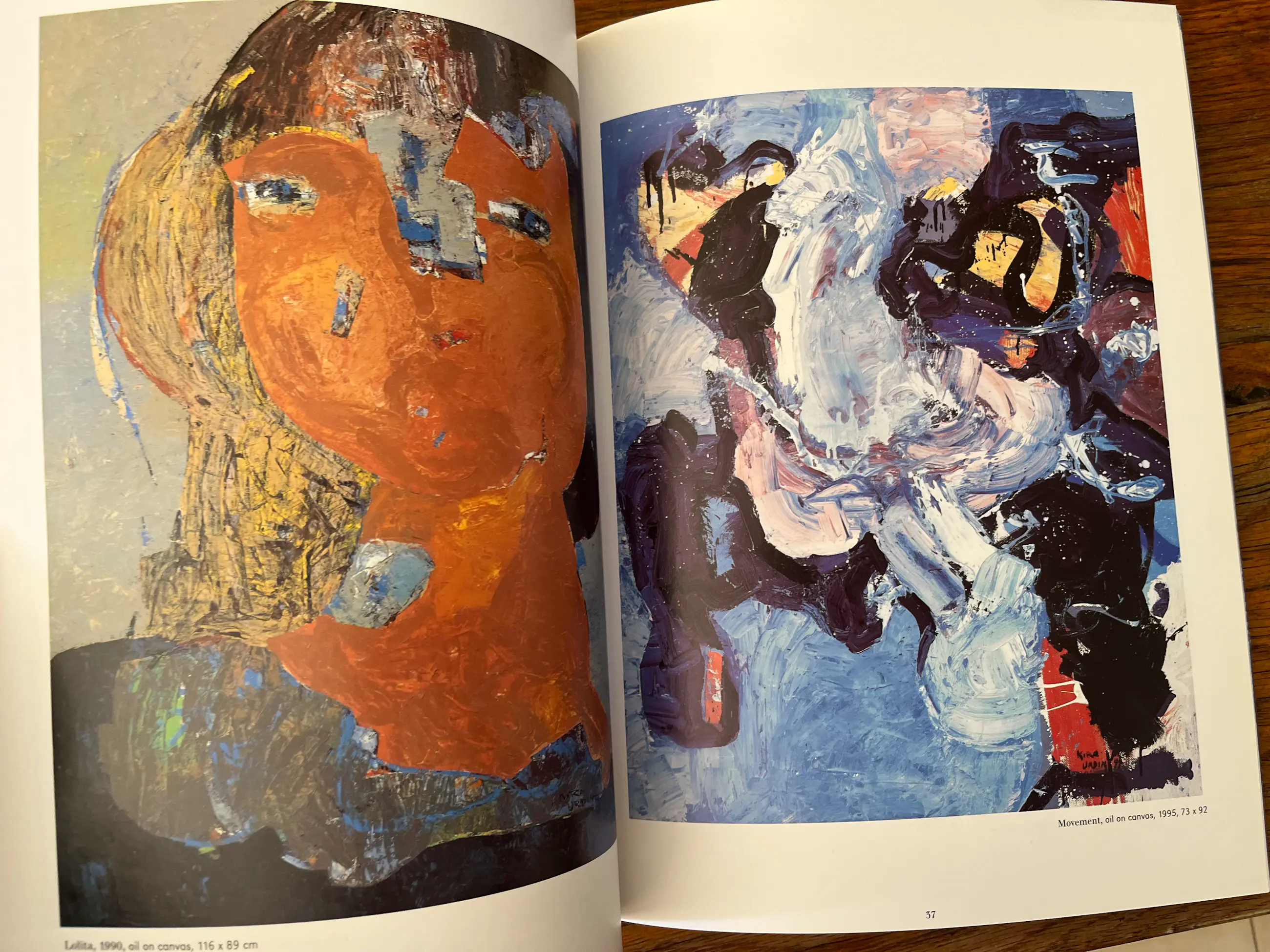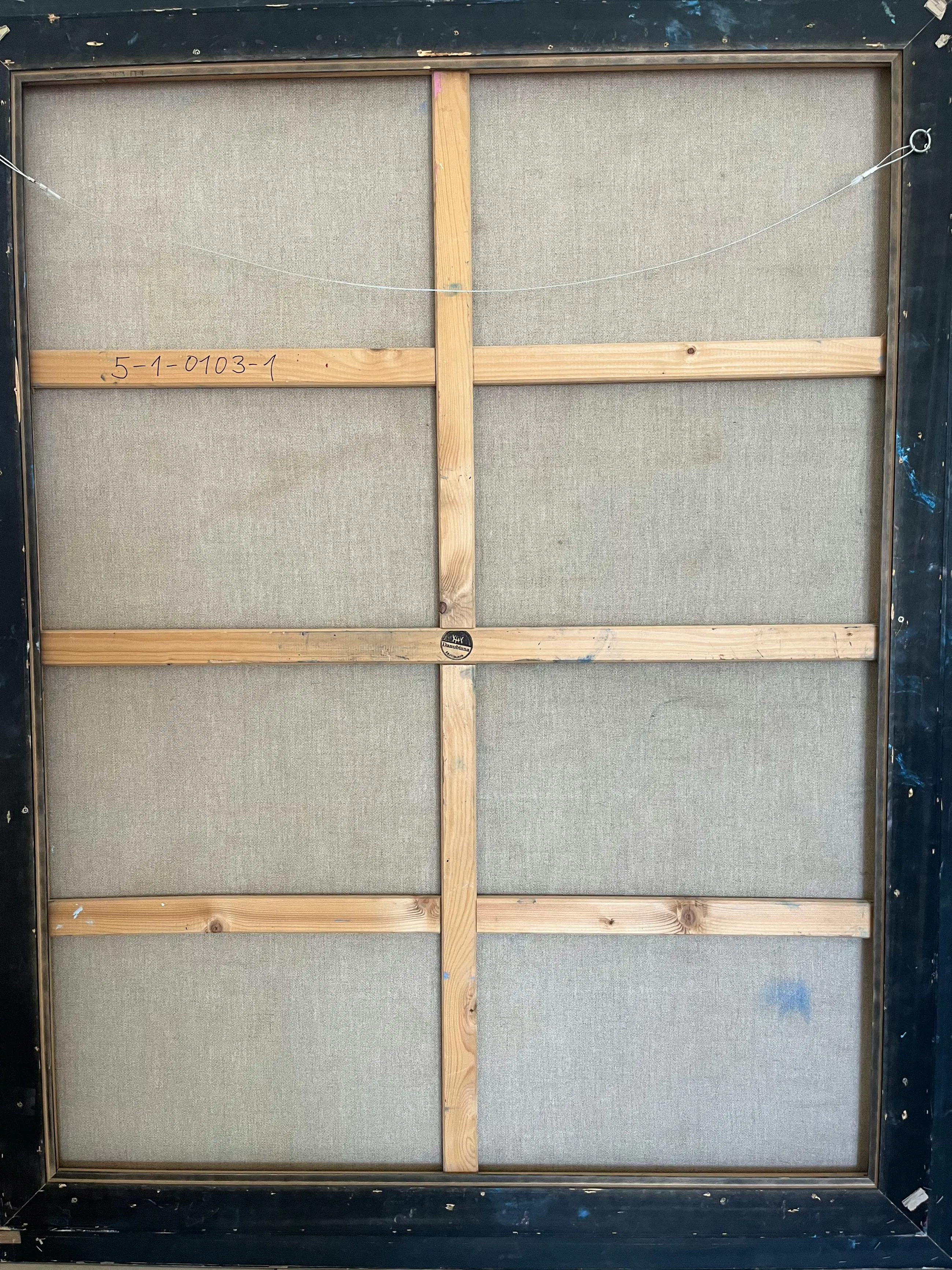 Kleurrijk topwerk uit 2000, gelijst in brede zilverkleurige lijst met hoewel zichtbare, doch geen storende gebruikssporen. Het schilderij komt uit een goede collectie en heeft een museaal verleden. Het boek “Retrospective 1985-2000”, uitgegeven door het DANUBIANA museum en waarin het doek afgebeeld is, behoort ook tot dit kavel. Afmeting werk 146 x 114 cm. Inclusief lijst 159 x 127 cm.