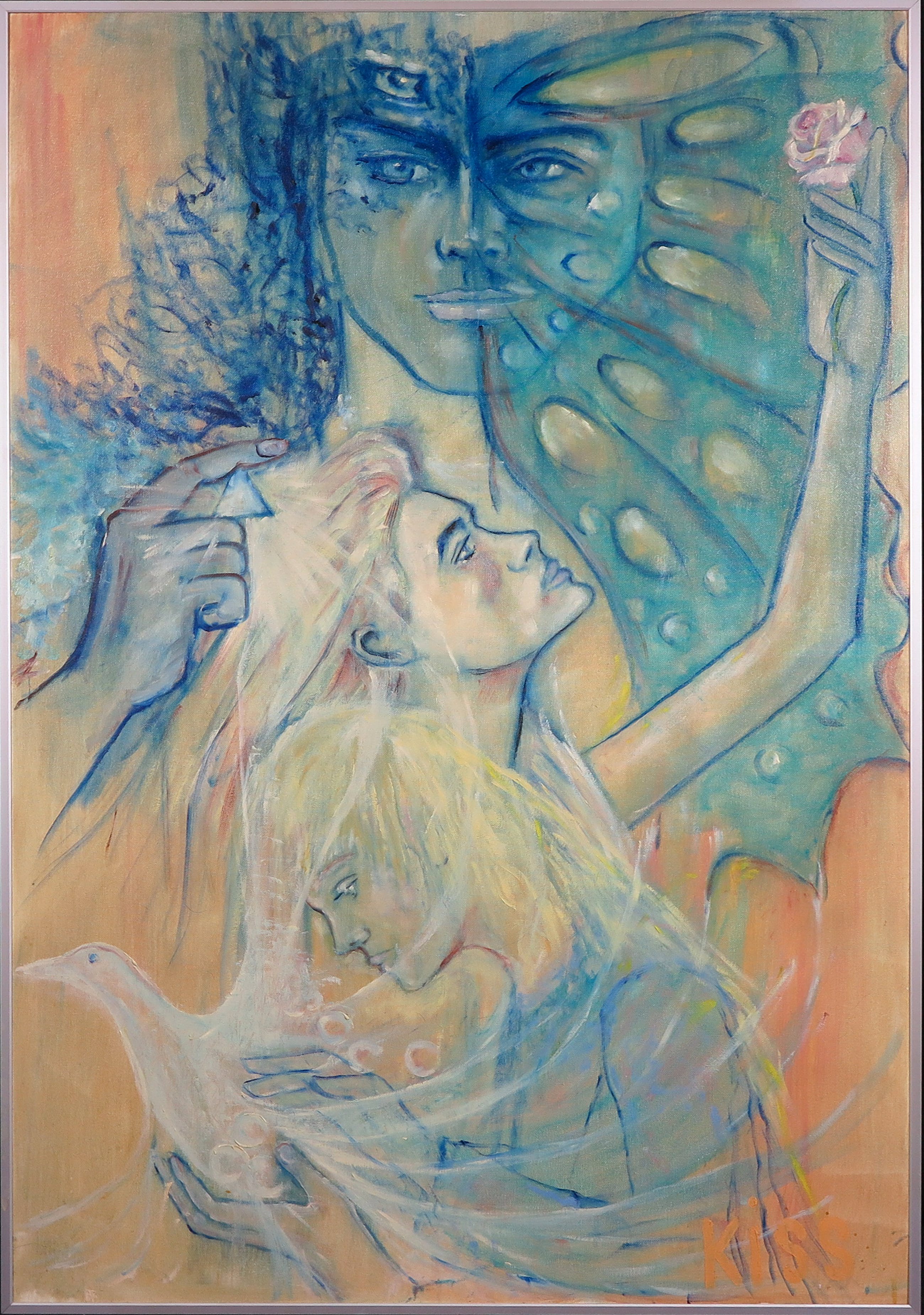 Kiss Riemvis - Olieverf op board, z.t. Fantasy white bird - Ingelijst kopen? Bied vanaf 10!