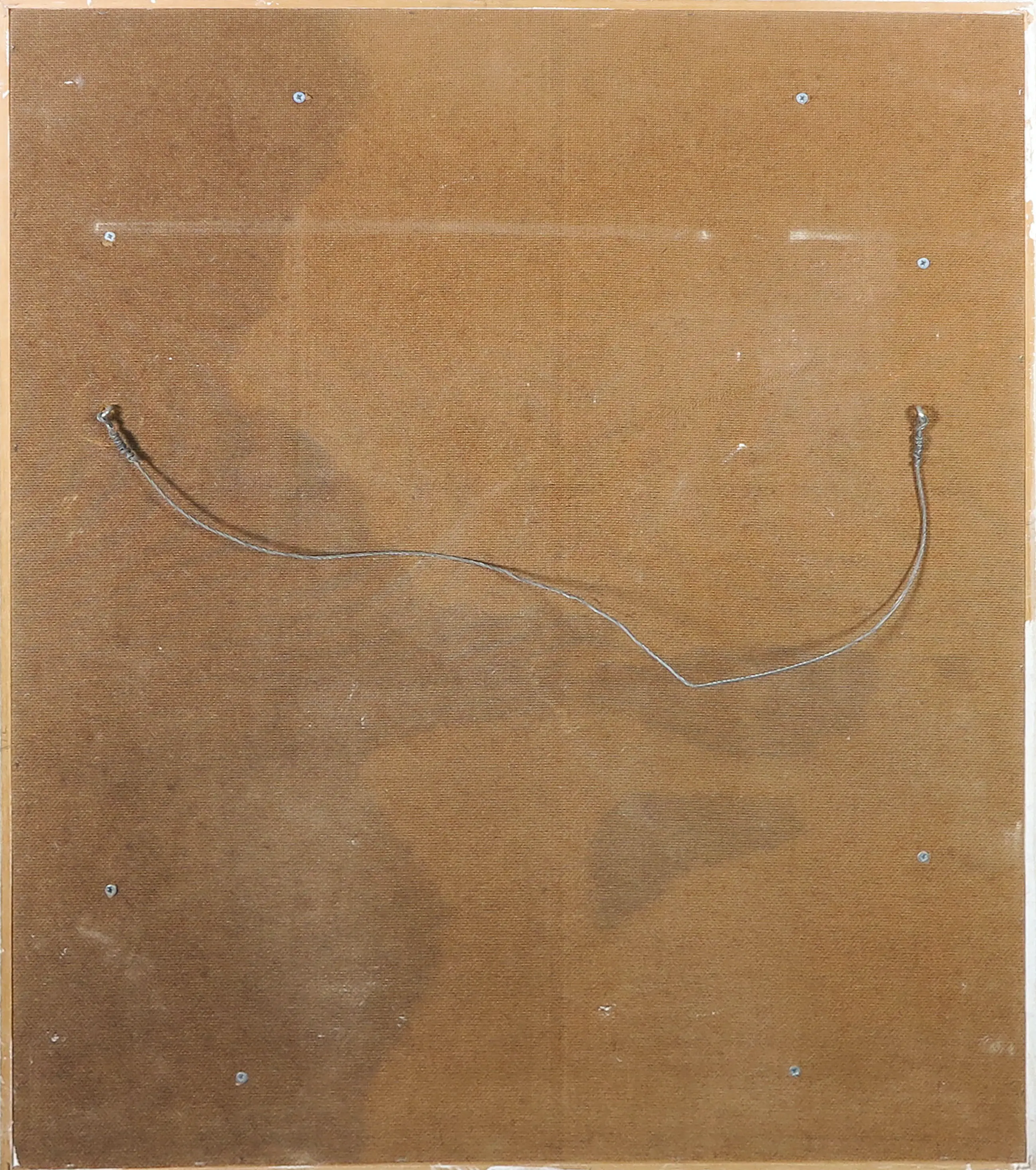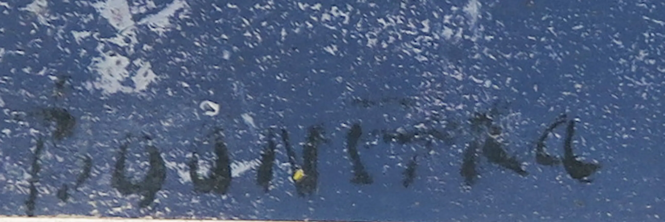 | Er lijken een kras en wat vlekjes op de compositie te zitten, waarvan het niet duidelijk is of deze tot de compositie behoren. Zier hiervoor de detailfoto's. | |