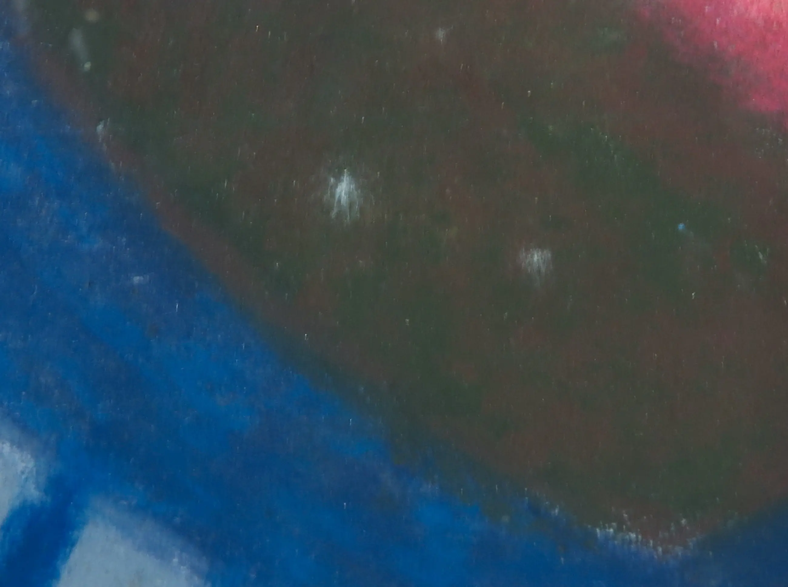 | Er zitten twee witte vlekjes op de compositie, zie hiervoor de detailfoto. | |