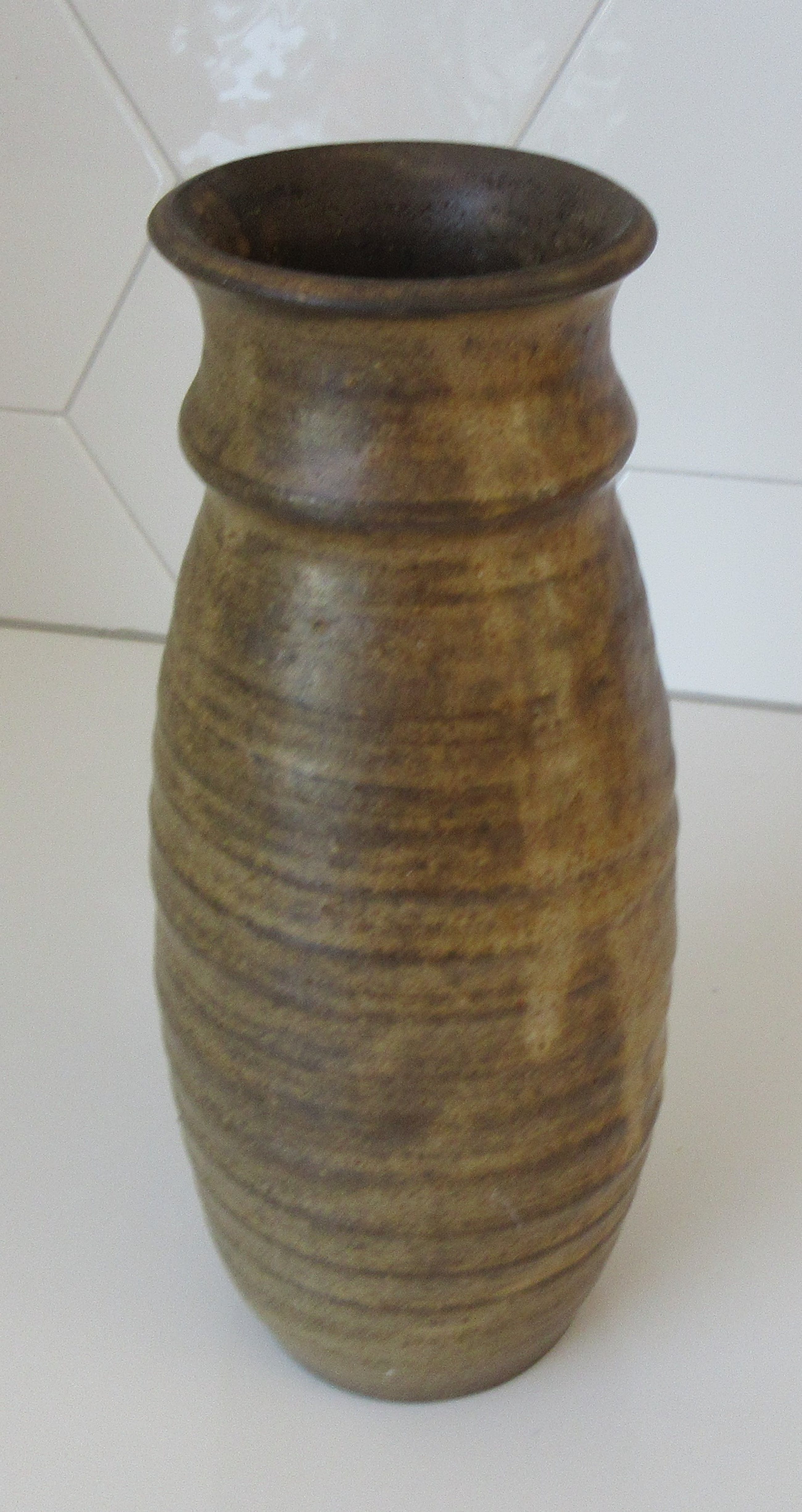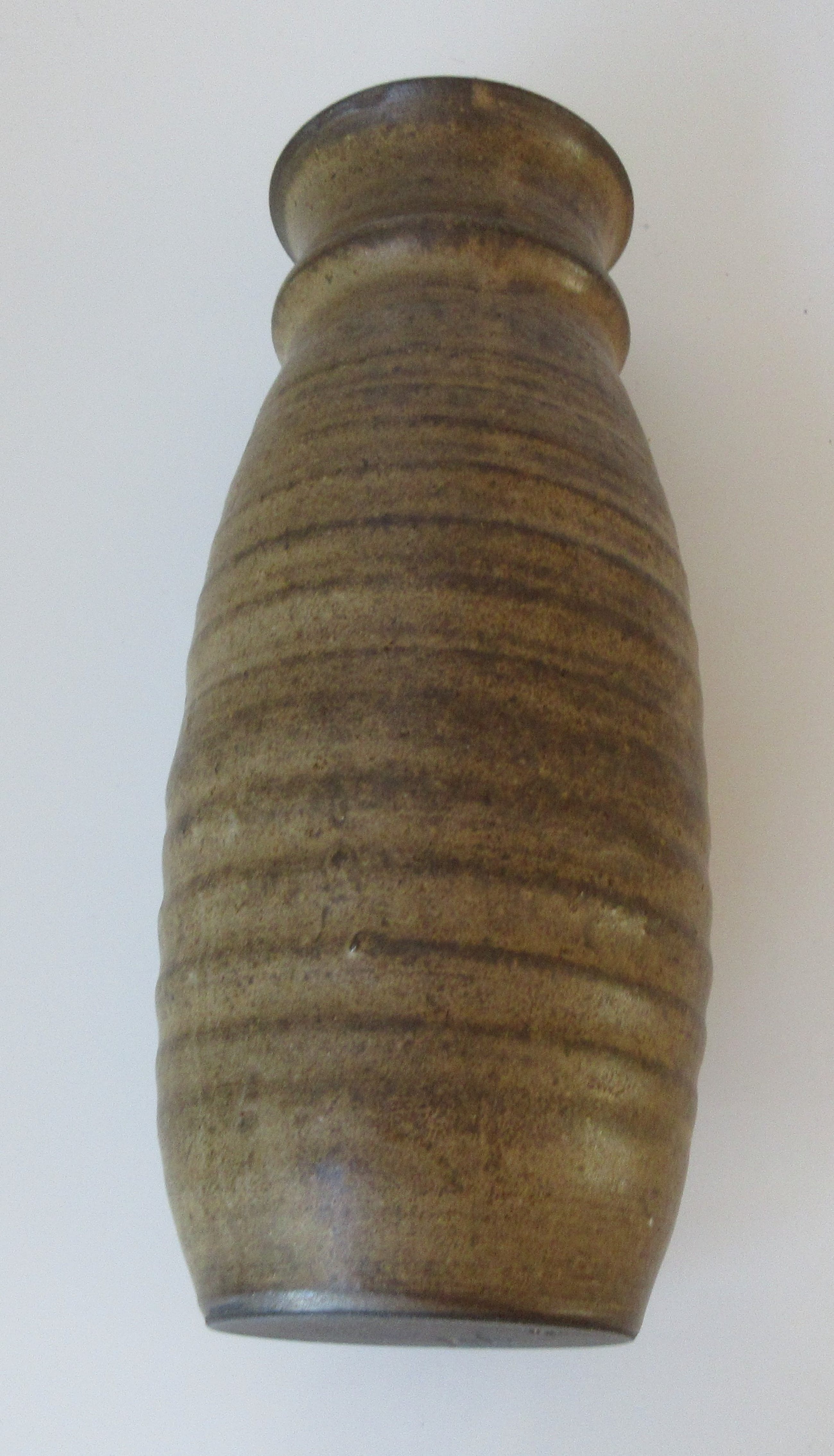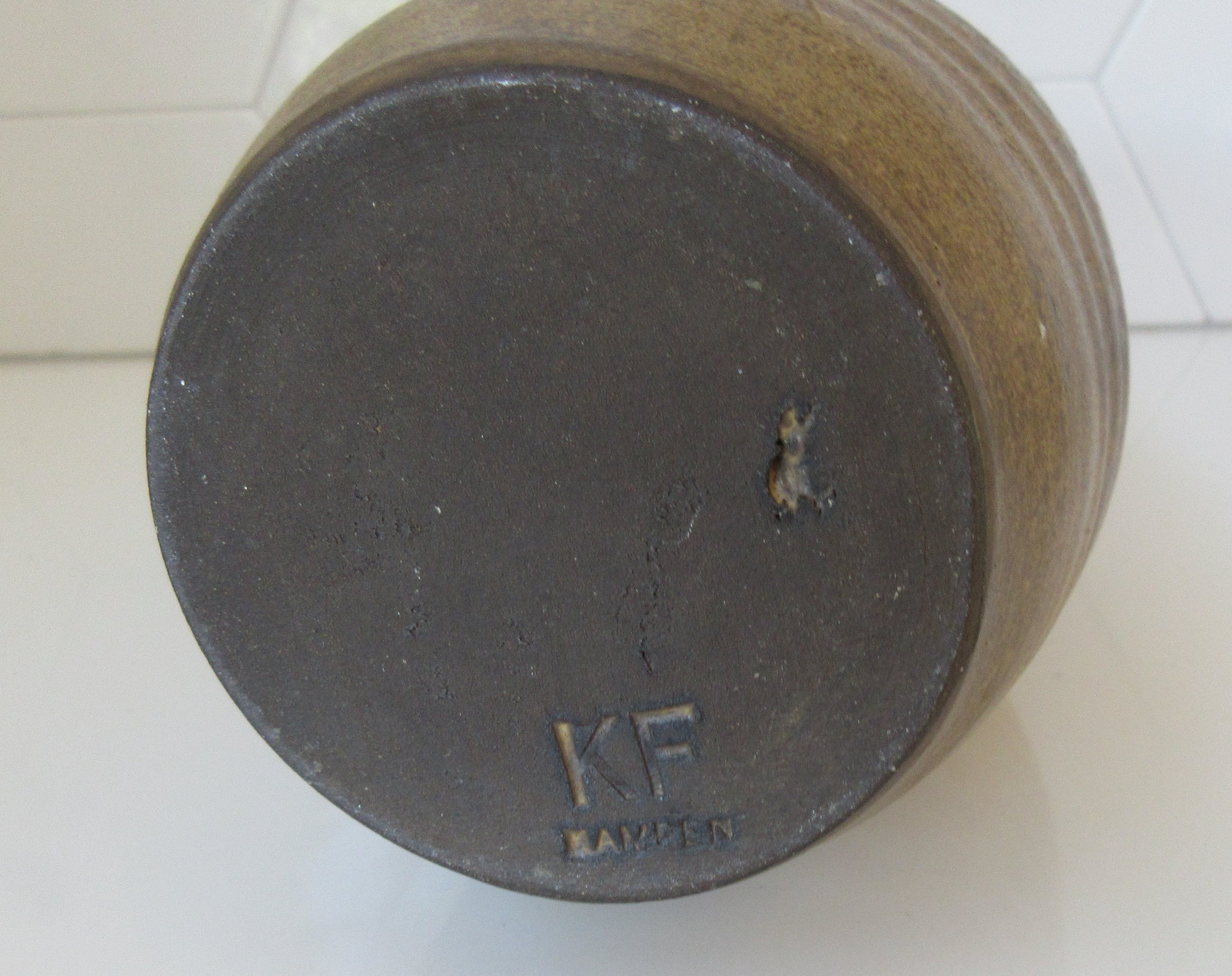 Mooie zware aardewerken geribde design vaas ontwerp en uitvoering Klaas Fenne de Leeuwe in eigen atelier in Kampen rond ca. 1970. Geen beschadigingen en voorzien van ingedrukt merk KF Kampen op de achterzijde.
