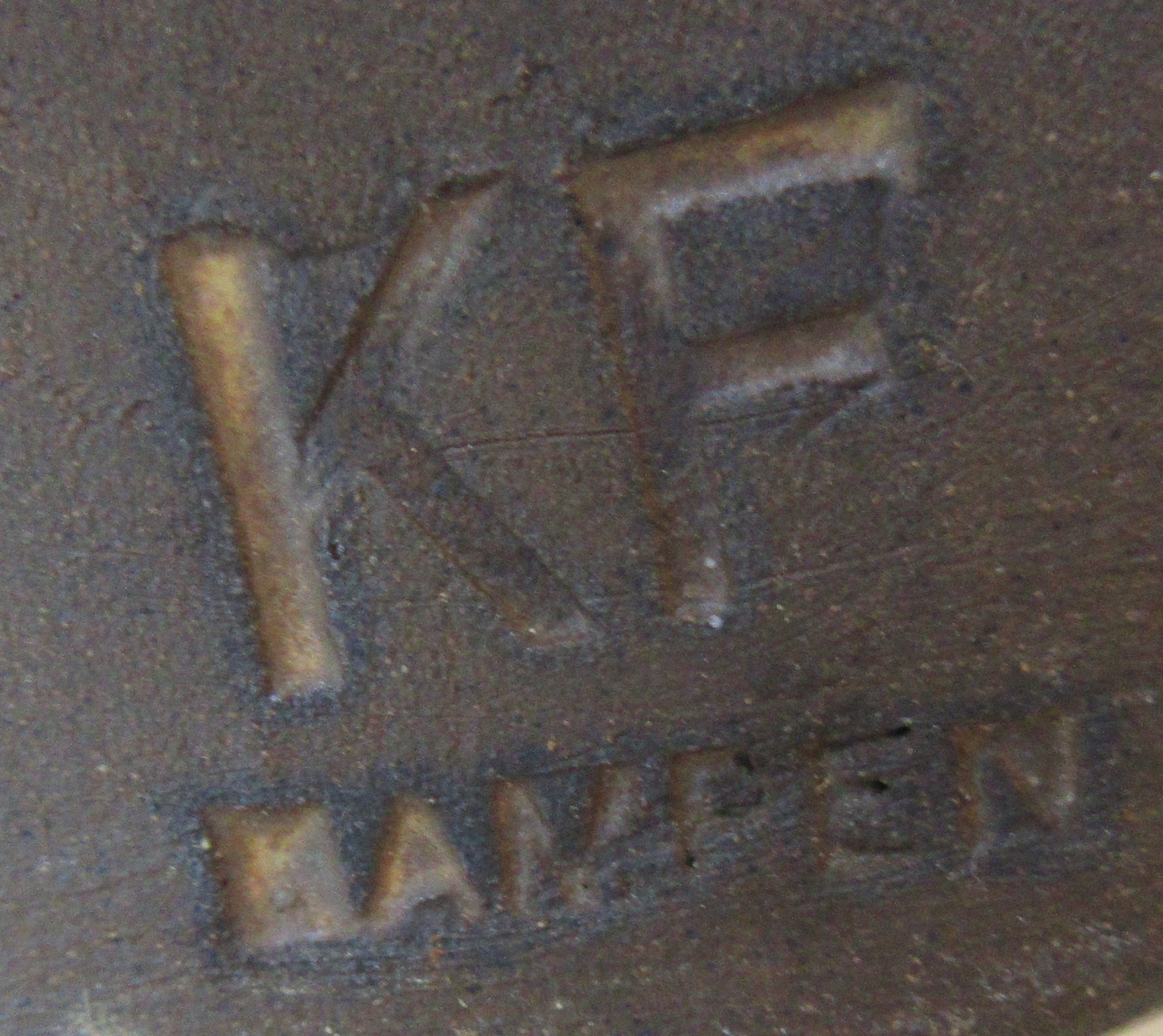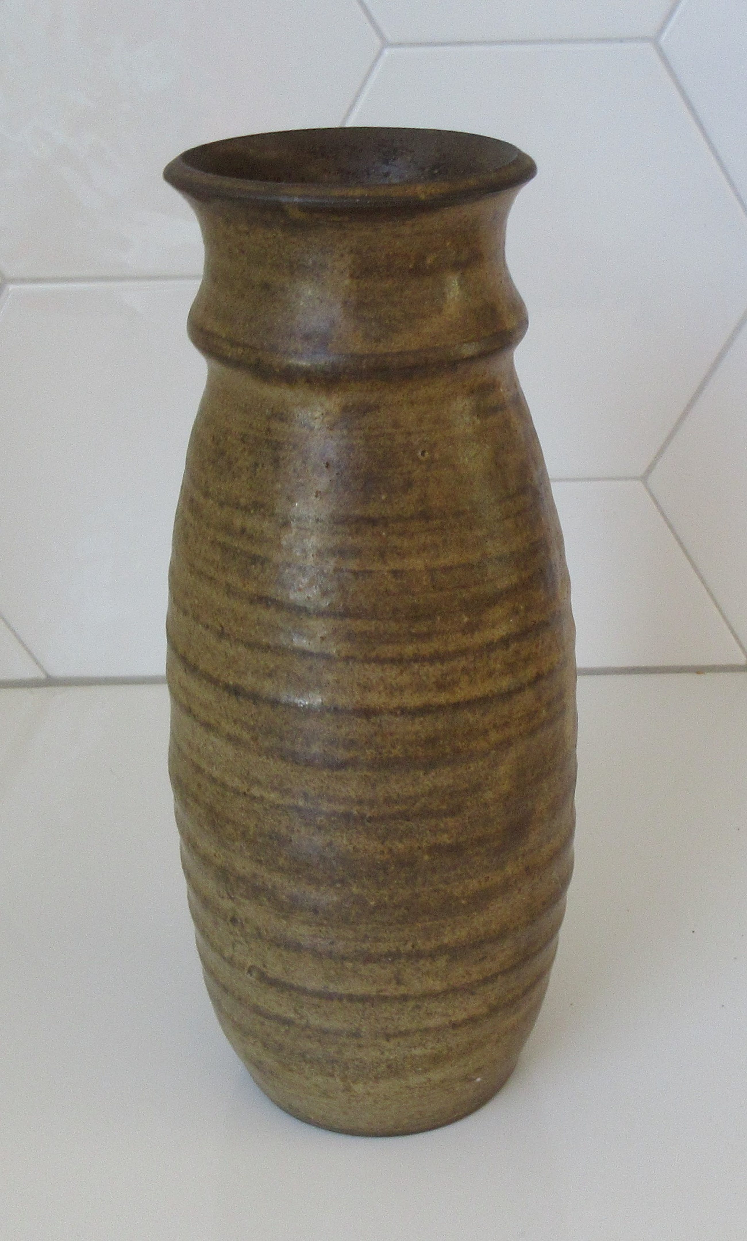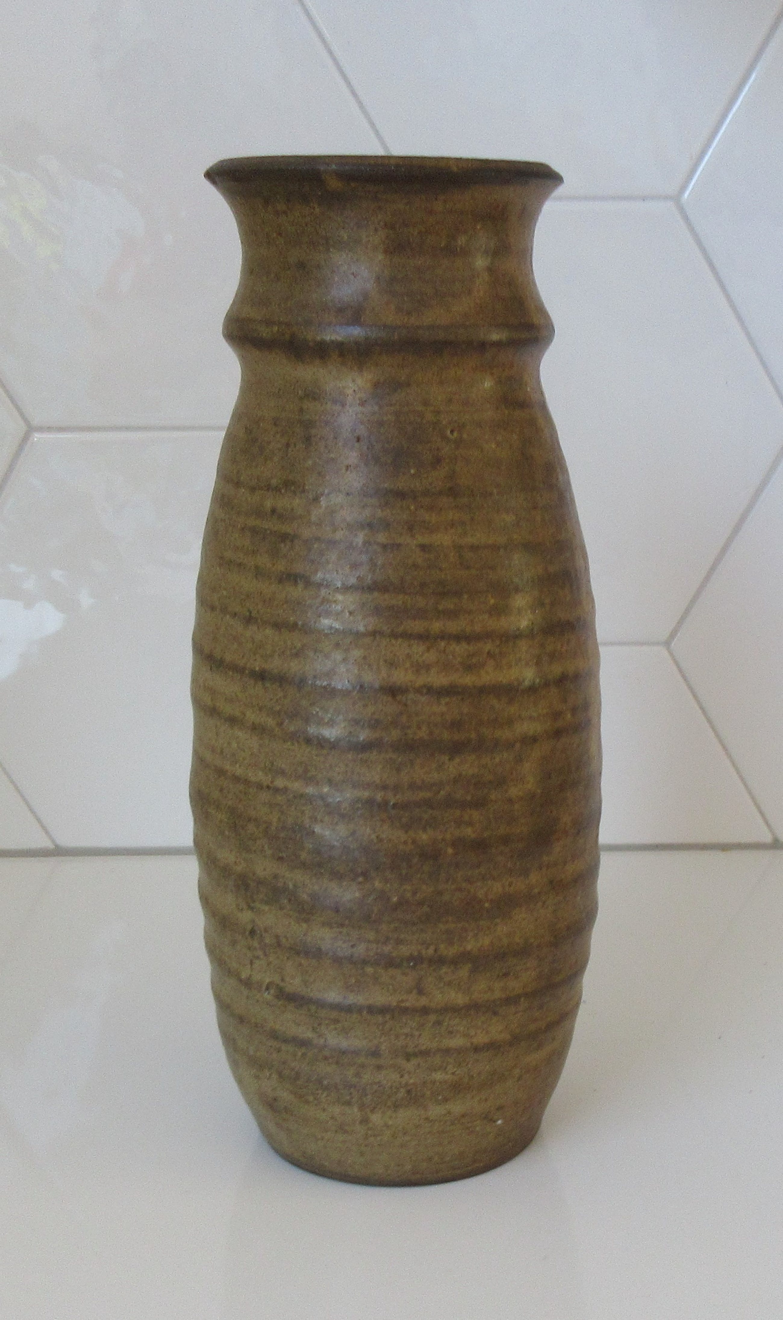 Mooie zware aardewerken geribde design vaas ontwerp en uitvoering Klaas Fenne de Leeuwe in eigen atelier in Kampen rond ca. 1970. Geen beschadigingen en voorzien van ingedrukt merk KF Kampen op de achterzijde.