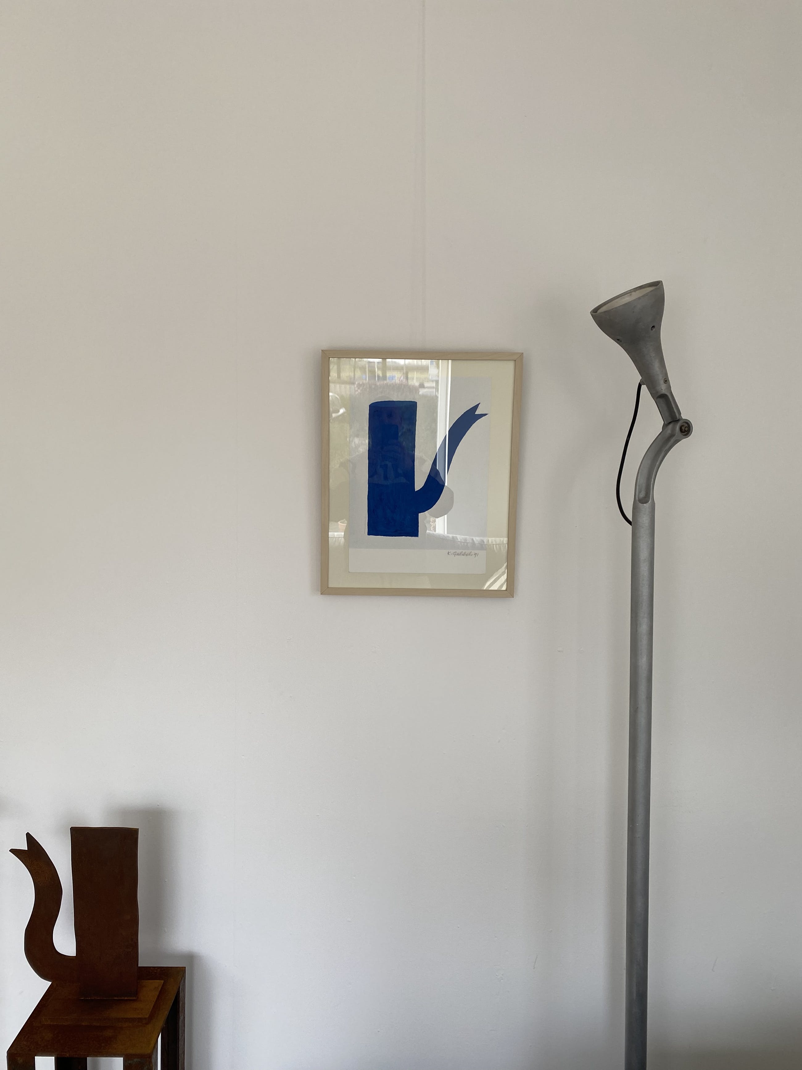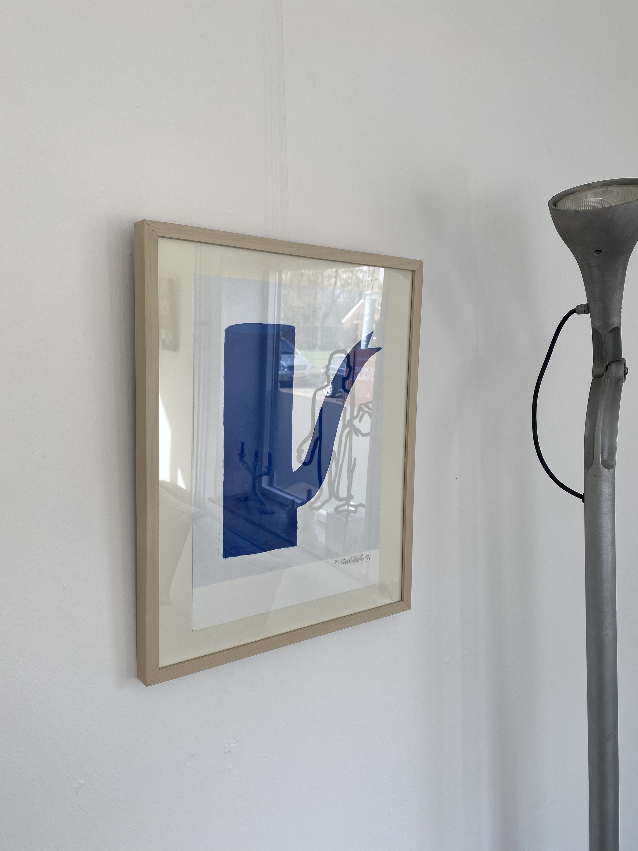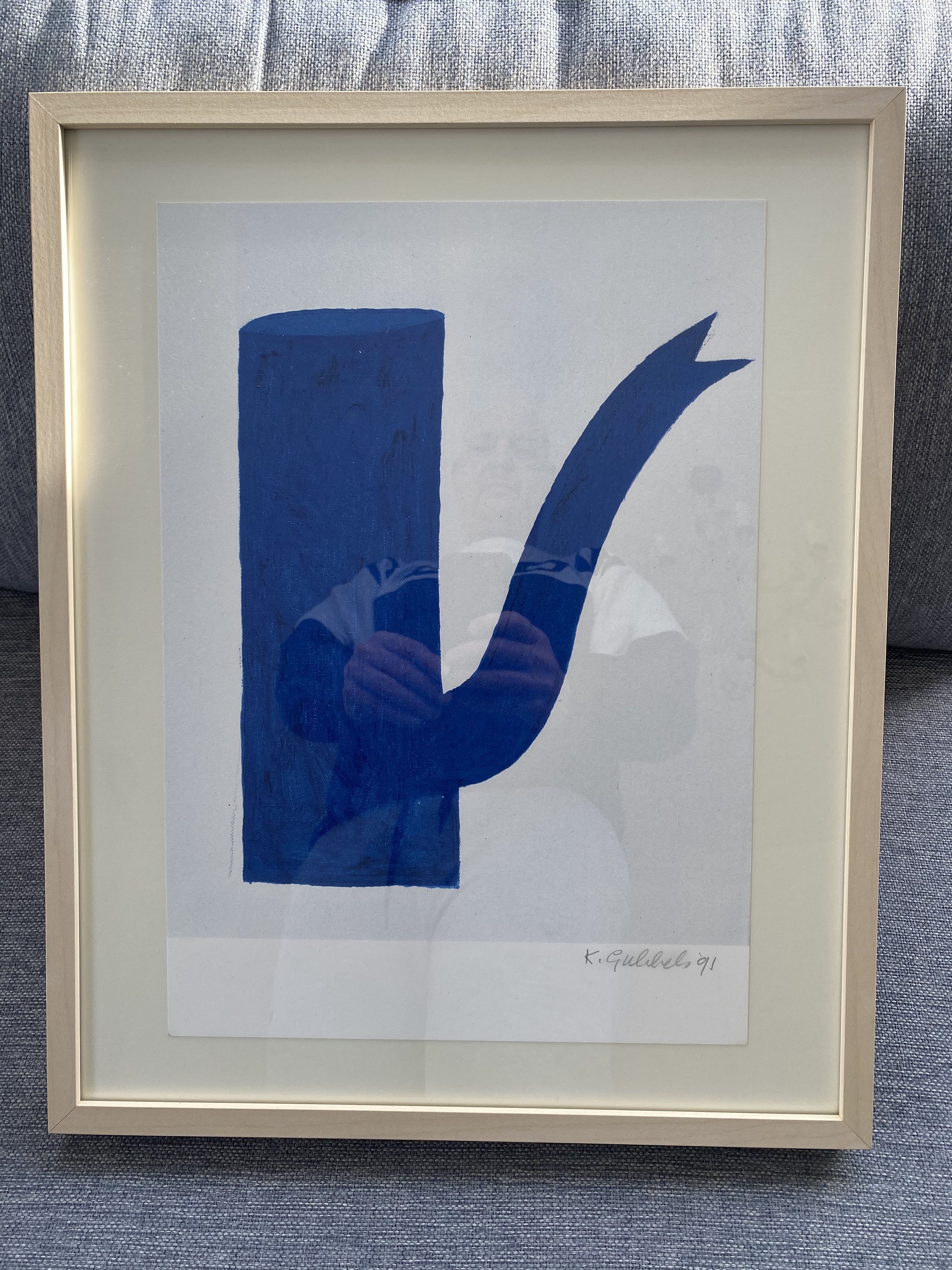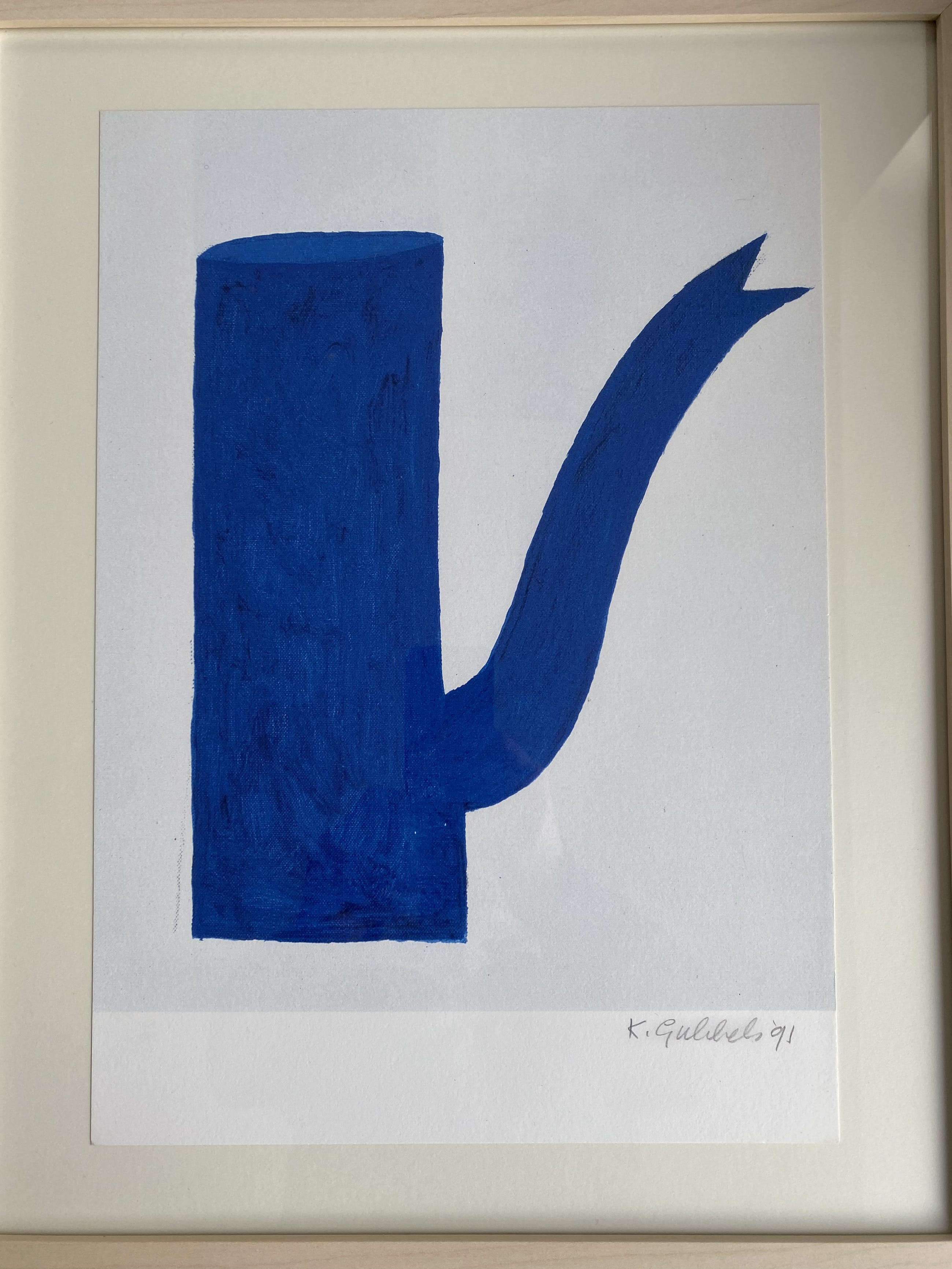 Ingelijste offsetdruk uit 1991 van Klaas Gubbels. Gave iconische blauwe kan.