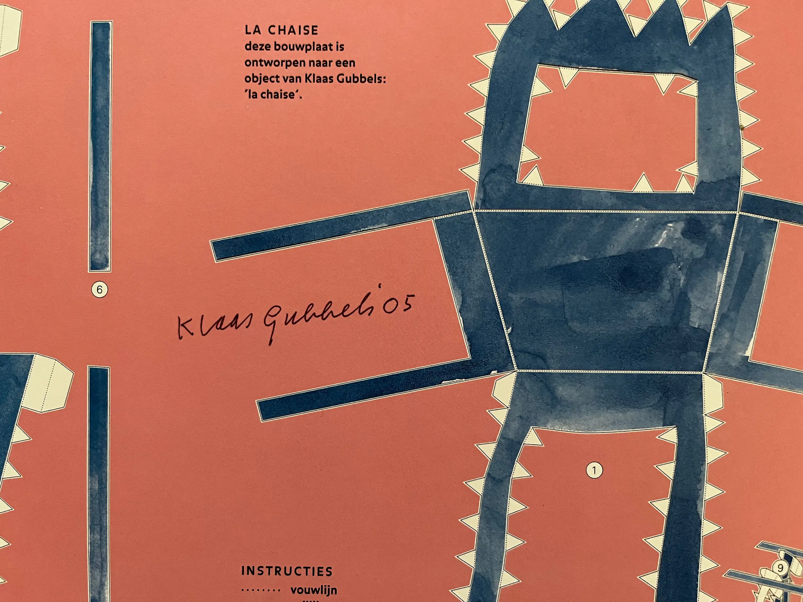 Bouwplaat, oorspronkelijk verschenen als stofomslag van het boek “ Gubbels Totaal”. Afmeting 22,5 x 48,5 cm. Plaat is gesigneerd.