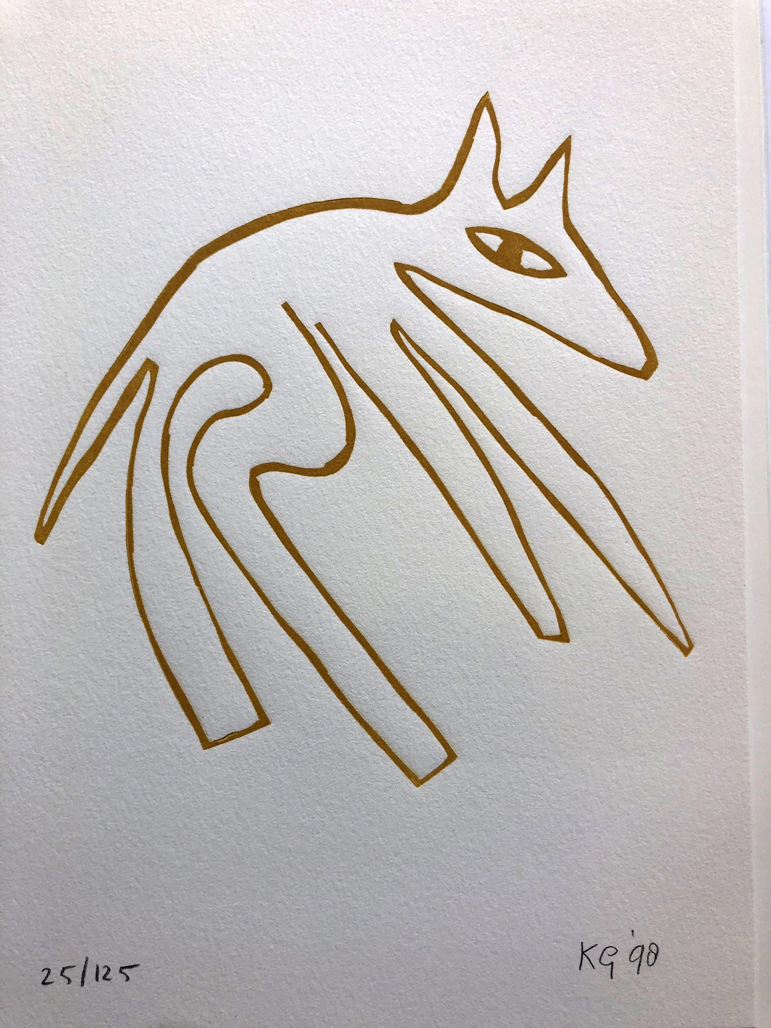 Fraaie linodruk van Klaas Gubbels in perfecte staat. Het werk is geïnspireerd op de tekst 'Schuldige hond' van de schrijver Jan Siebeling. Gesigneerd K.G. en genummerd in potlood. Het betreft hier nummer 113 van 125. Het werk kunt u vooraf komen bekijken en beoordelen. Het werk kan na aankoop afgehaald worden bij galerie Rotor in Gorcum of verzonden worden per aangetekende post. U kunt het werk ook laten opslaan in onze opslagkamer en in een later stadium ophalen. Ook kunnen wij uw inlijstingen verzorgen. Het wit in de prent is mooi egaal gebroken wit, de foto is iets donker.