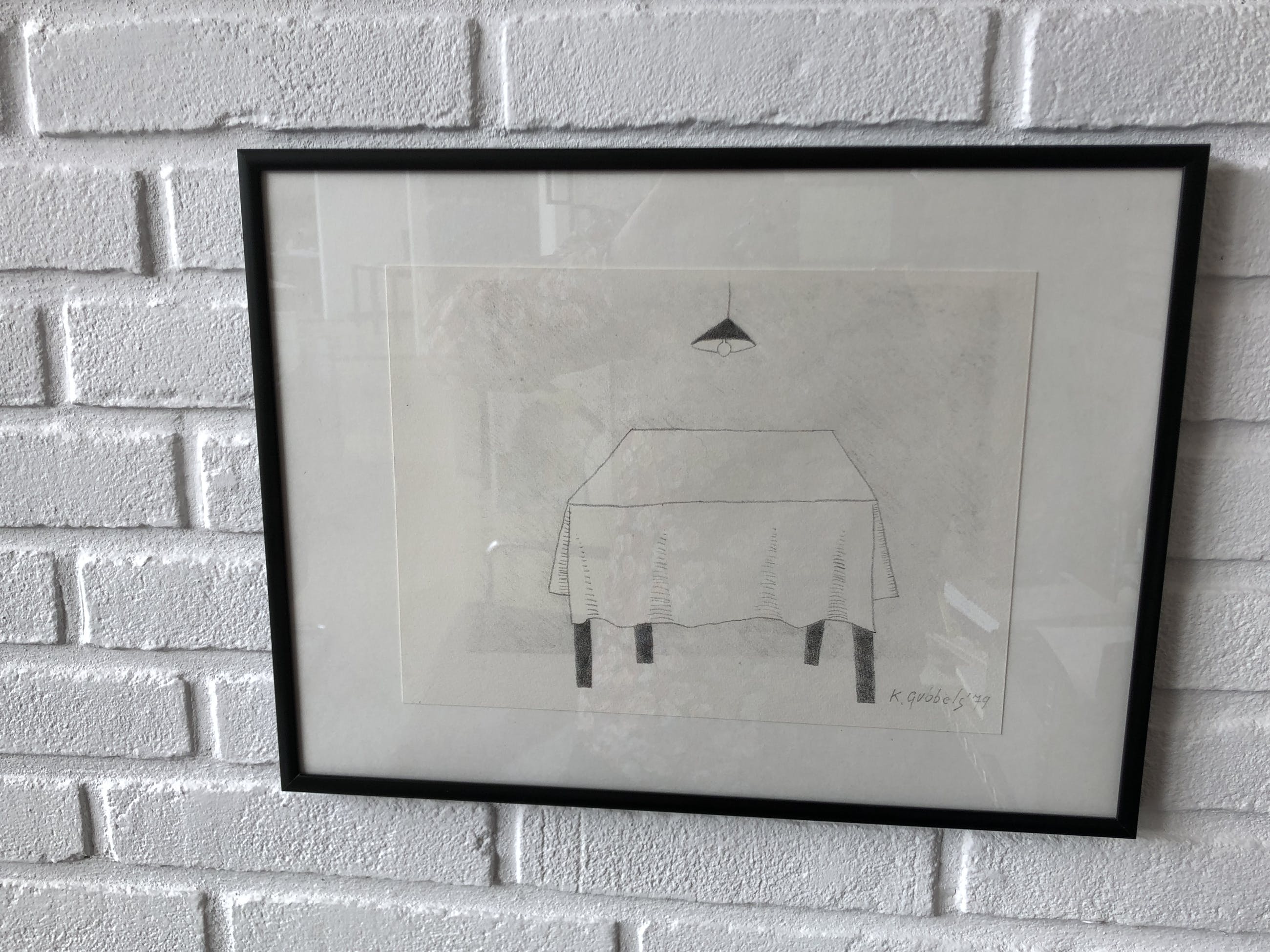 Mooie litho van een getekende tafel. Mooi gedetailleerd. Het komt met een nieuw zwat aluminium lijstje en kan zo worden opgehangen. Het werk het liefst ophalen maar met toestemming en onder verantwoording van de koper kan het werk ook goed verpakt in een doos toegezonden worden per pakketpost. Natuurlijk mag u het werk vooraf komen beoordelen in de schatkamer van galerie Rotor in Gorcum.