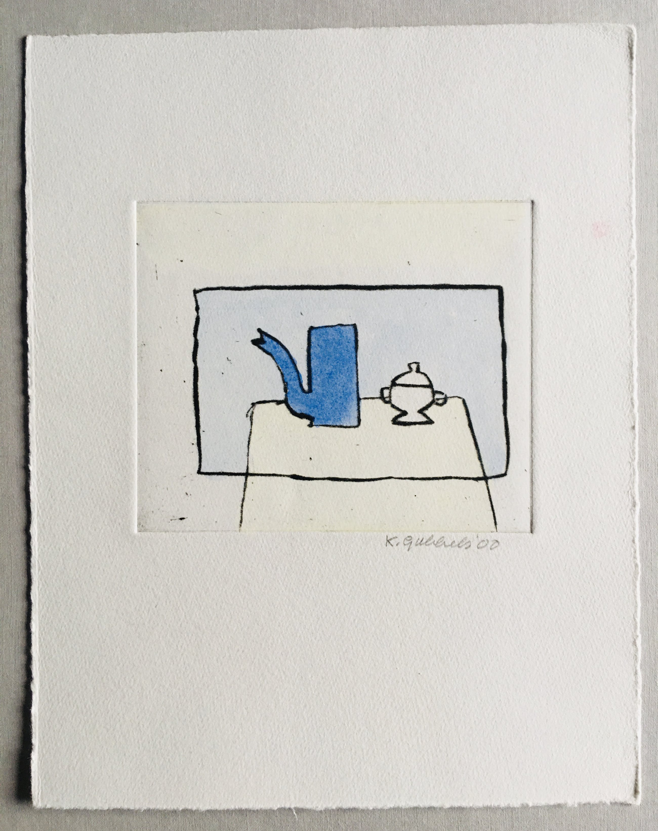 Deze fraaie ets van Klaas Gubbels uit 2000 is handmatig ingekleurd met aquarel. Ieder exemplaar is daardoor uniek geworden. De ets is in goede conditie.