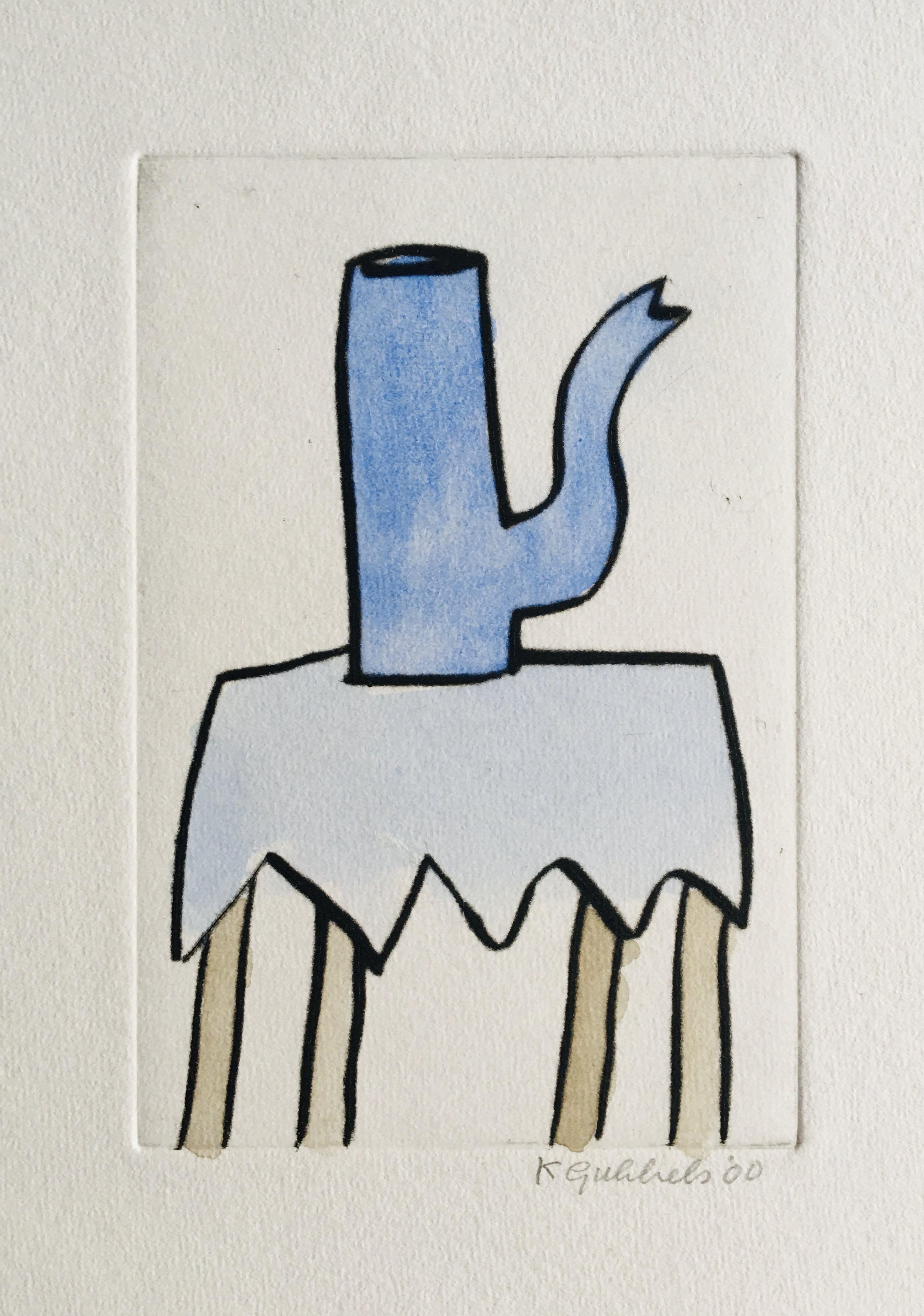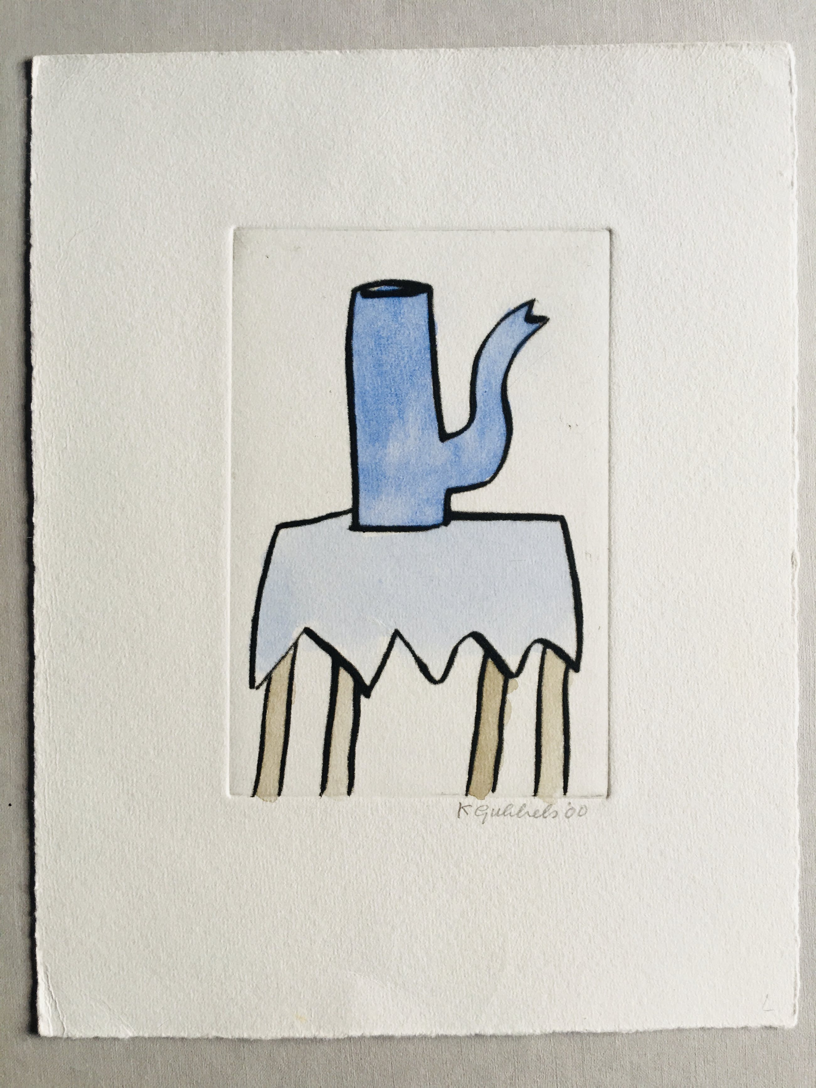 Deze fraaie ets van Klaas Gubbels uit 2000 is handmatig ingekleurd met aquarel. Ieder exemplaar is daardoor uniek geworden. De ets is in goede conditie.
