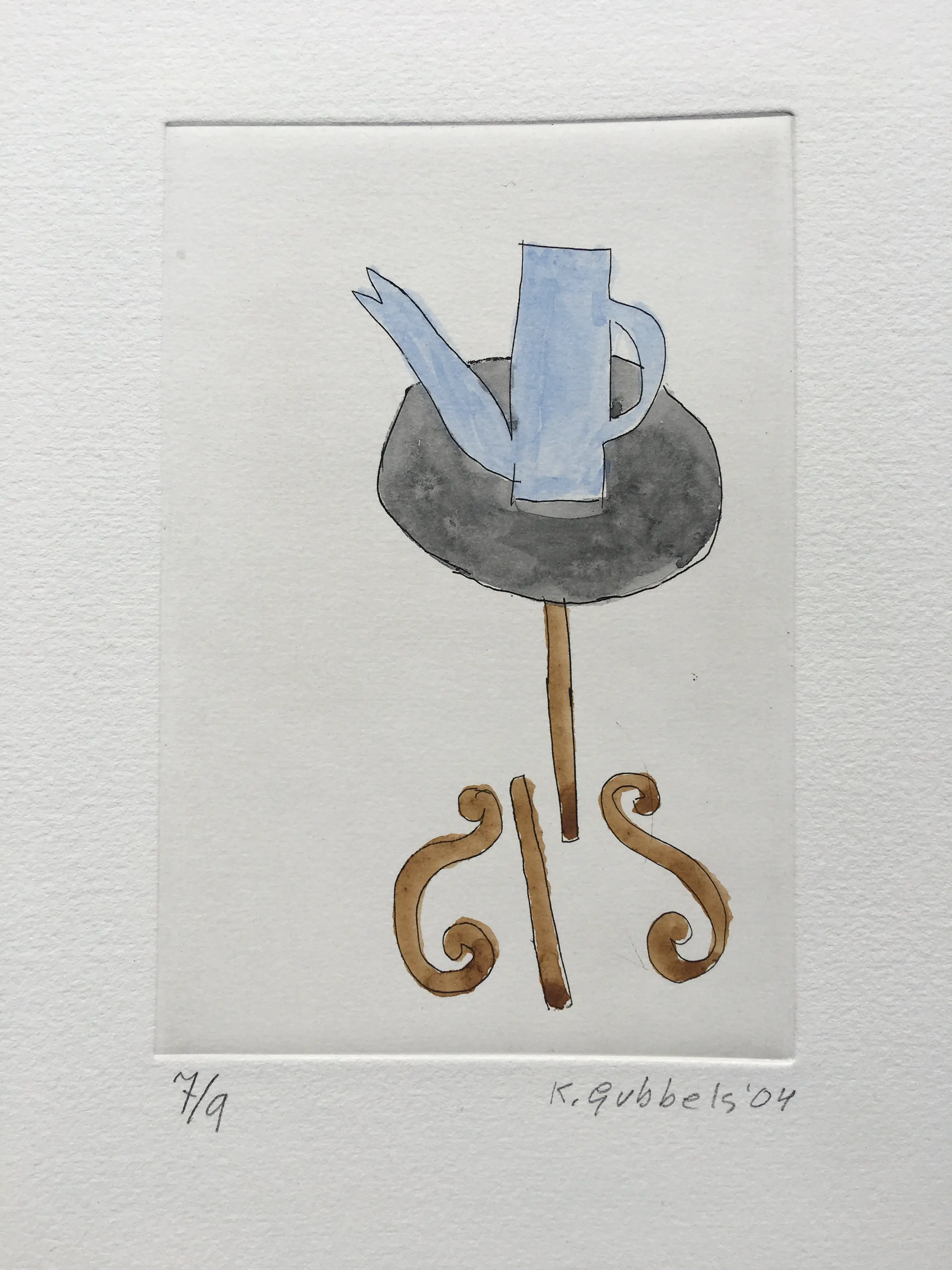 Deze fraaie ets van Klaas Gubbels uit 2004 is handmatig ingekleurd met aquarel. Ieder exemplaar is daardoor uniek geworden. De ets is in goede conditie.