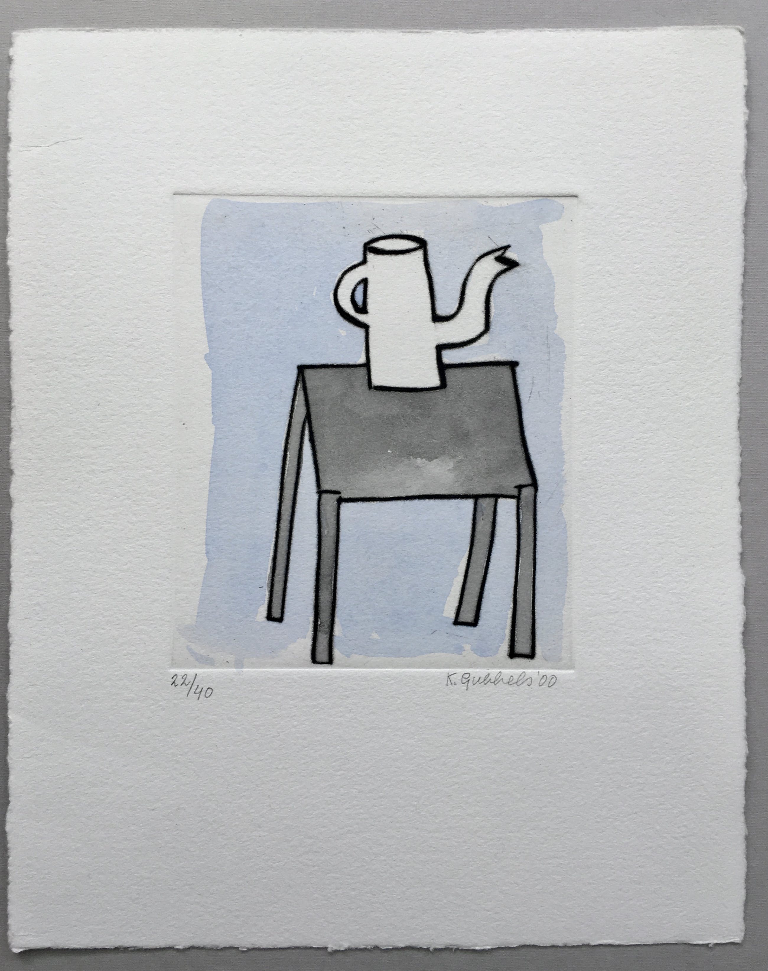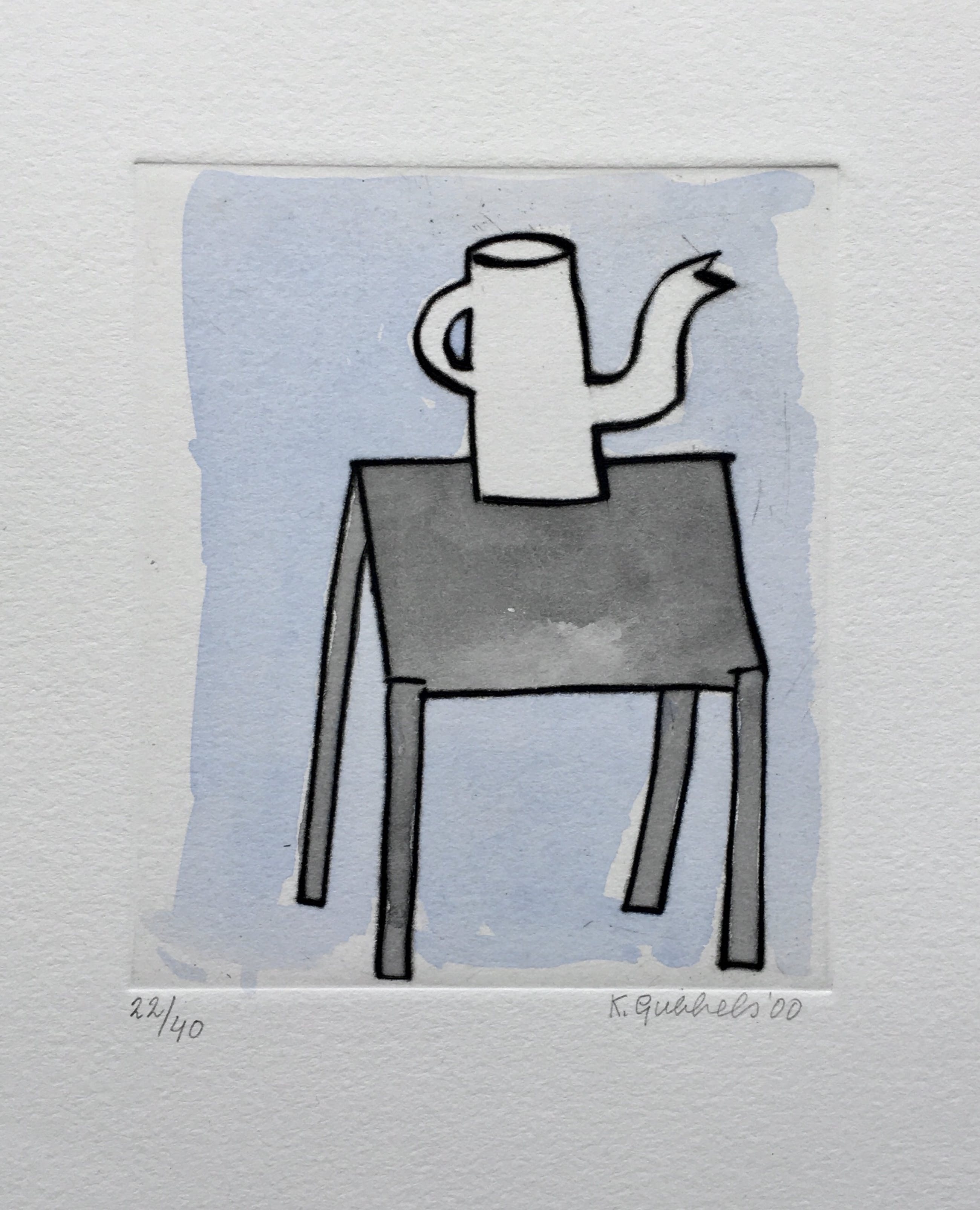 Deze fraaie ets van Klaas Gubbels uit 2000 is handmatig ingekleurd met aquarel. Ieder exemplaar is daardoor uniek geworden. Het werk is gesigneerd en genummerd, oplage 22/40.