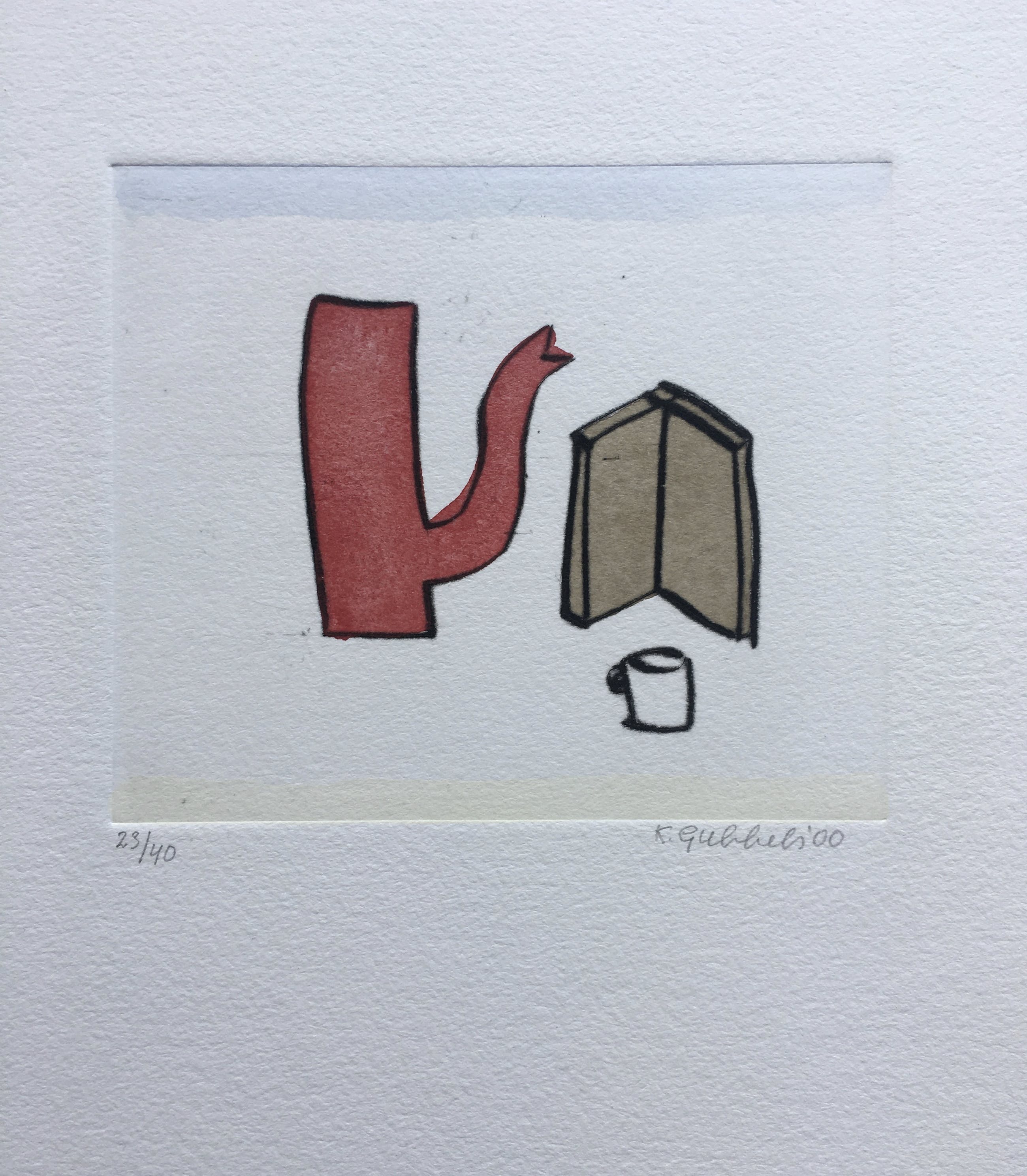 Deze fraaie ets van Klaas Gubbels uit 2000 is handmatig ingekleurd met aquarel. Ieder exemplaar is daardoor uniek geworden. De ets is in goede conditie.