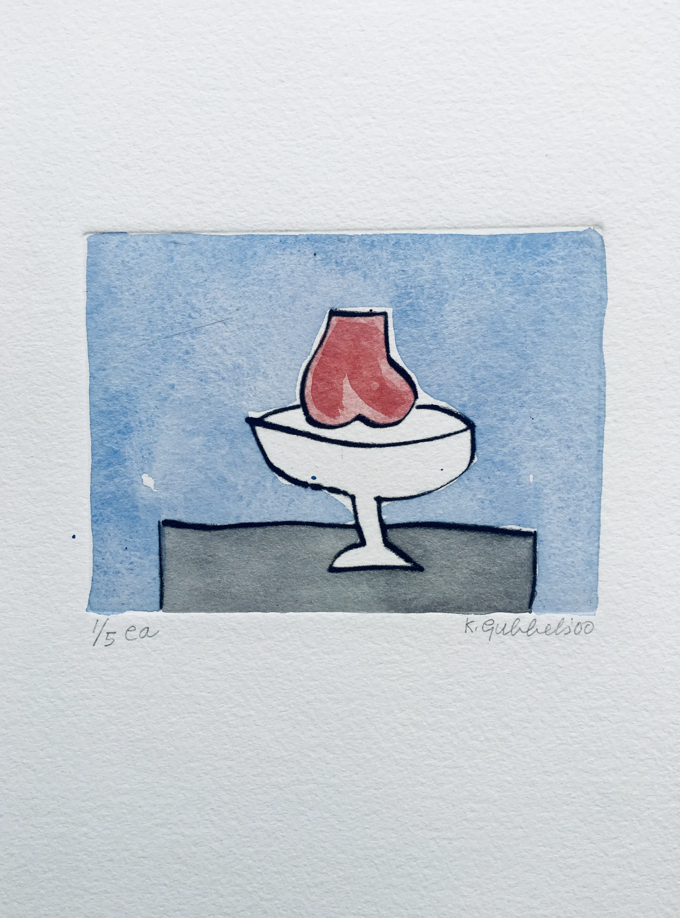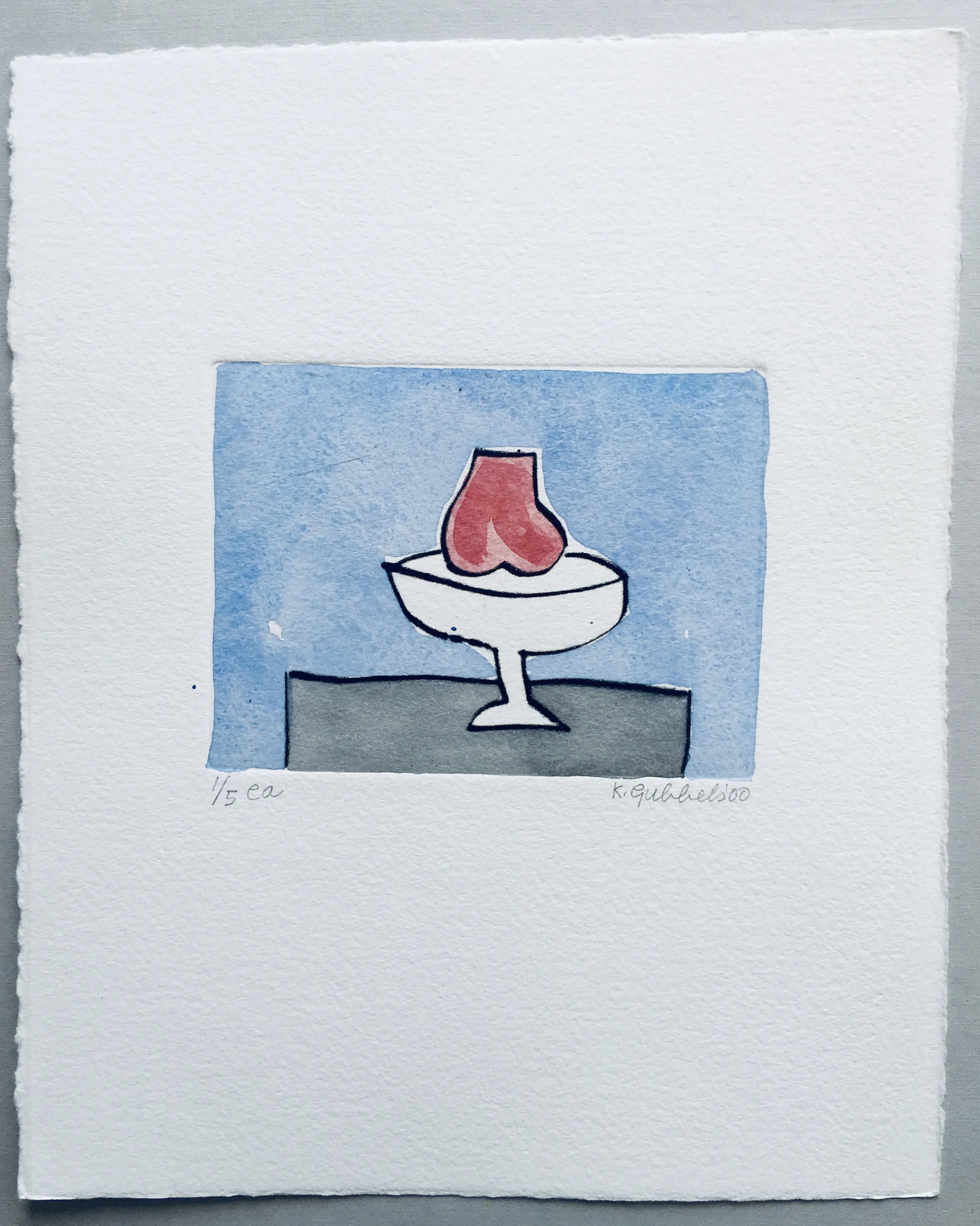 Deze fraaie ets van Klaas Gubbels uit 2000 is handmatig ingekleurd met aquarel. Ieder exemplaar is daardoor uniek geworden. De ets is in goede conditie.