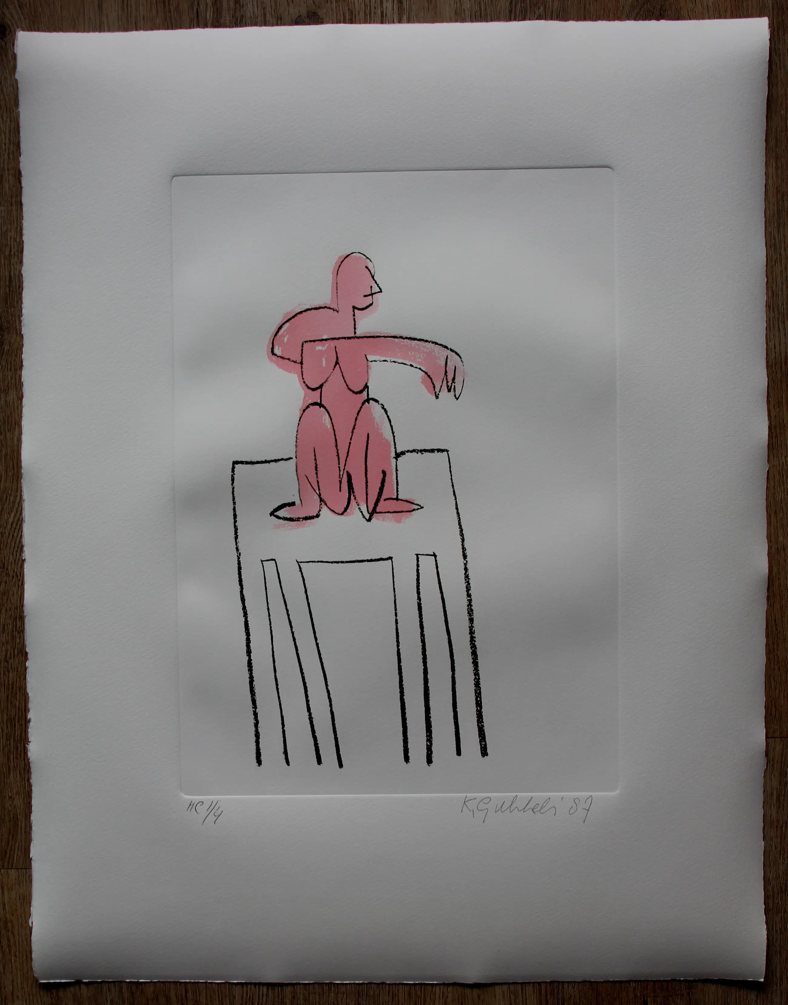 Ets/aquatint van Klaas Gubbels. Titel: Ma modele(mijn model). Oplage: HC, 1/4. Afmetingen blad: H66 x b51cm. Afmetingen voorstelling: H30 x b25cm. Het werk is, rechtsonder met potlood, gesigneerd door de kunstenaar. De authenticiteit van het, aangeboden, werk wordt volledig gegarandeerd. Een certificaat van echtheid kan, op aanvraag, worden gemaild.