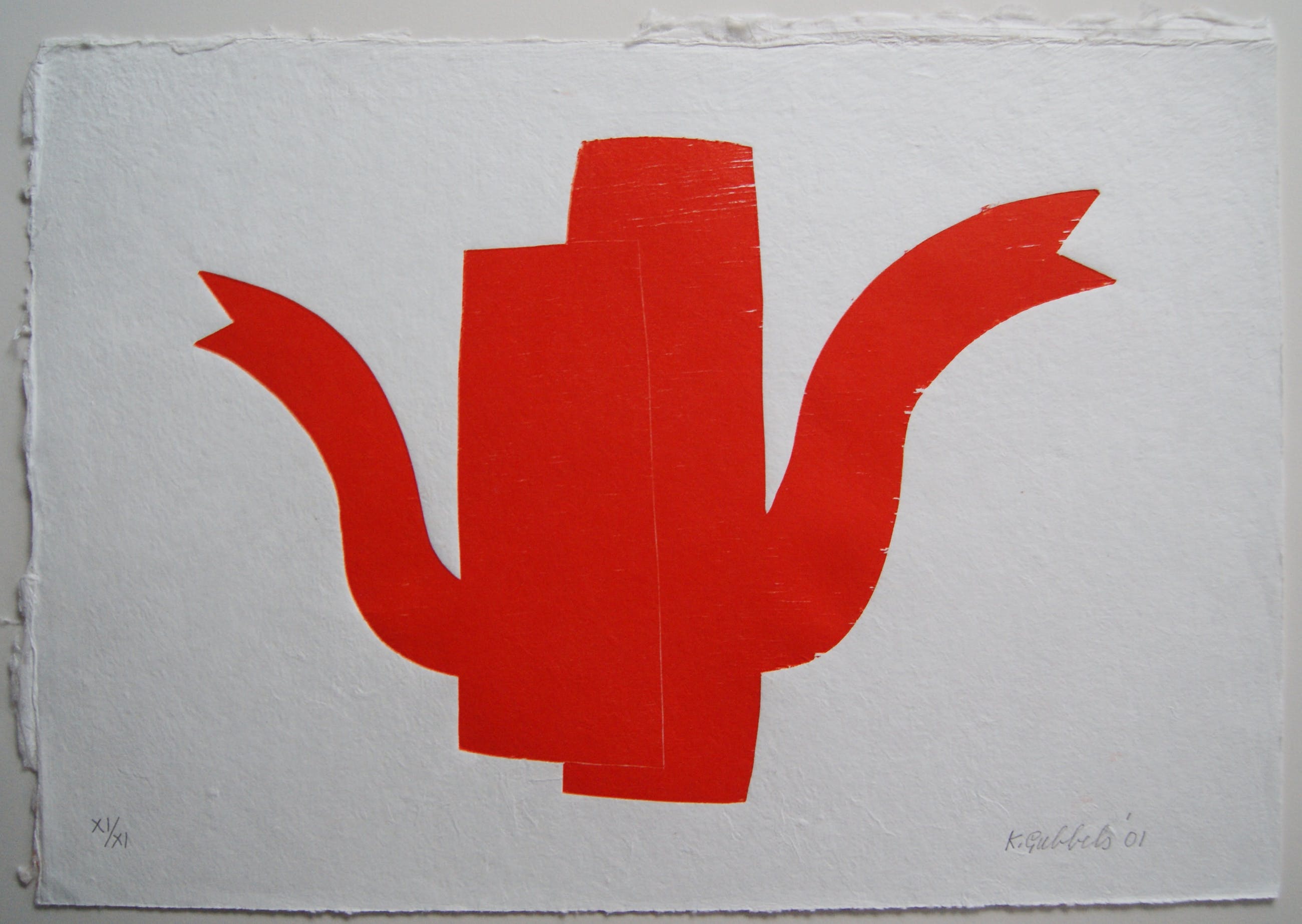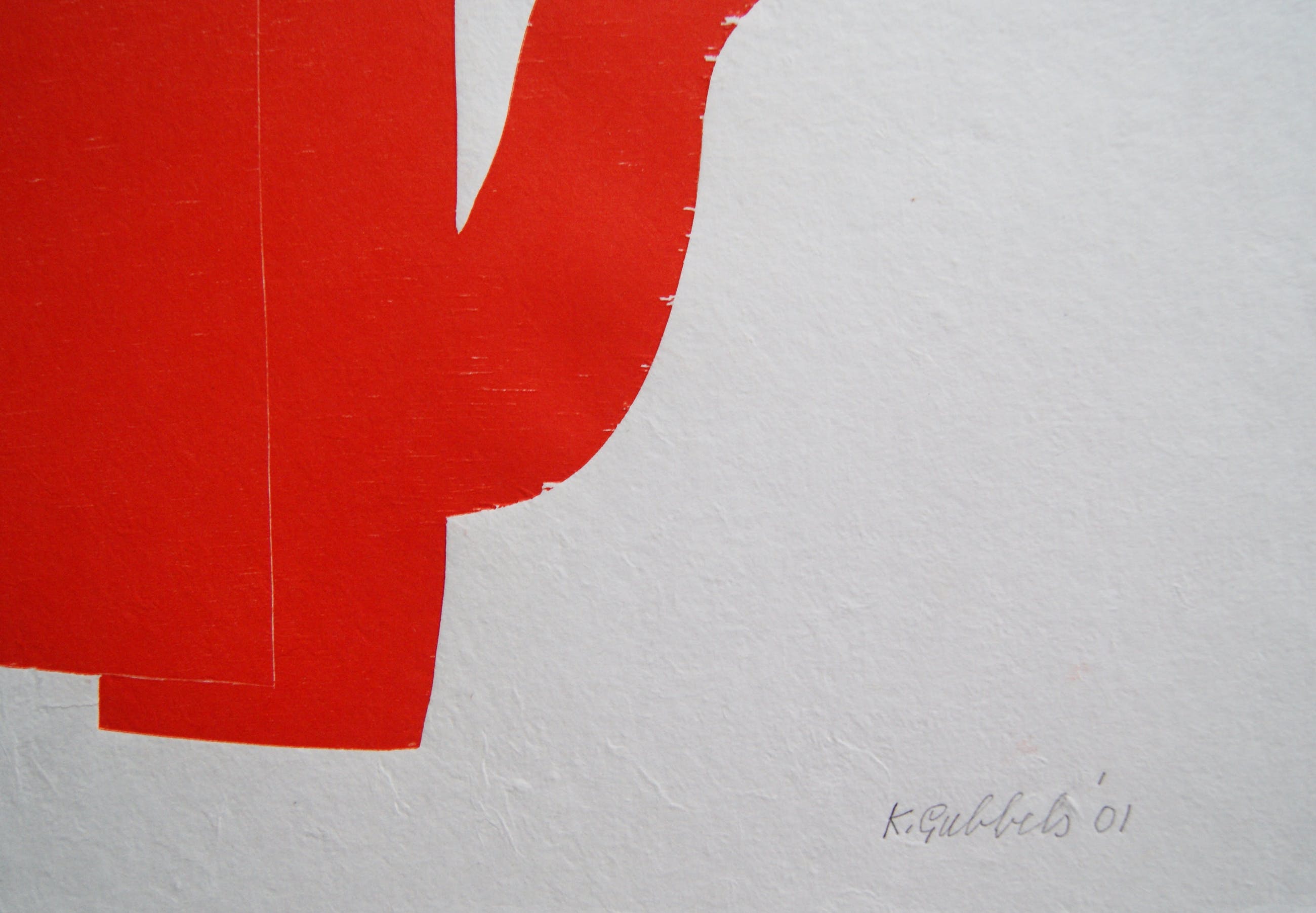 Een zeer fraaie houtdruk van Klaas Gubbels, getiteld A+M uit 2001.