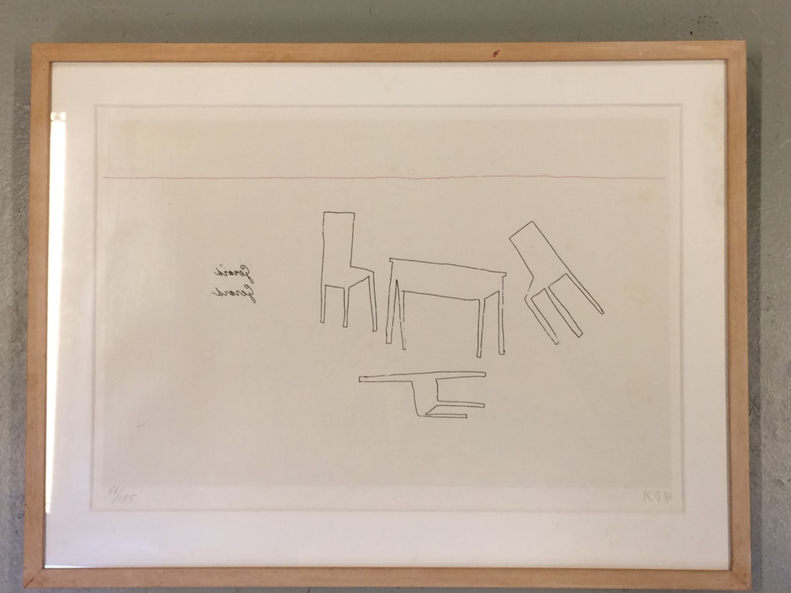 Gesigneerde ( monogram) en genummerde zeefdruk van Klaas Gubbels uit 1981. Formaat 41 x 55. Afgedrukt in een oplage van 155 exemplaren is dit nummer 66. Aan de rechterkant een paar ouderdoms verkleuringen in papier. De zeefdruk kan met passe partout worden opgehaald in onze galerie in Arkel of zonder passe partout aangetekend worden verzonden in een stevige kartonnen verpakking.