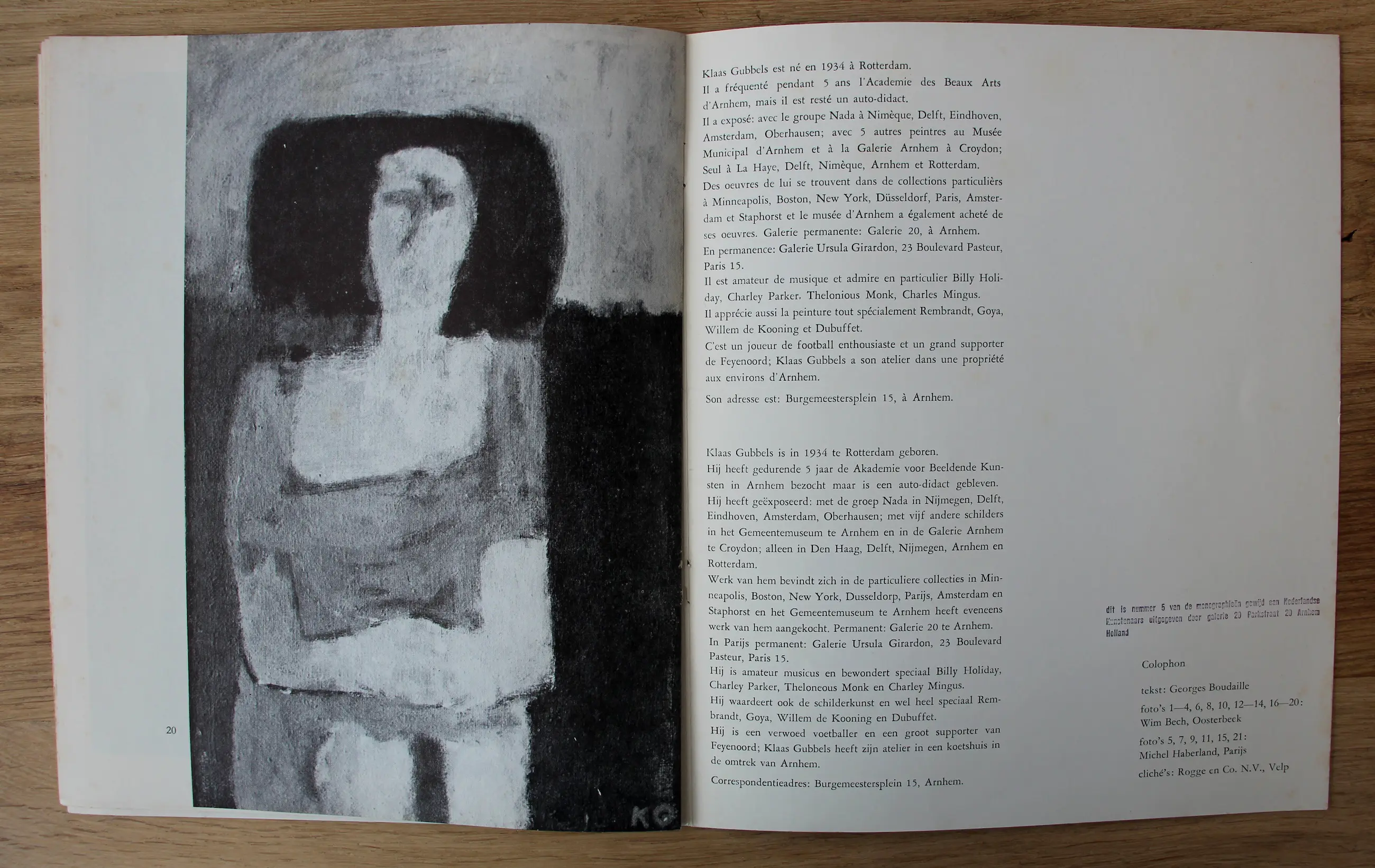 Uitgave van galerie 20 te Arnhem. Waarschijnlijk jaren '60. Er staan werken van Gubbels in uit de jaren 50 en '60. Aantal blz: 22. Het boekje is met potlood gesigneerd in 2012.