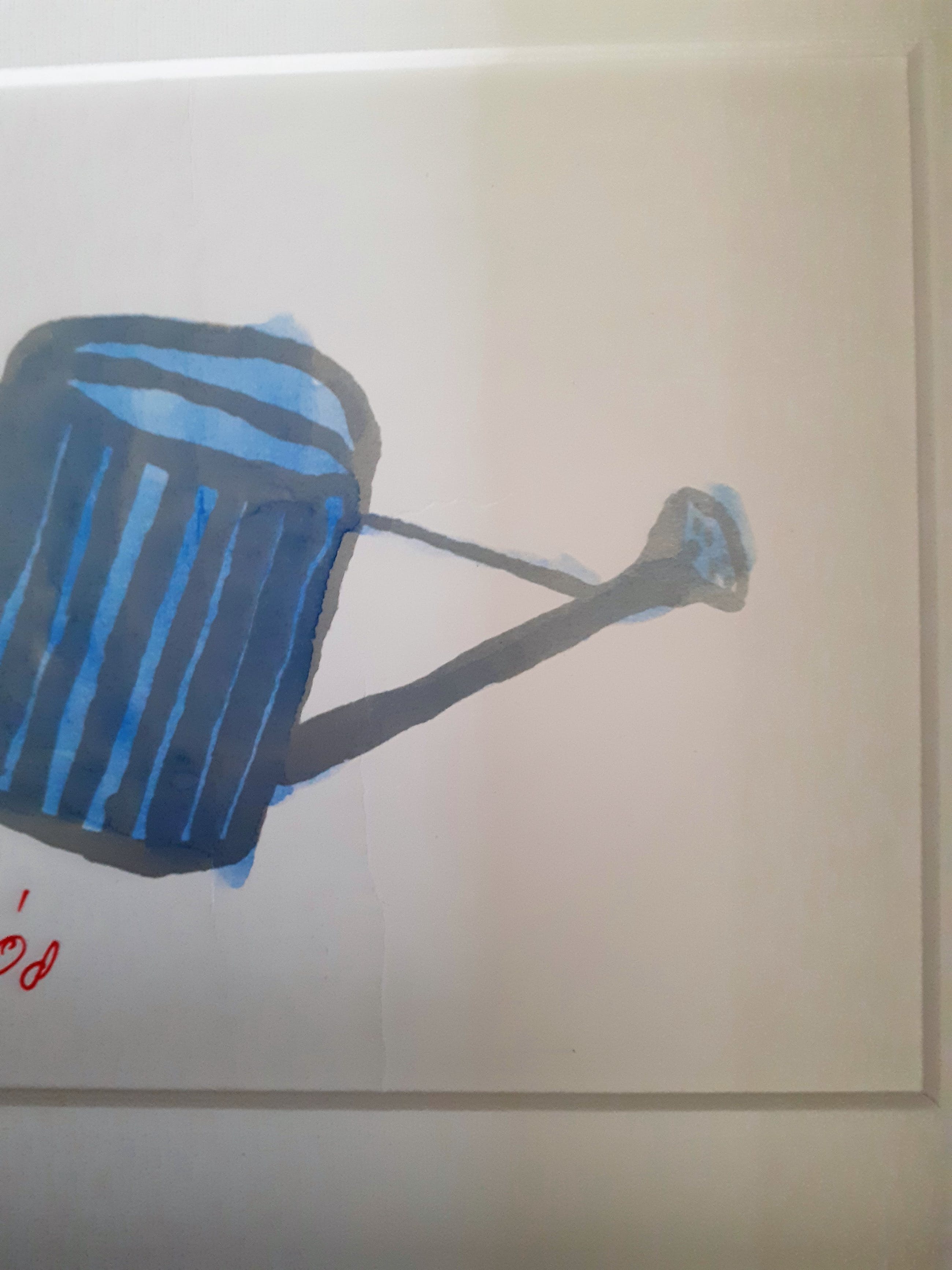 Mooi origineel werkje van Klaas Gubbels 'Gieter' uit 2008 Stift/aquarel Mooi gelijst in verdiepte lijst Kleine oneffenheid, lichte vouw, maar nauwelijks zichtbaar (zie foto 2)