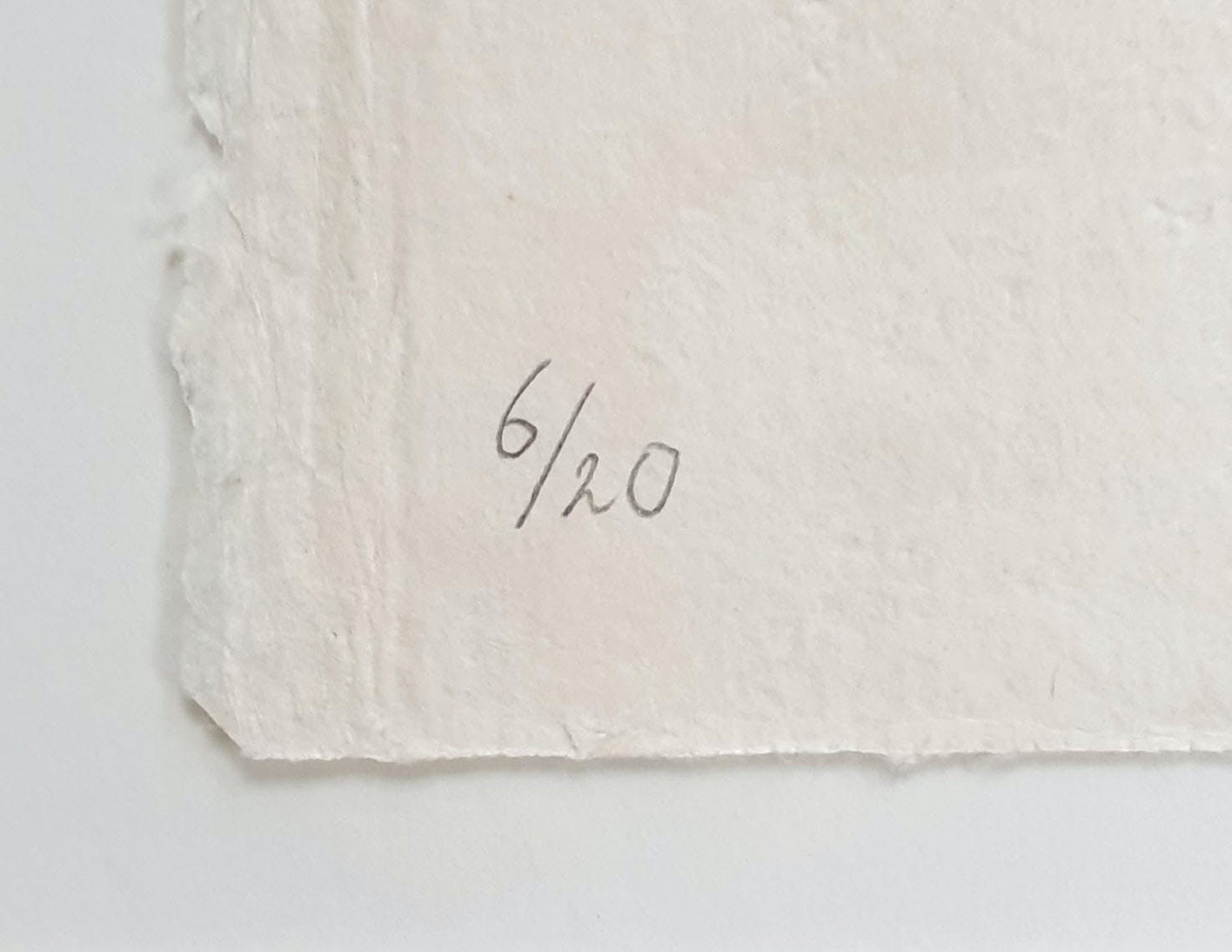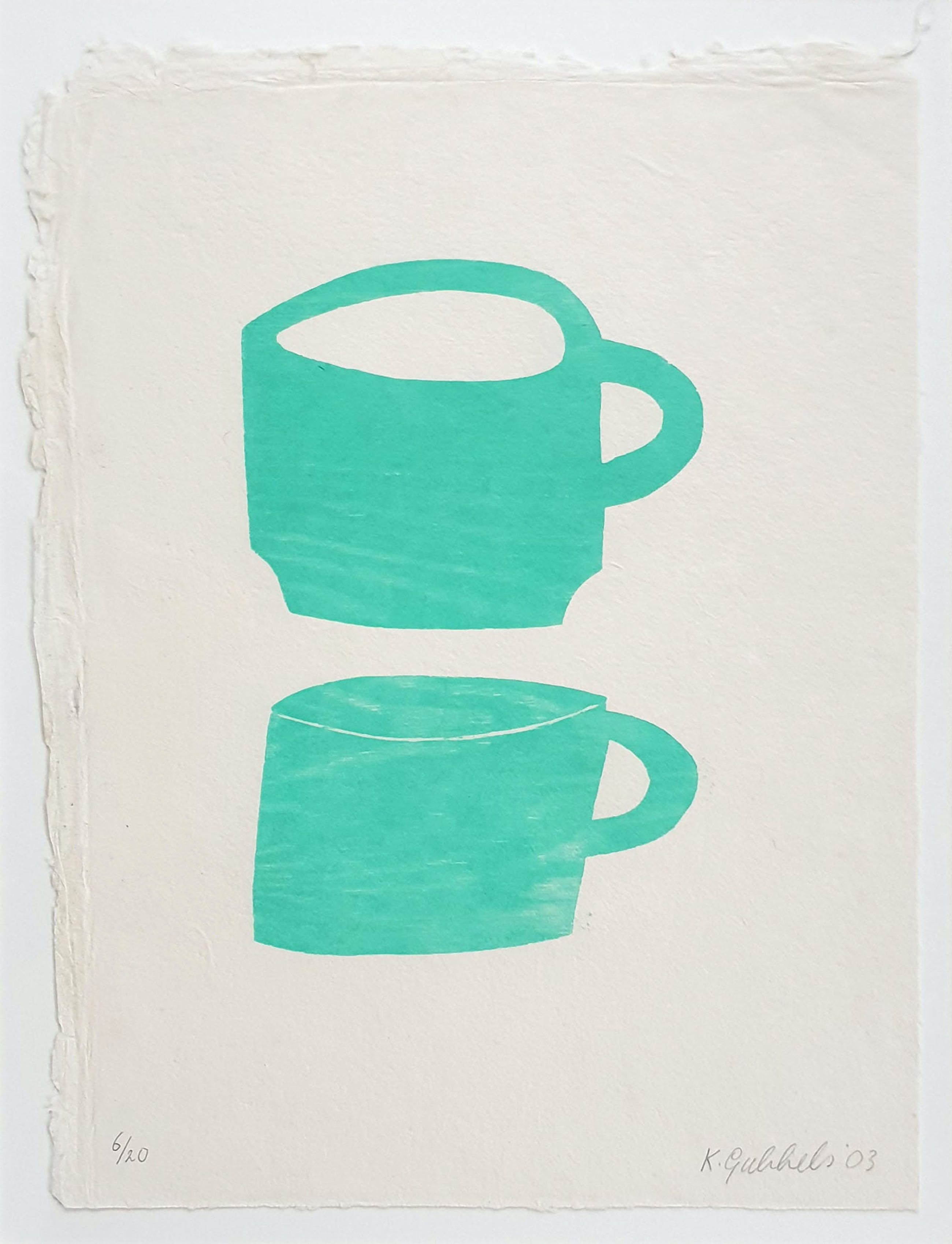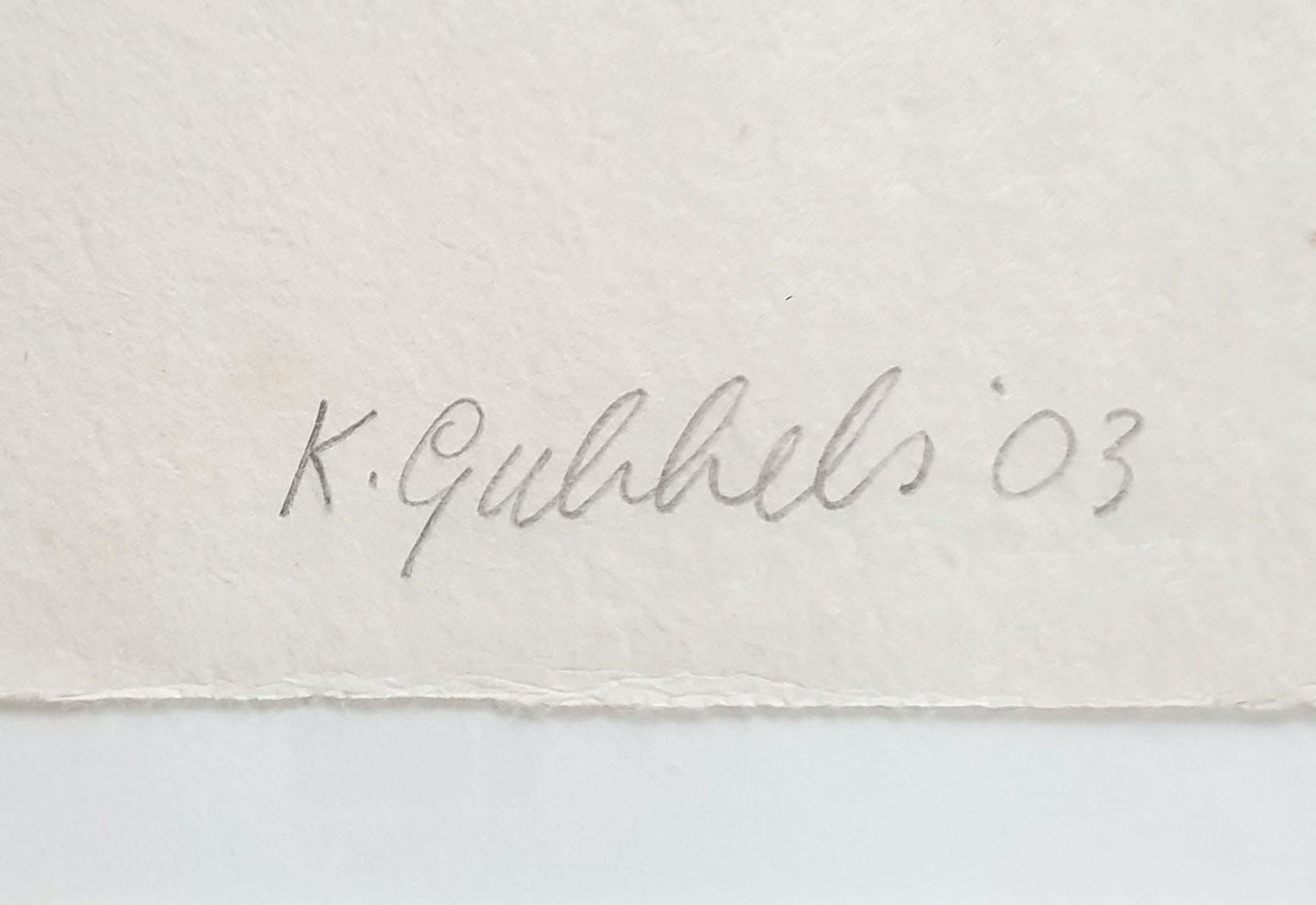 Zeer fraaie sjabloondruk op handgeschept papier van Klaas Gubbels uit 2003. Het werk is rechtsonder met de hand gesigneerd door de kunstenaar.