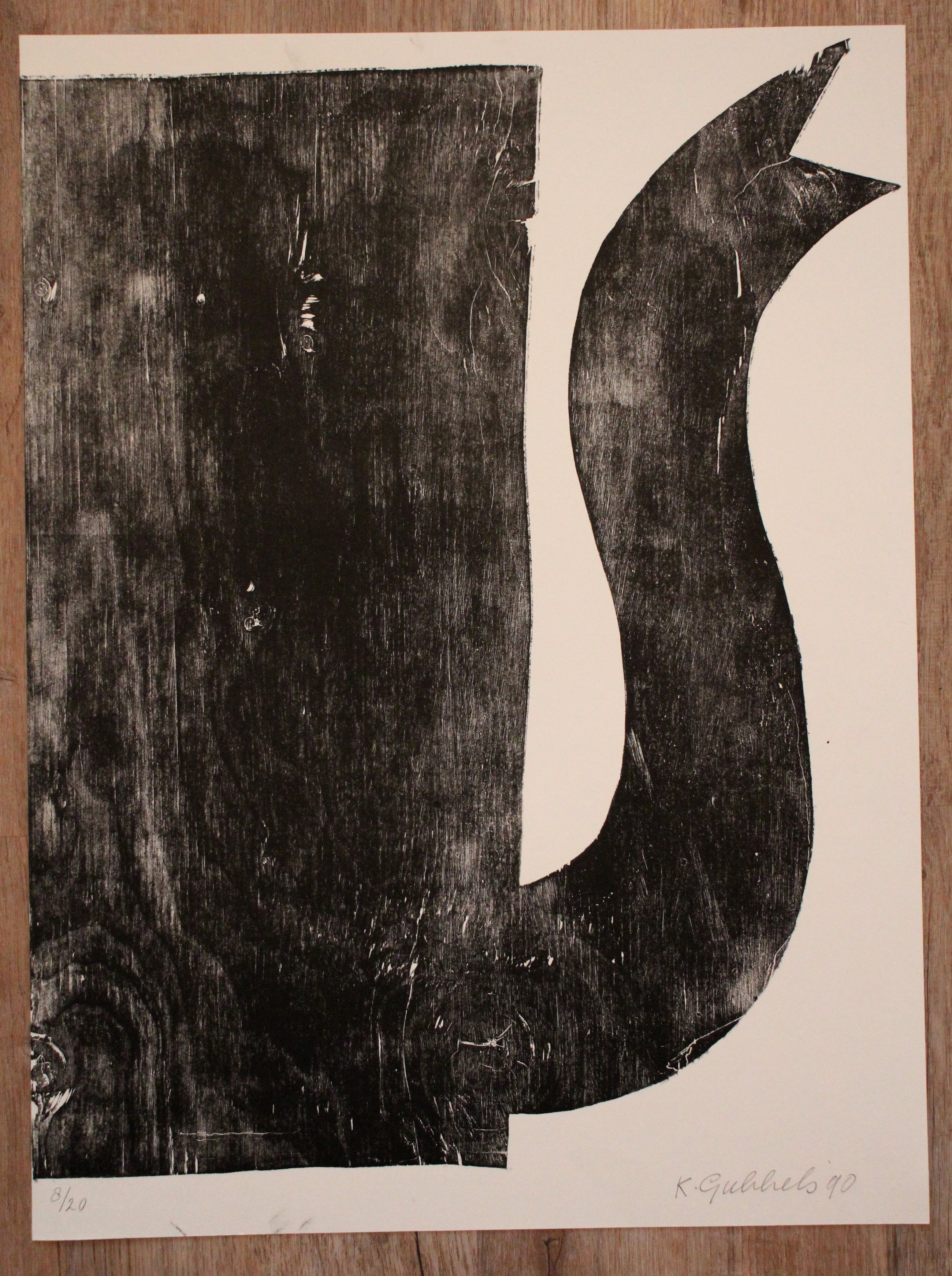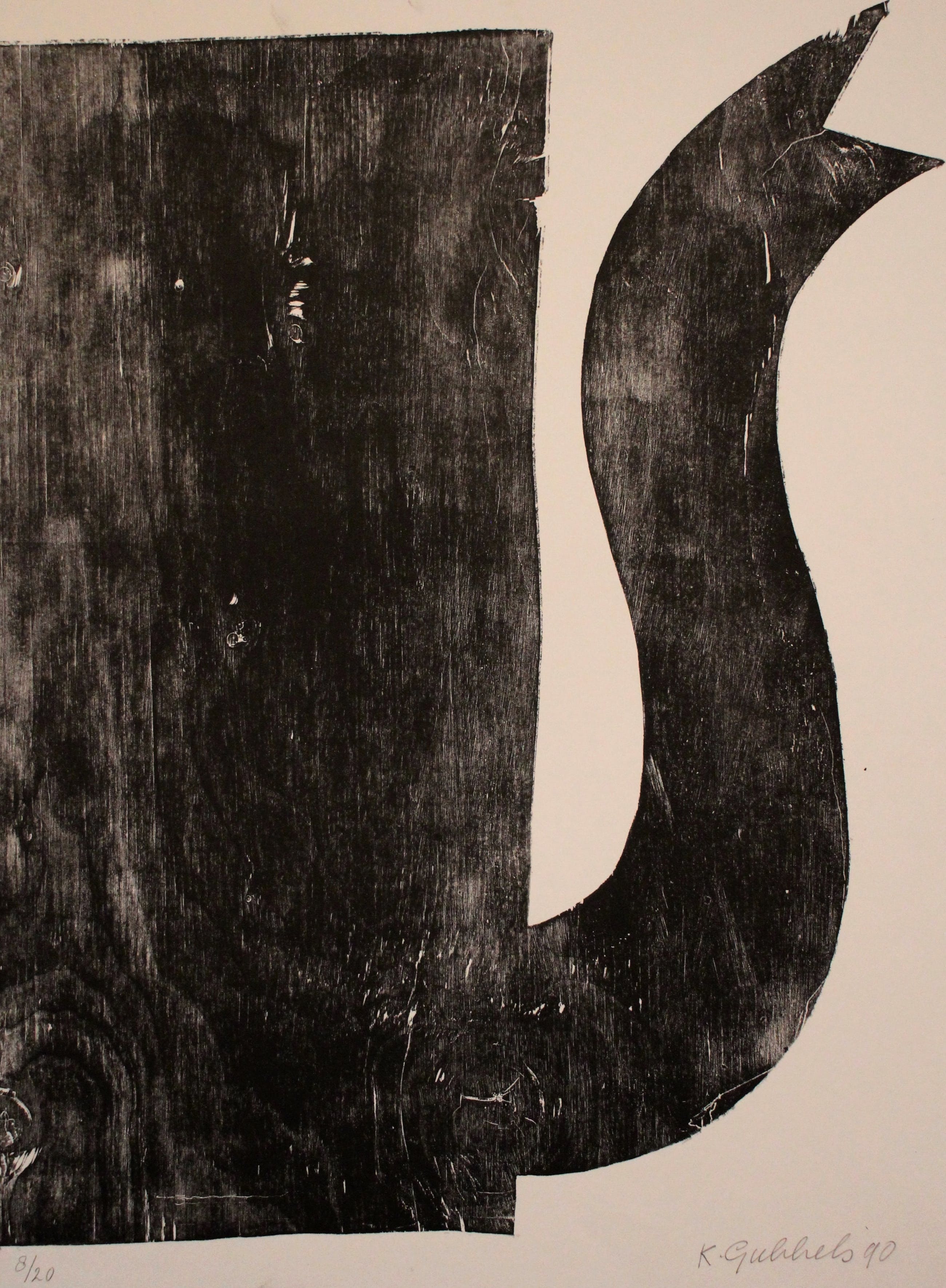 Houtsnede van Klaas Gubbels uit 1990. Nummer: 8/20. Afmetingen blad: H67 x b50 cm. Afmetingen beeld:H60.5 x b50 cm. Het werk is rechtsonder, met potlood, gesigneerd door de kunstenaar. De authenticiteit van het aangeboden werk wordt voor 100% gegarandeerd. Een certificaat van echtheid kan, op aanvraag worden meegestuurd.Het werk moet plat verzonden worden. Hierdoor zijn de verzendkosten iets hoger.