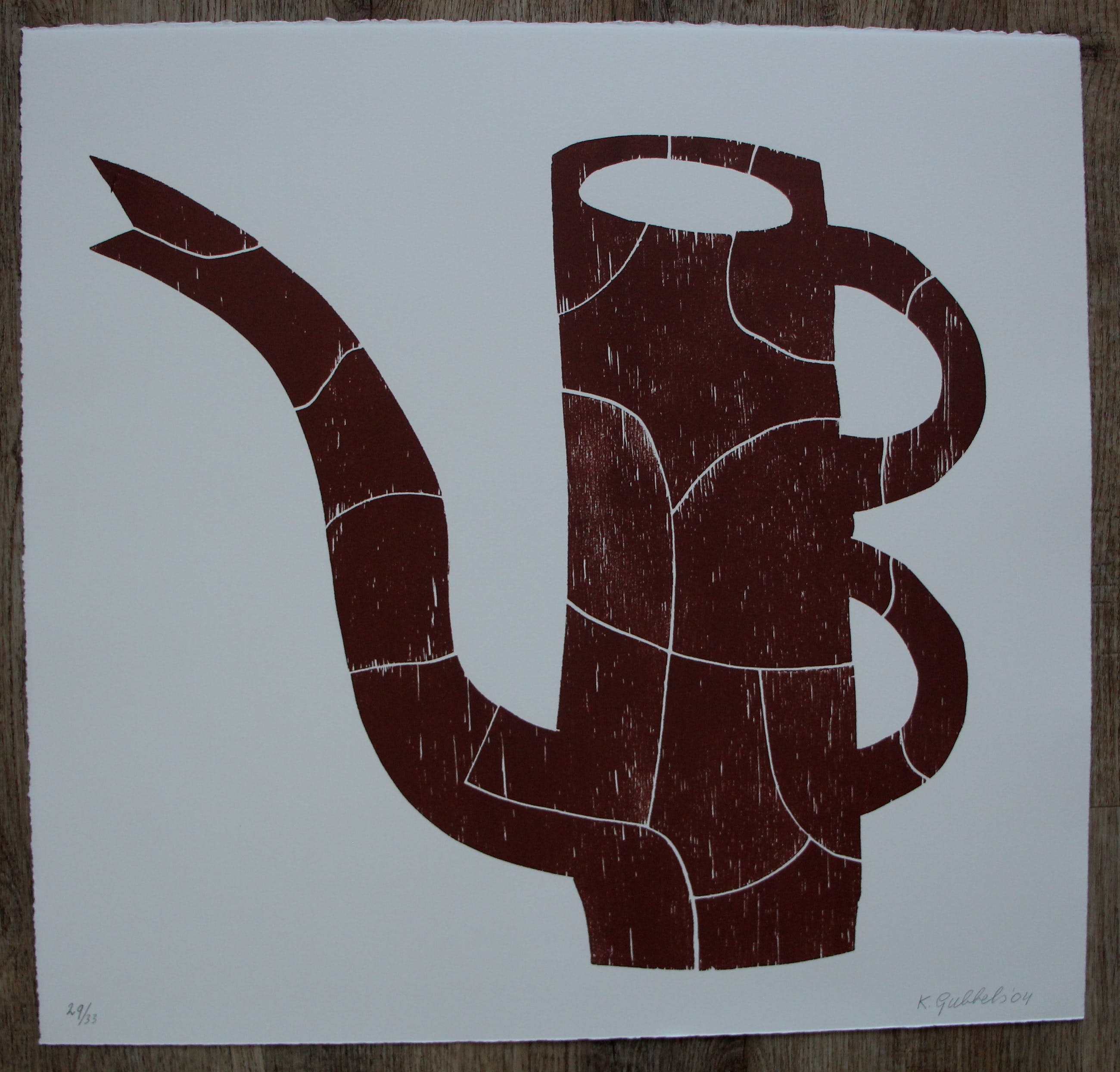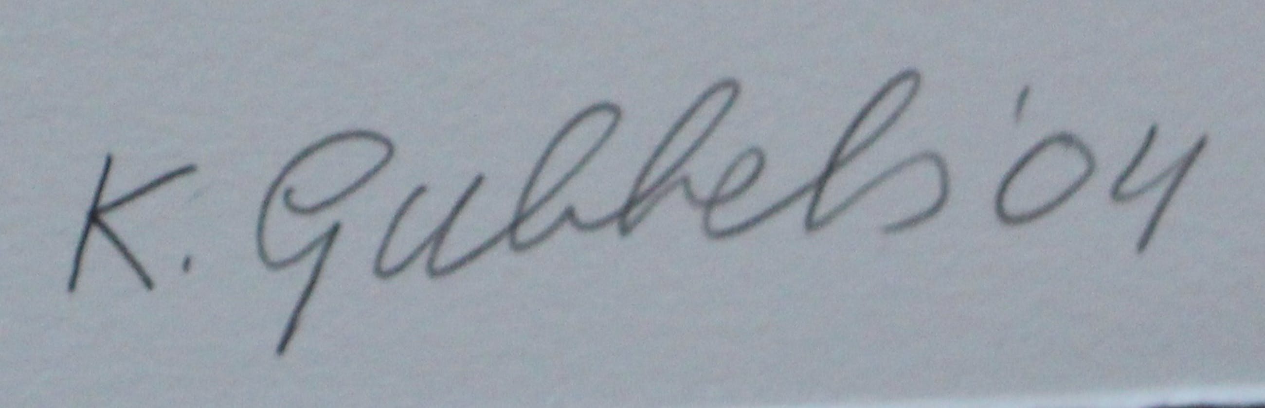 Grote zeefdruk van Klaas Gubbels. Jaar: 2004. Nummer: 29/33. Afmetingen blad: H60.5 x b63.5cm. Afmetingen voorstelling: H50 x b53cm.Het werk is rechts onderin, met potlood, gesigneerd door de kunstenaar. De authenticiteit van het, aangeboden, werk wordt volledig gegarandeerd. Een certificaat van echtheid kan, op aanvraag, worden gemaild.