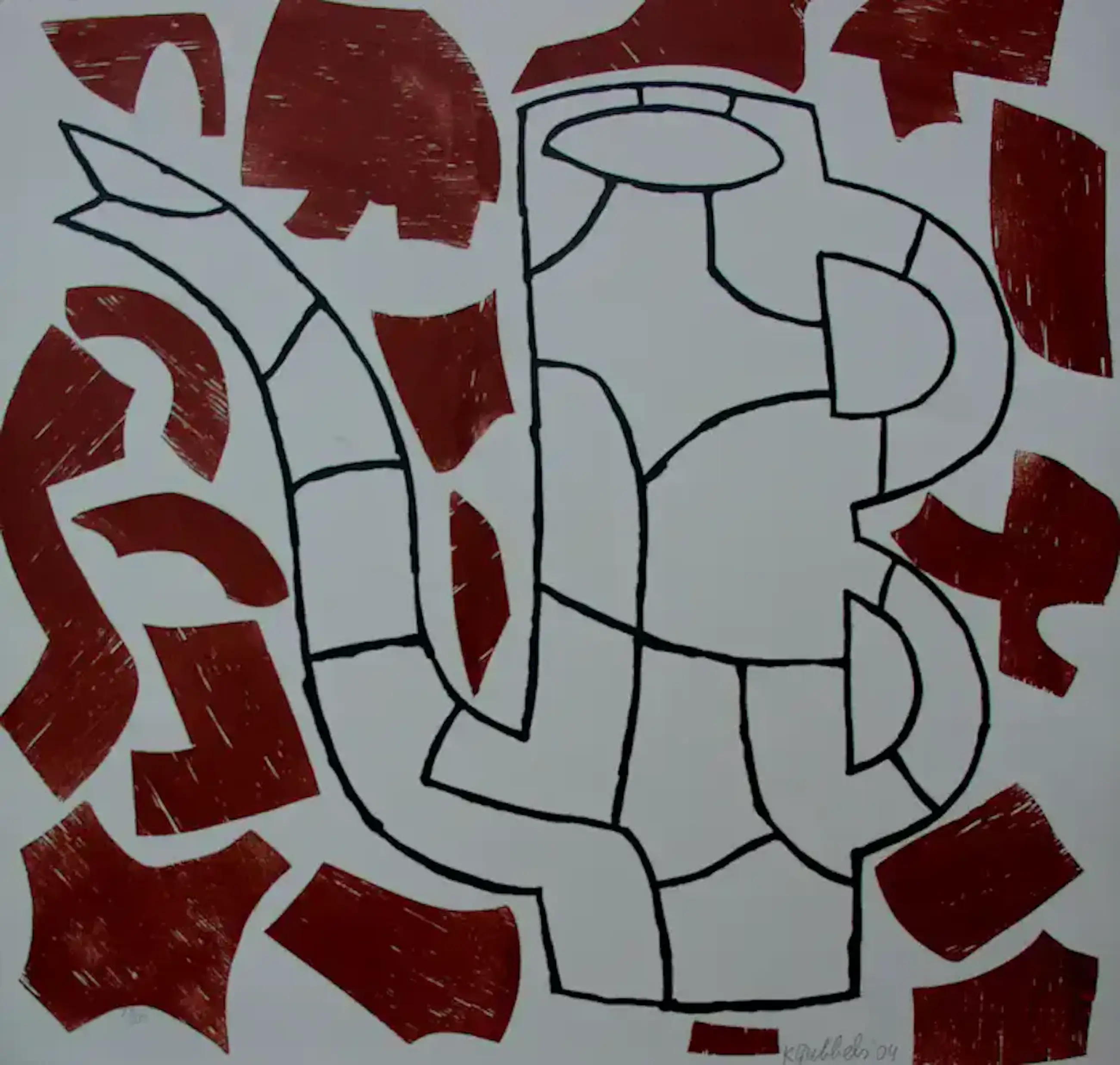 Zeer grote zeefdruk van Klaas Gubbels uit 2004. Nummer: 27/33 (het nummer kan afwijken i.v.m. het in bezit hebben van meerdere exemplaren. Afmetingen blad: H60.5 x b63.5cm. Afmetingen voorstelling: H59 x b62cm. Het werk is rechtsonder gesigneerd door de kunstenaar. De authenticiteit van dit werk wordt volledig gegarandeerd. Een certificaat kan, op aanvraag, worden gemaild.