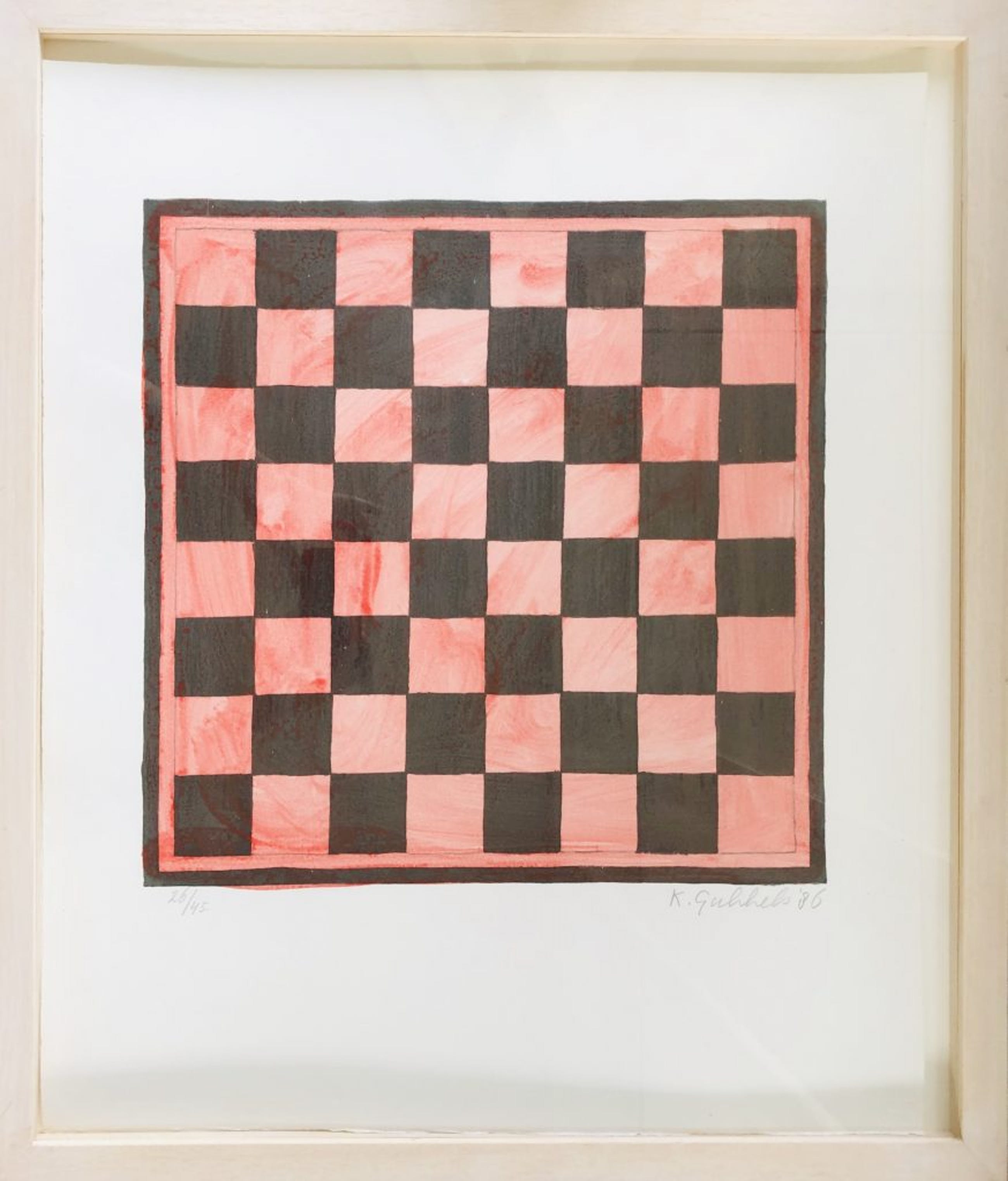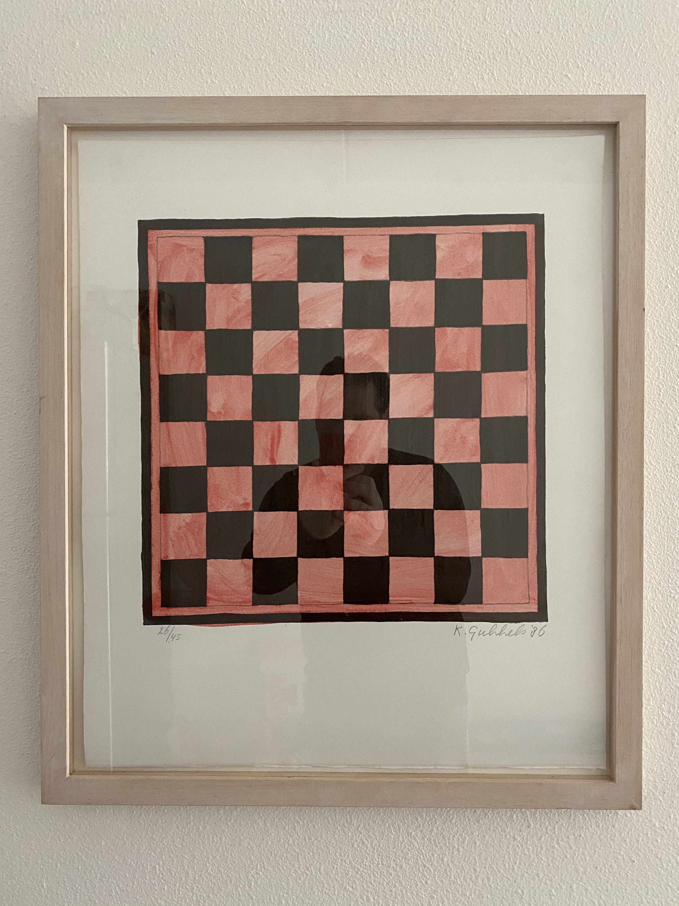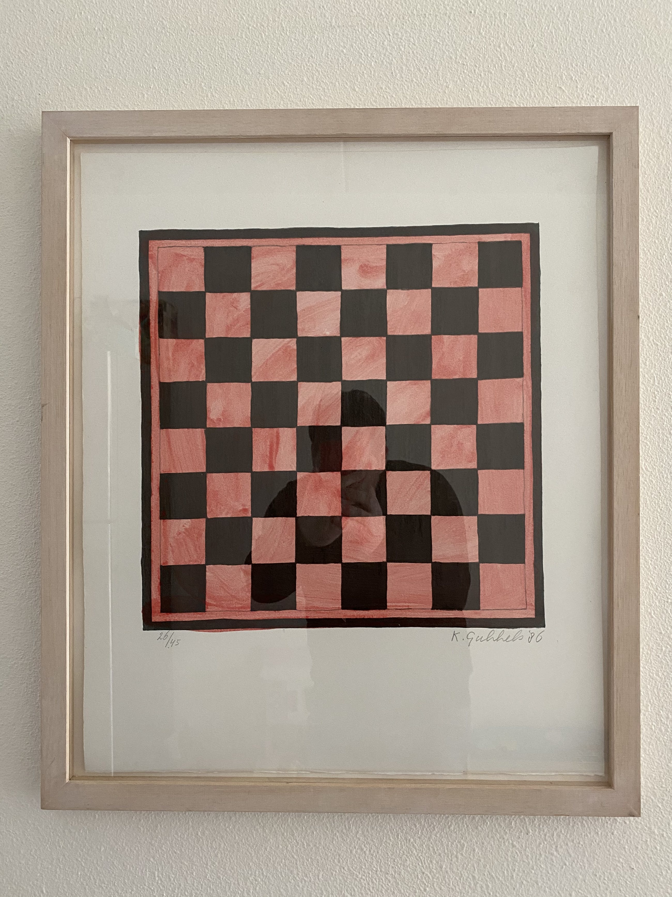Door Klaas Gubbels met de hand ingekleurde zeefdruk wat het een uniek exemplaar maakt, ingelijst in een typische Klaas Gubbels lijst.