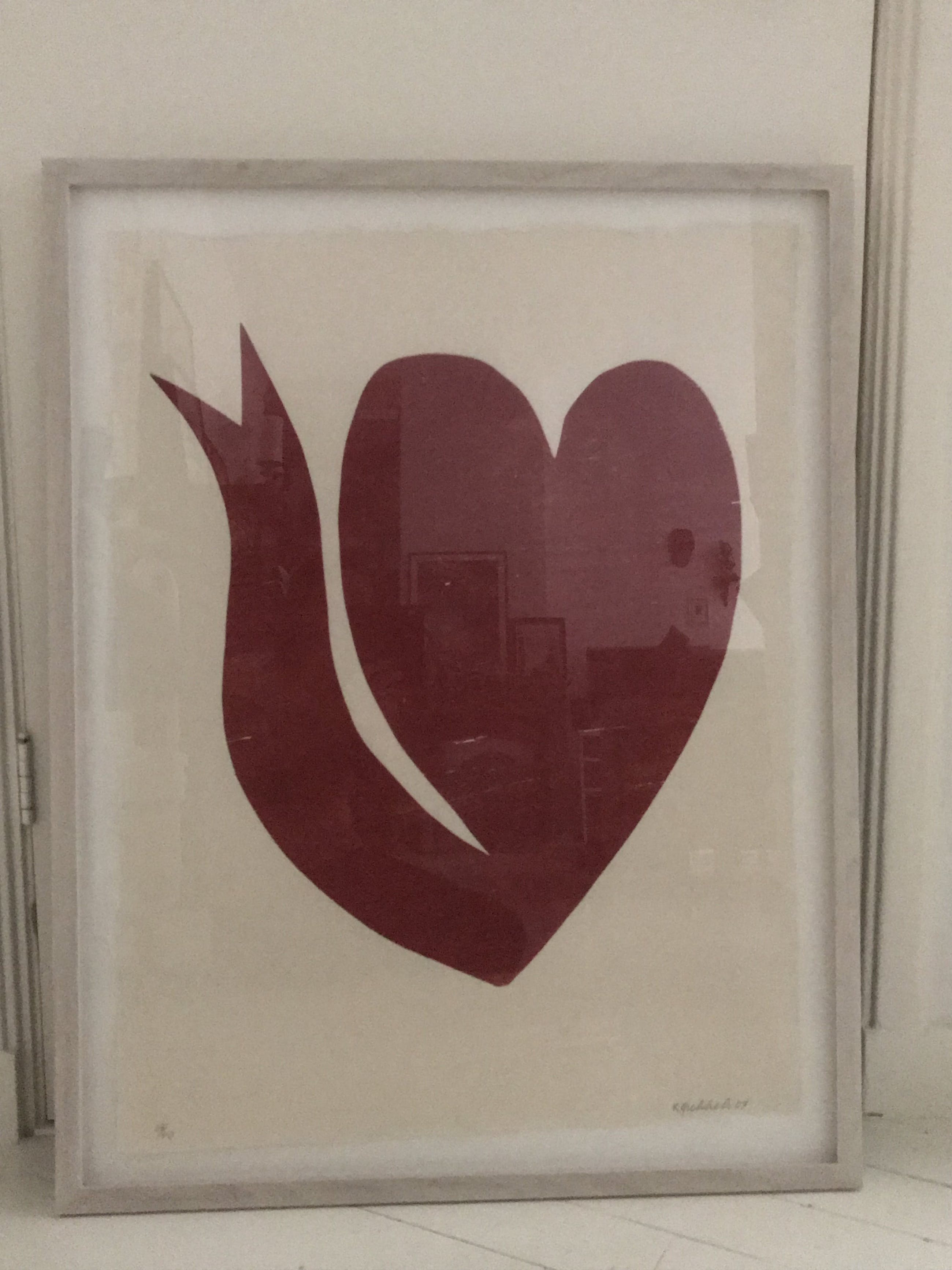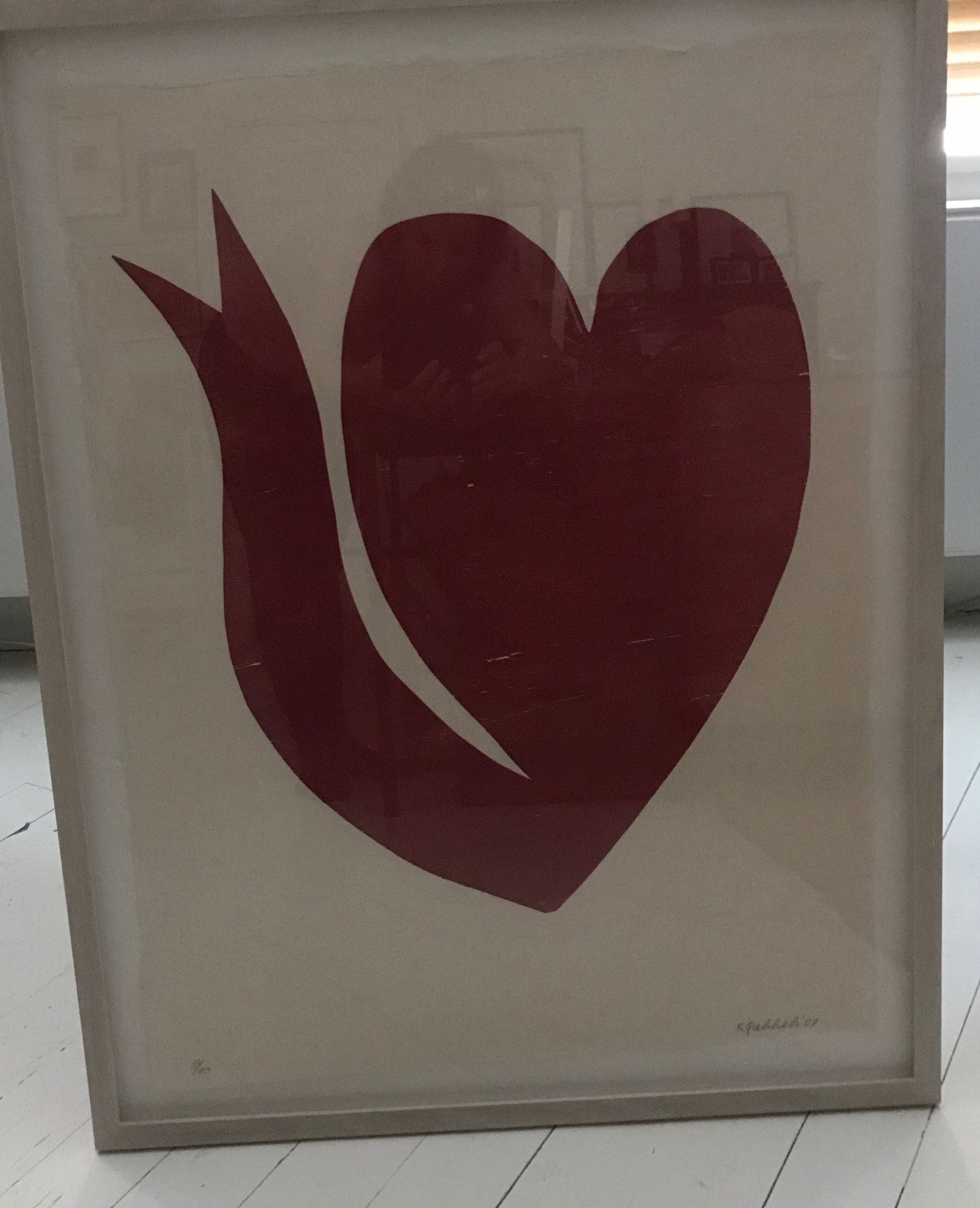 Een zeer fraaie grote Hartenkan van Klaas Gubbels! Houtdruk op handgeschept papier uit 2008.