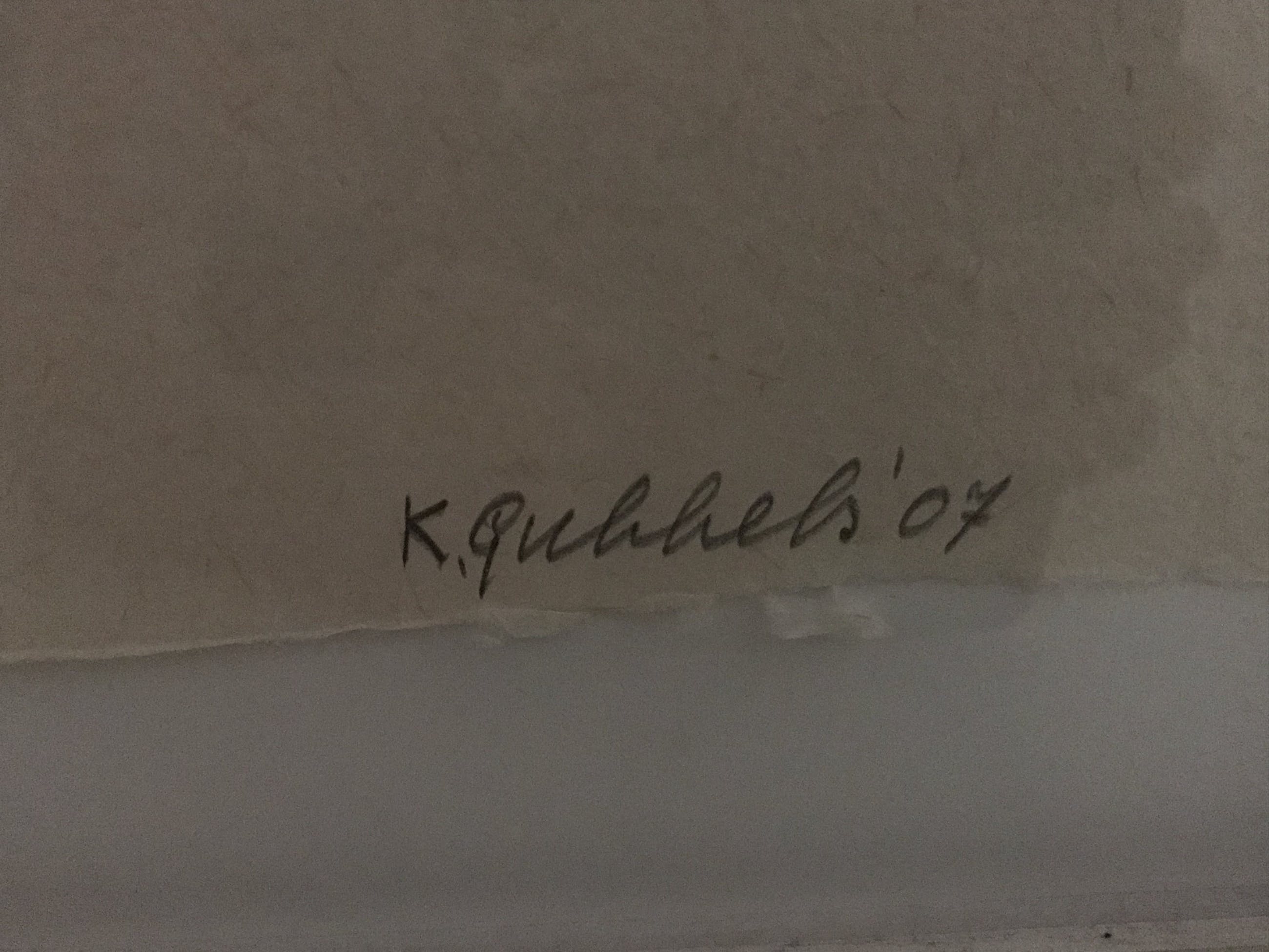 Deze houtdruk is fraai verdiept ingelijst in een mooie, wit essenhouten lijst. De afmetingen zijn 80 x 60 cm (incl. lijst 91 x 71 cm). Werk en lijst zijn in zeer goede conditie. Het werk is rechtsonder gesigneerd door de kunstenaar en genummerd 13/40.