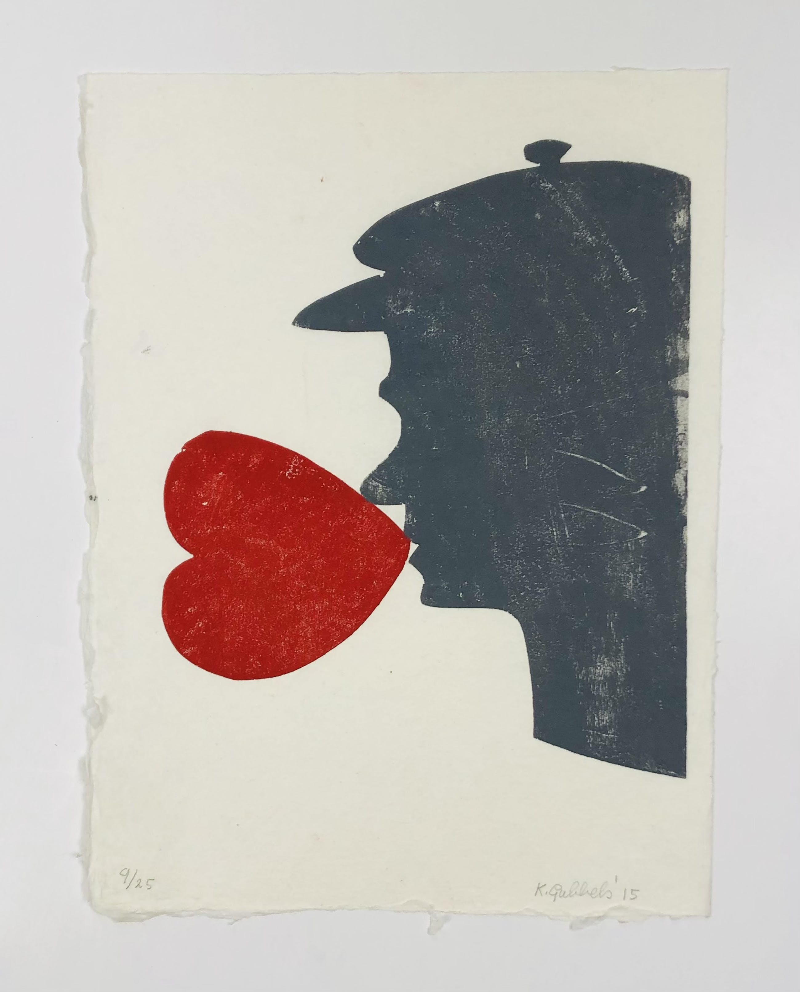 Fraaie houtdruk op geschept papier van Klaas Gubbels.