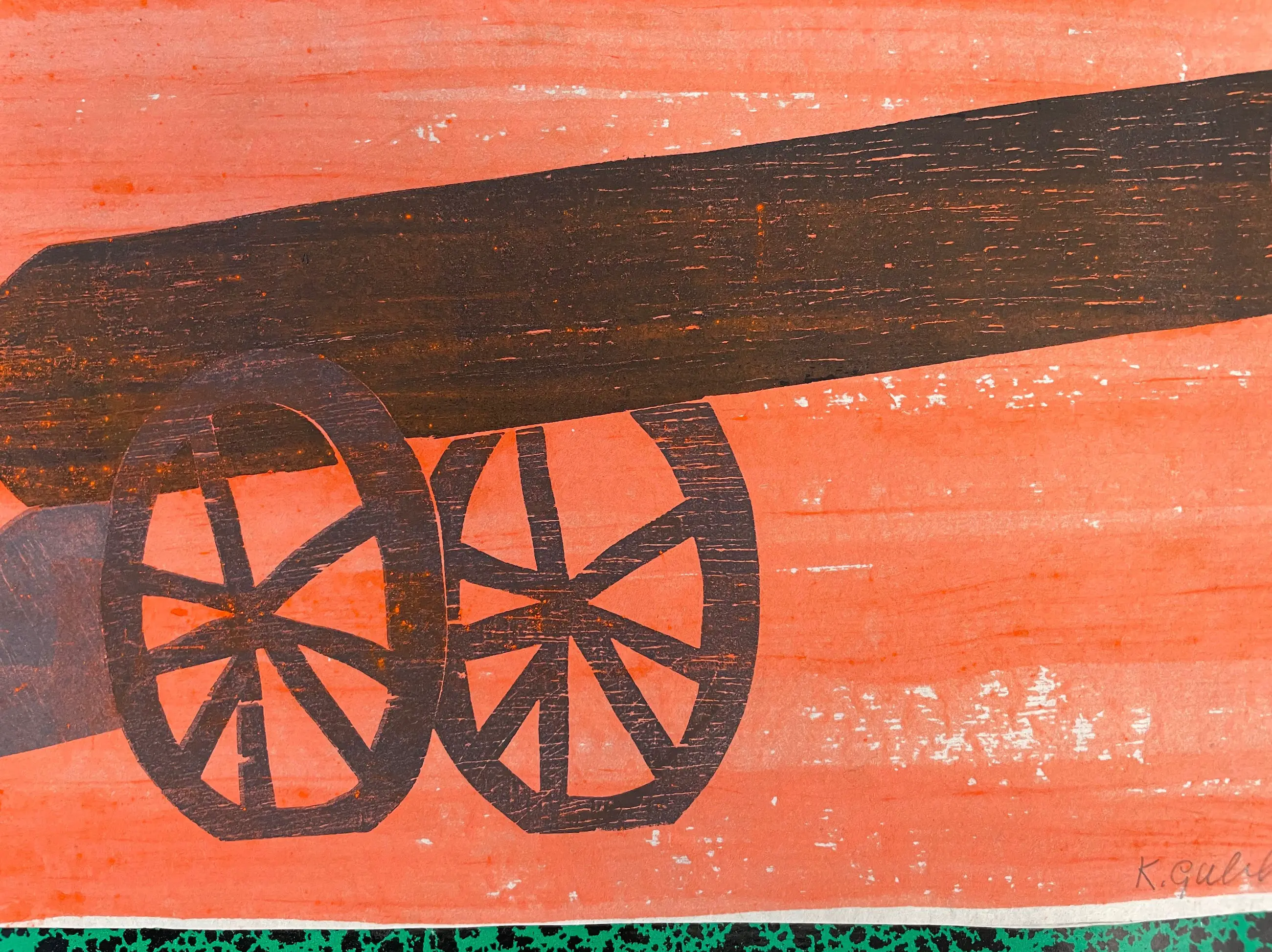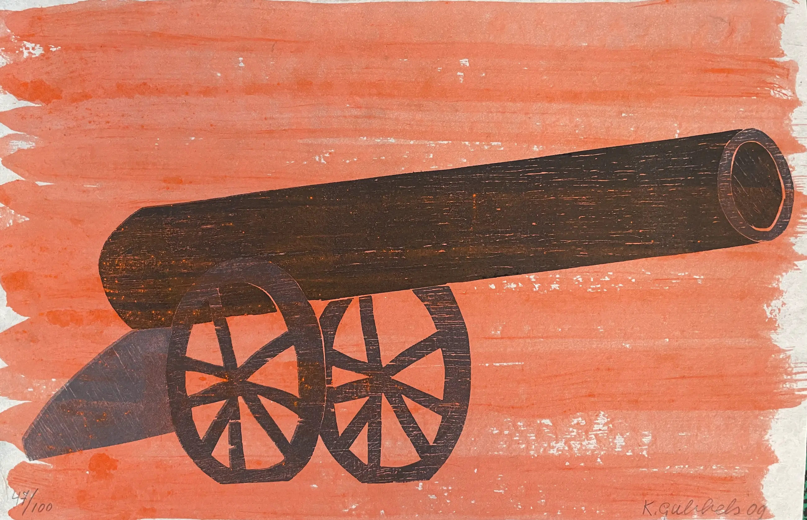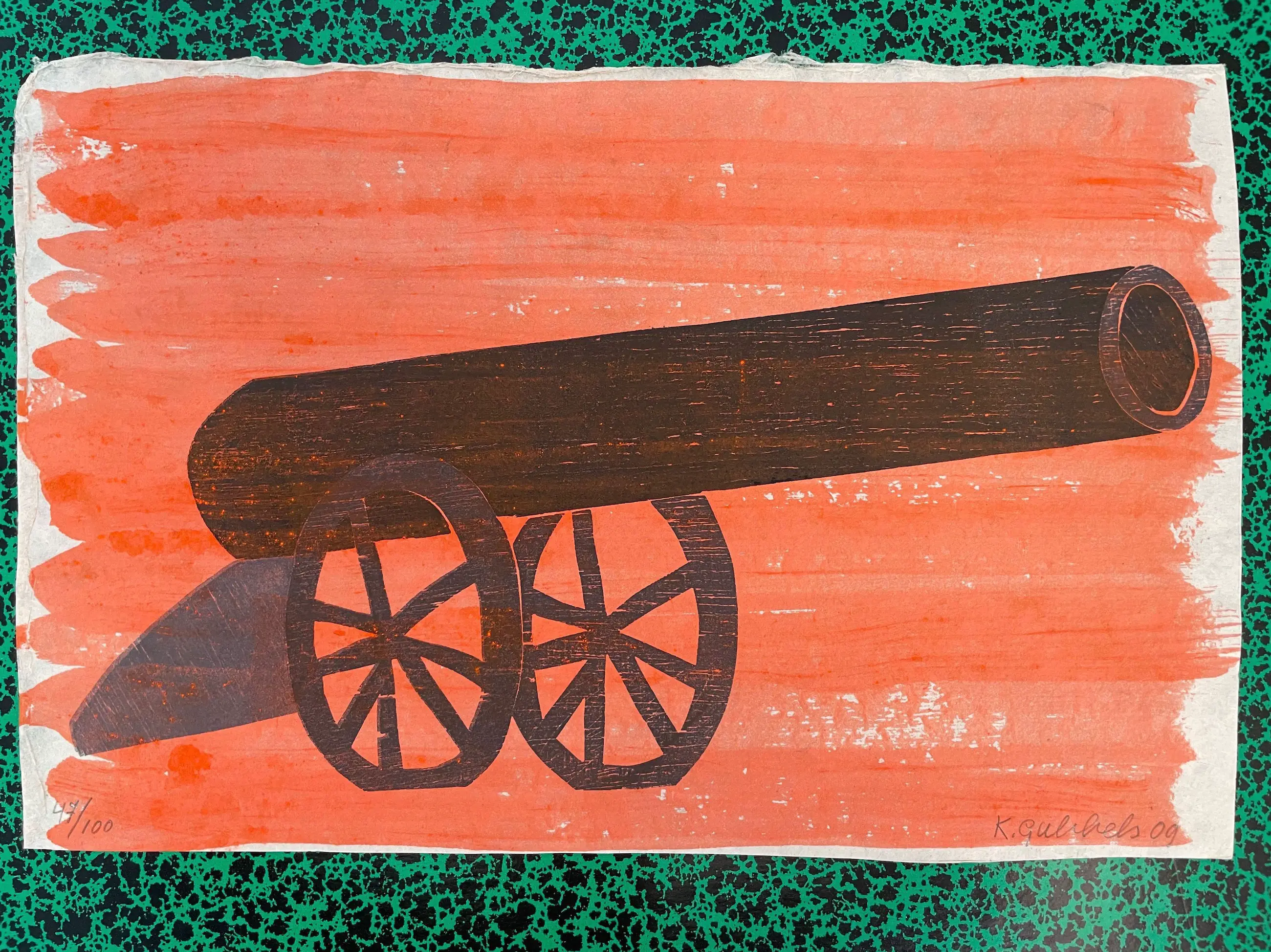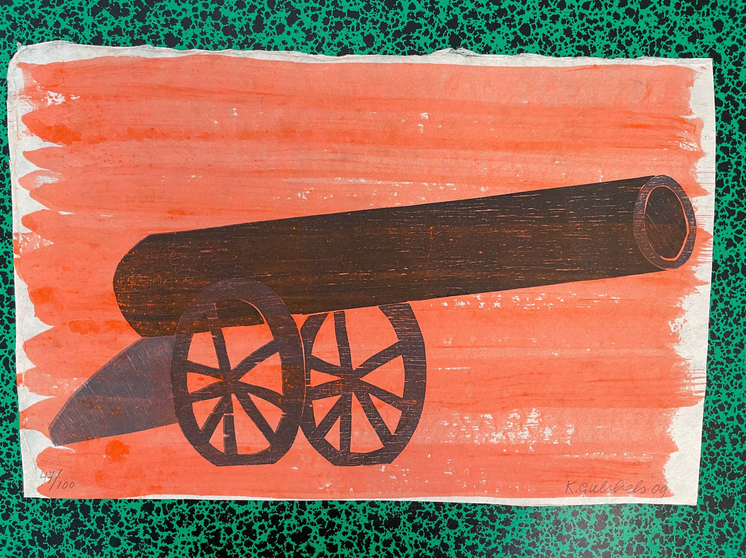 Het gaat hier om een door Klaas Gubbels met aquarel bewerkte houtdruk.