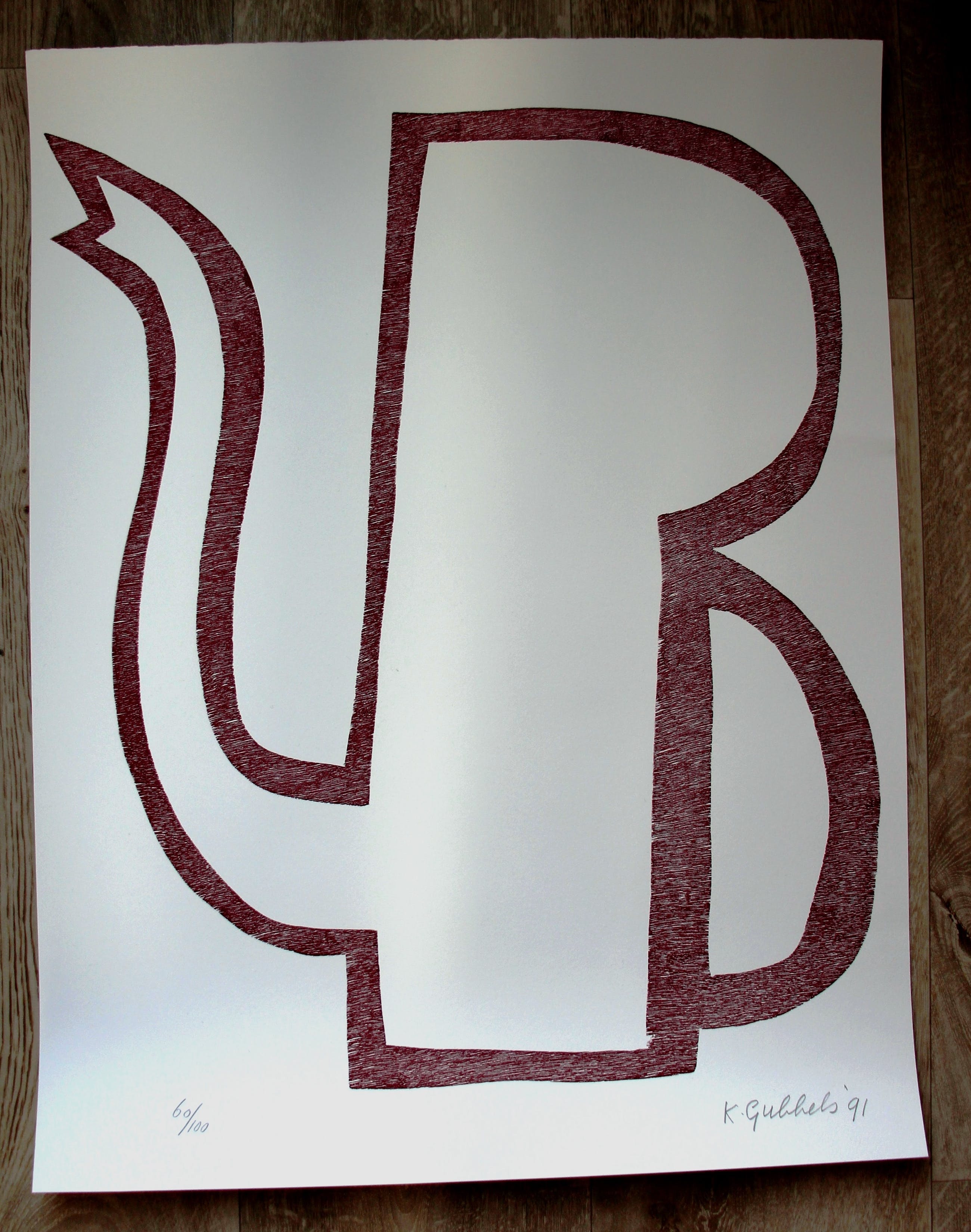Houtdruk van Klaas Gubbels uit 1991. Nummer: 60/100. Afmetingen blad: H65 x b50cm. Afmetingen voorstelling H55 x b48cm. Het werk is rechtsonder gesigneerd door de kunstenaar. De authenticiteit van dit werk wordt volledig gegarandeerd. Een certificaat kan, op aanvraag, worden gemaild.