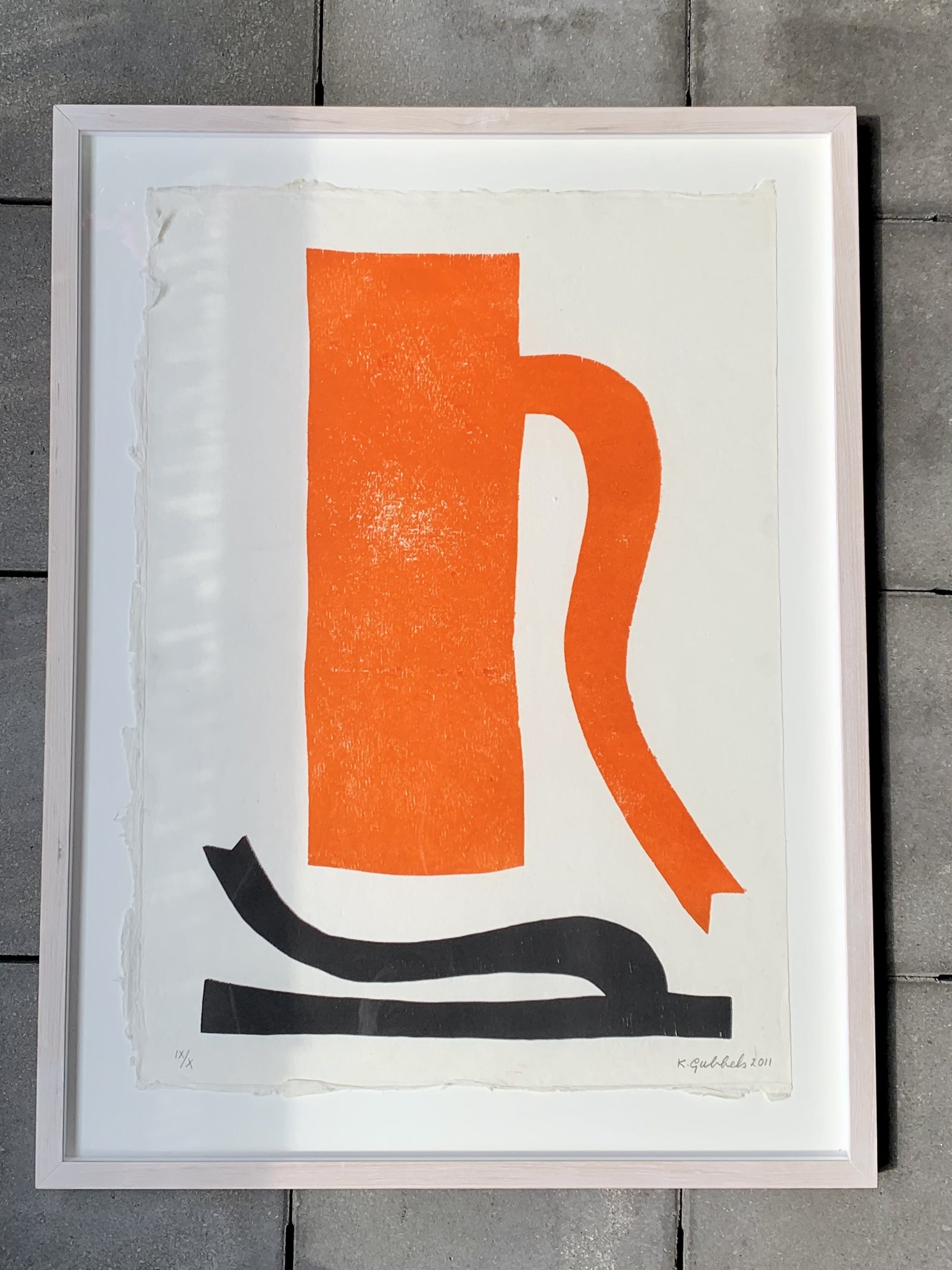 Recent(2021) ingelijste houtdruk Baselitz groot van Klaas Gubbels. Romeins genummerd IX/X. Nummer 9 een exclusieve oplage van slechts 10 exemplaren. Gesigneerd. In super conditie.