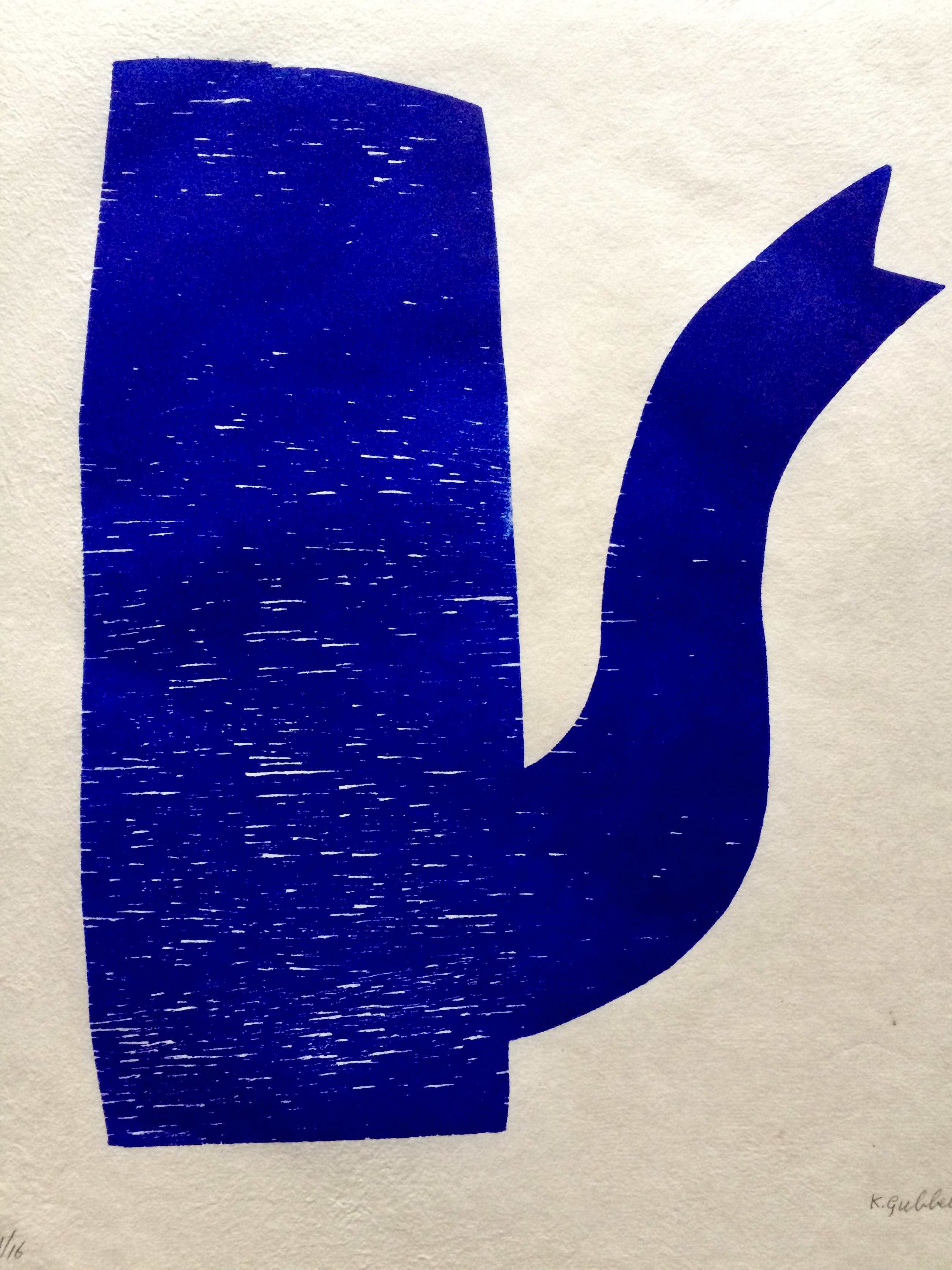 Een zeer fraaie houtdruk van Klaas Gubbels, getiteld ' Blauwe Kan’ uit 2019.