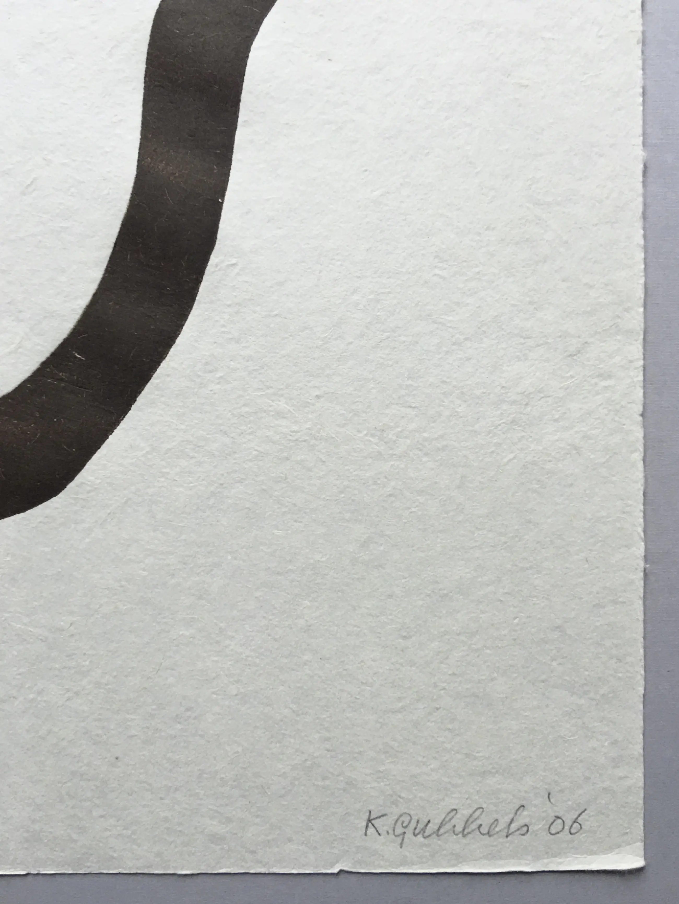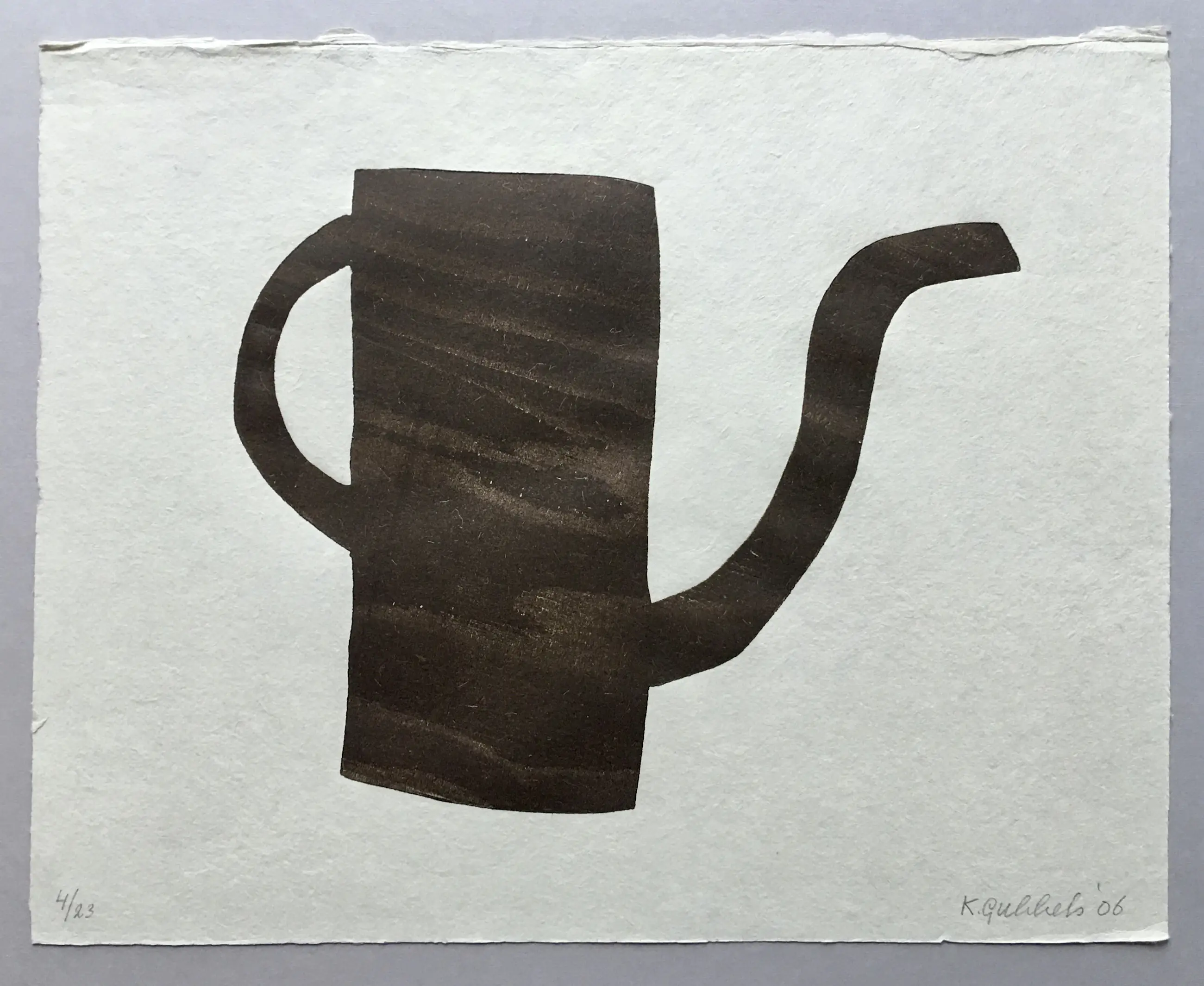Een zeer fraaie houtdruk van Klaas Gubbels, ‘Bruine kan ’ uit 2006 oplage 23 ex.
