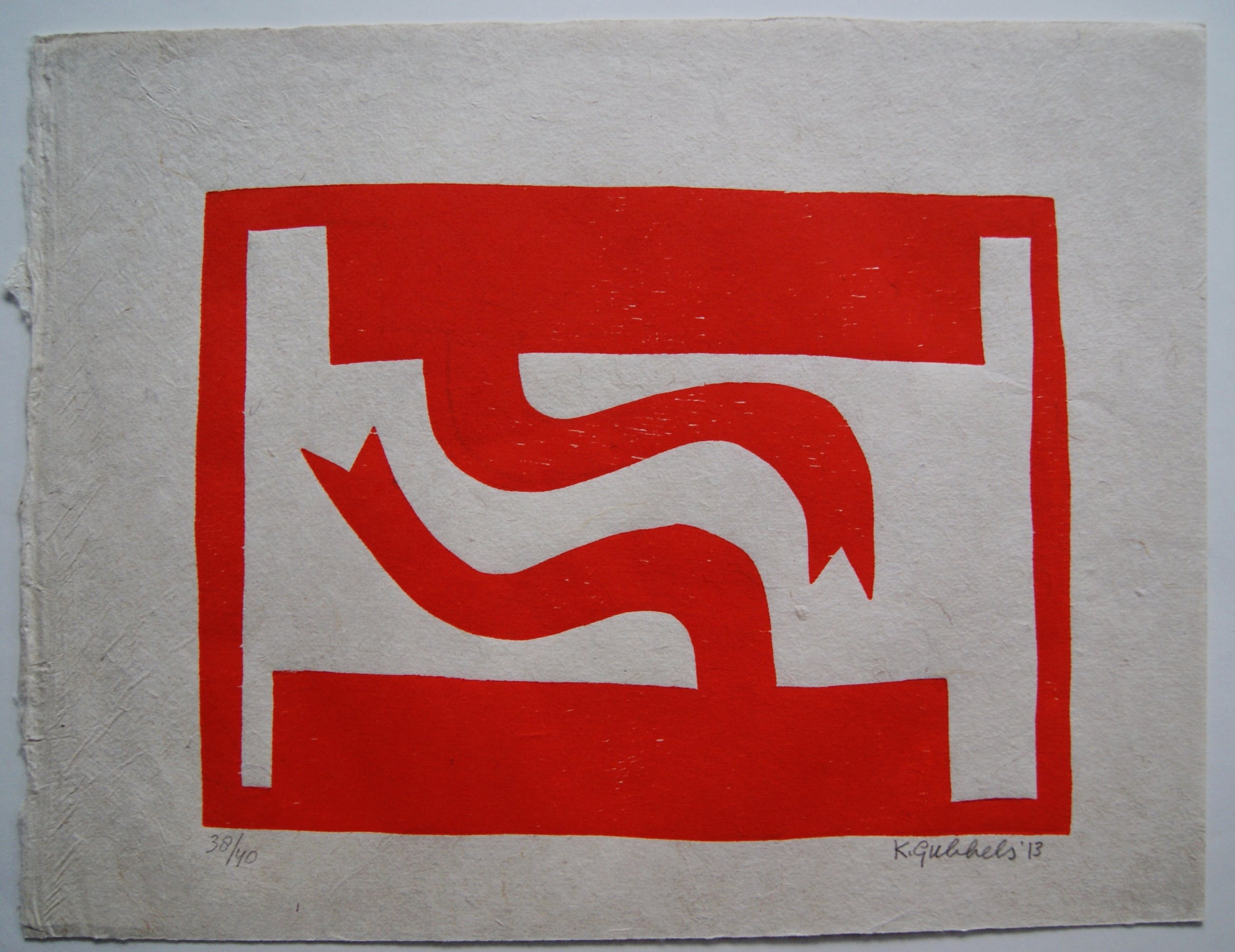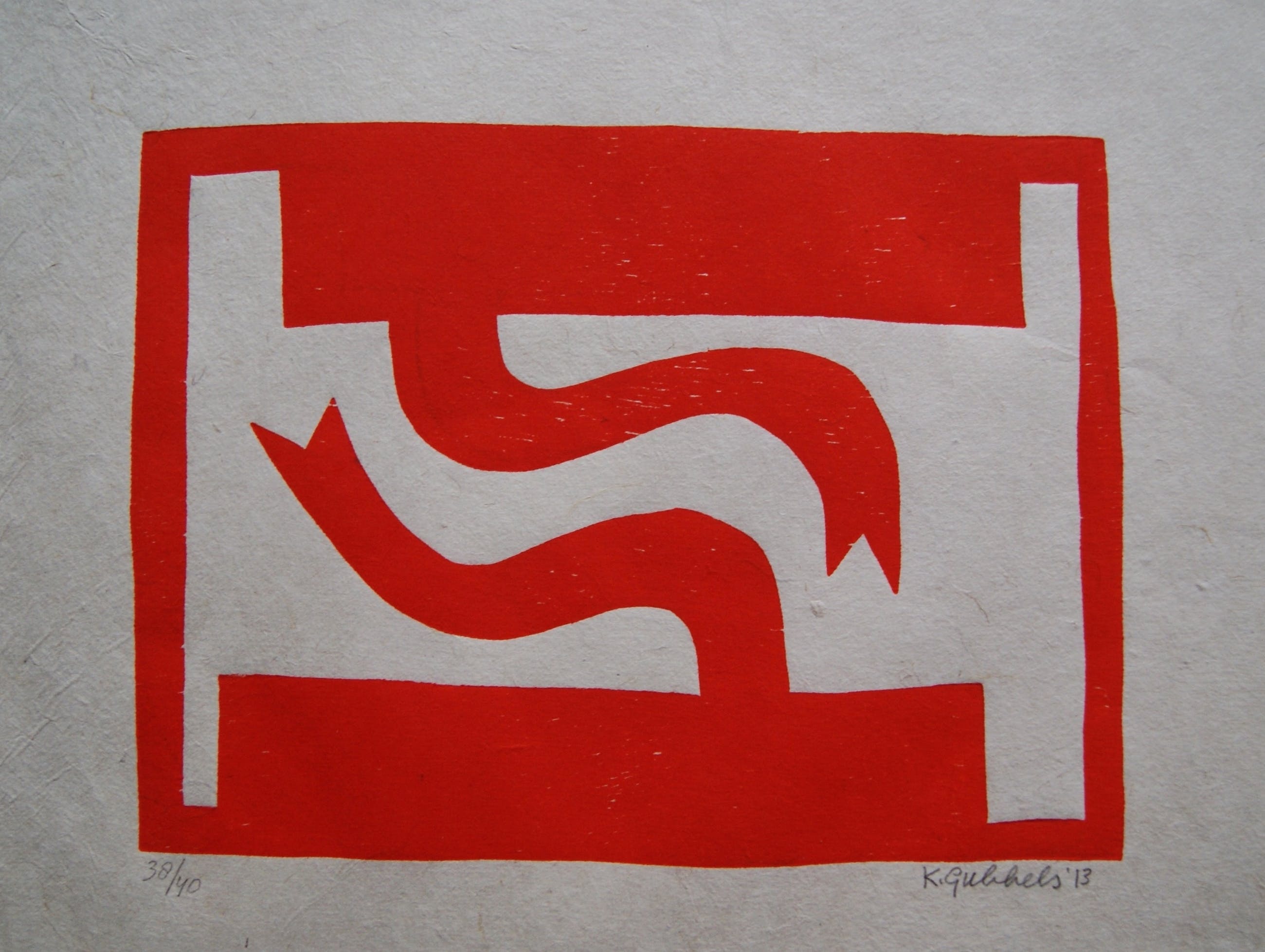 Een zeer fraaie houtdruk op handgeschept papier van Klaas Gubbels uit 2013.