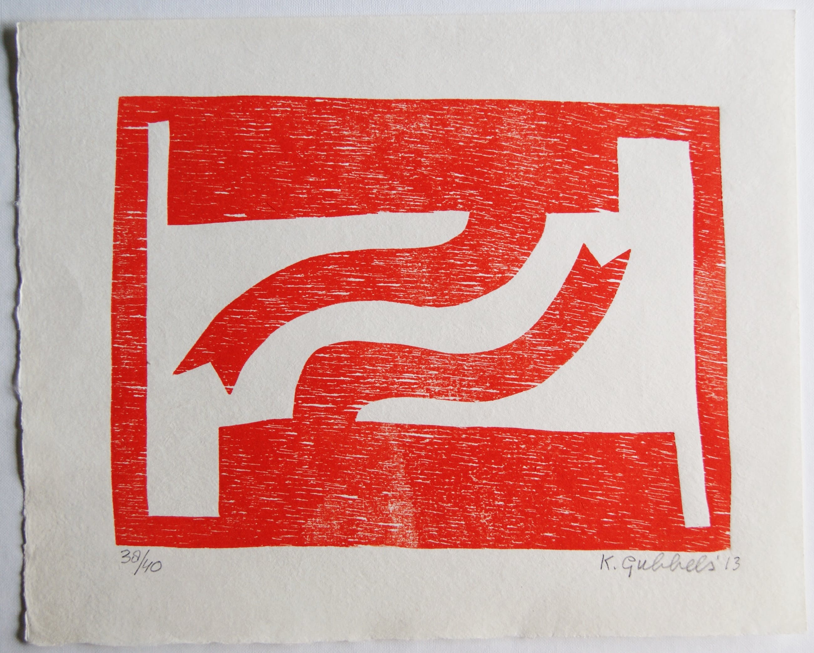Een zeer fraaie houtdruk op handgeschept papier van Klaas Gubbels uit 2013.