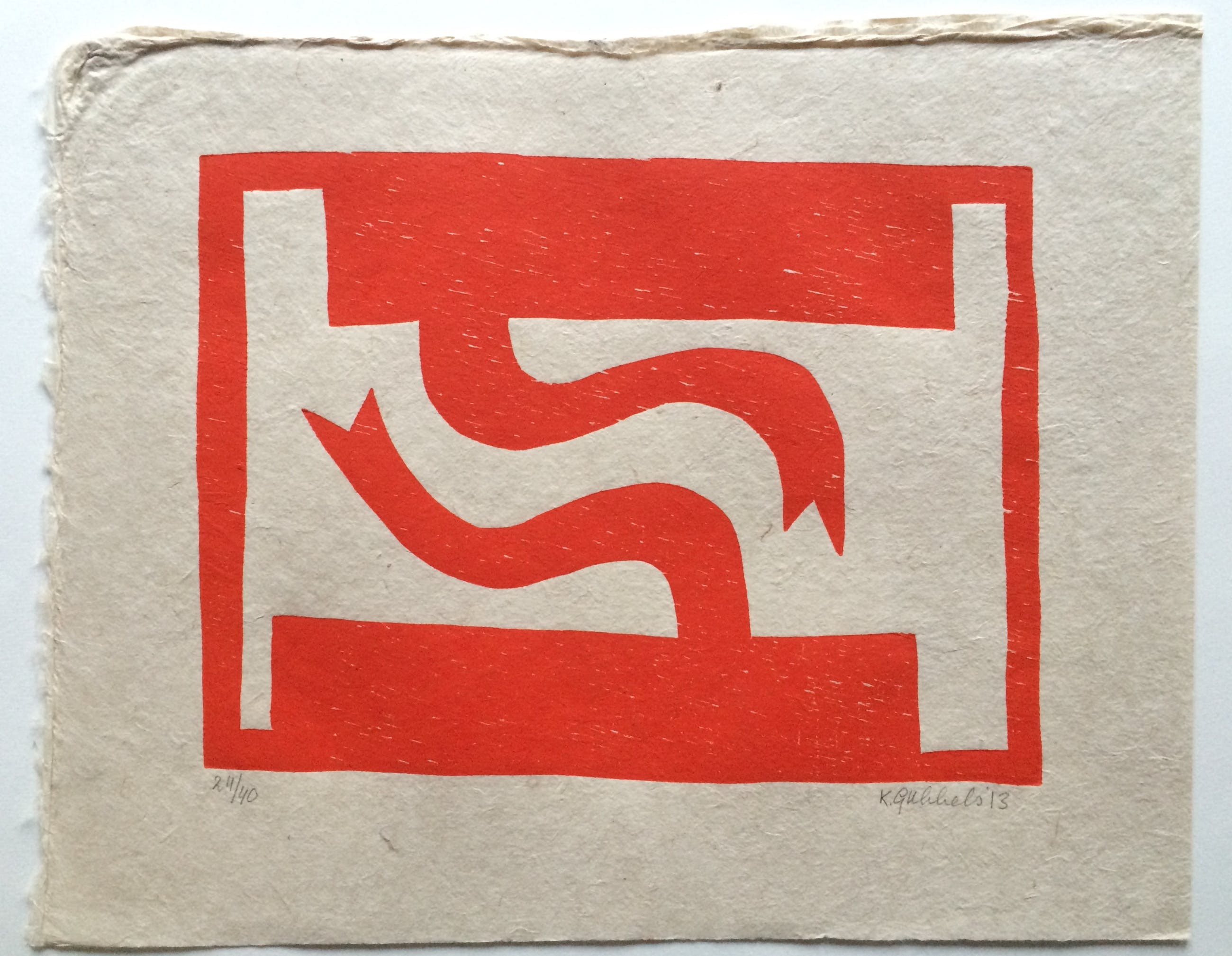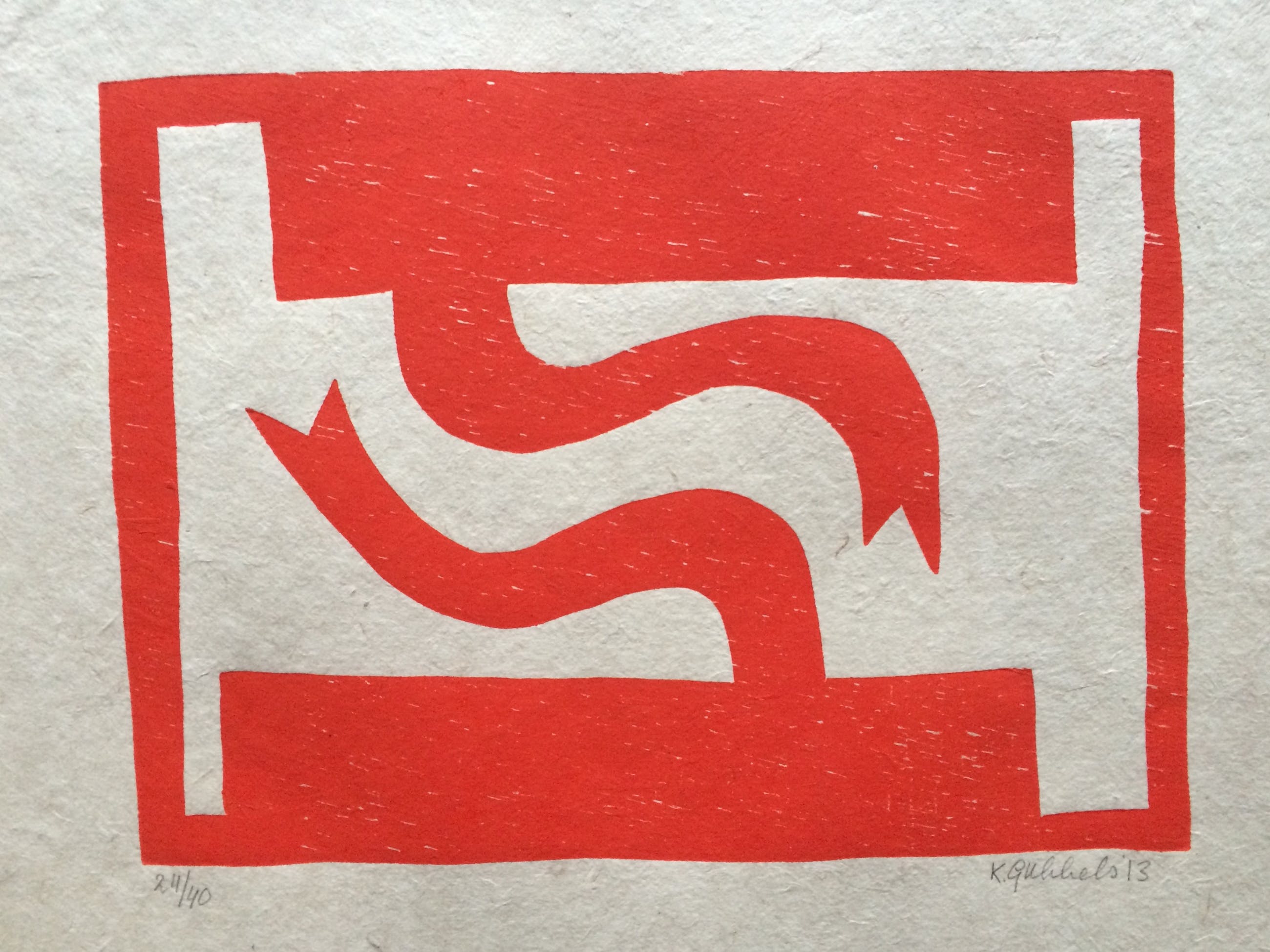 Een zeer fraaie houtdruk op handgeschept papier van Klaas Gubbels uit 2013.