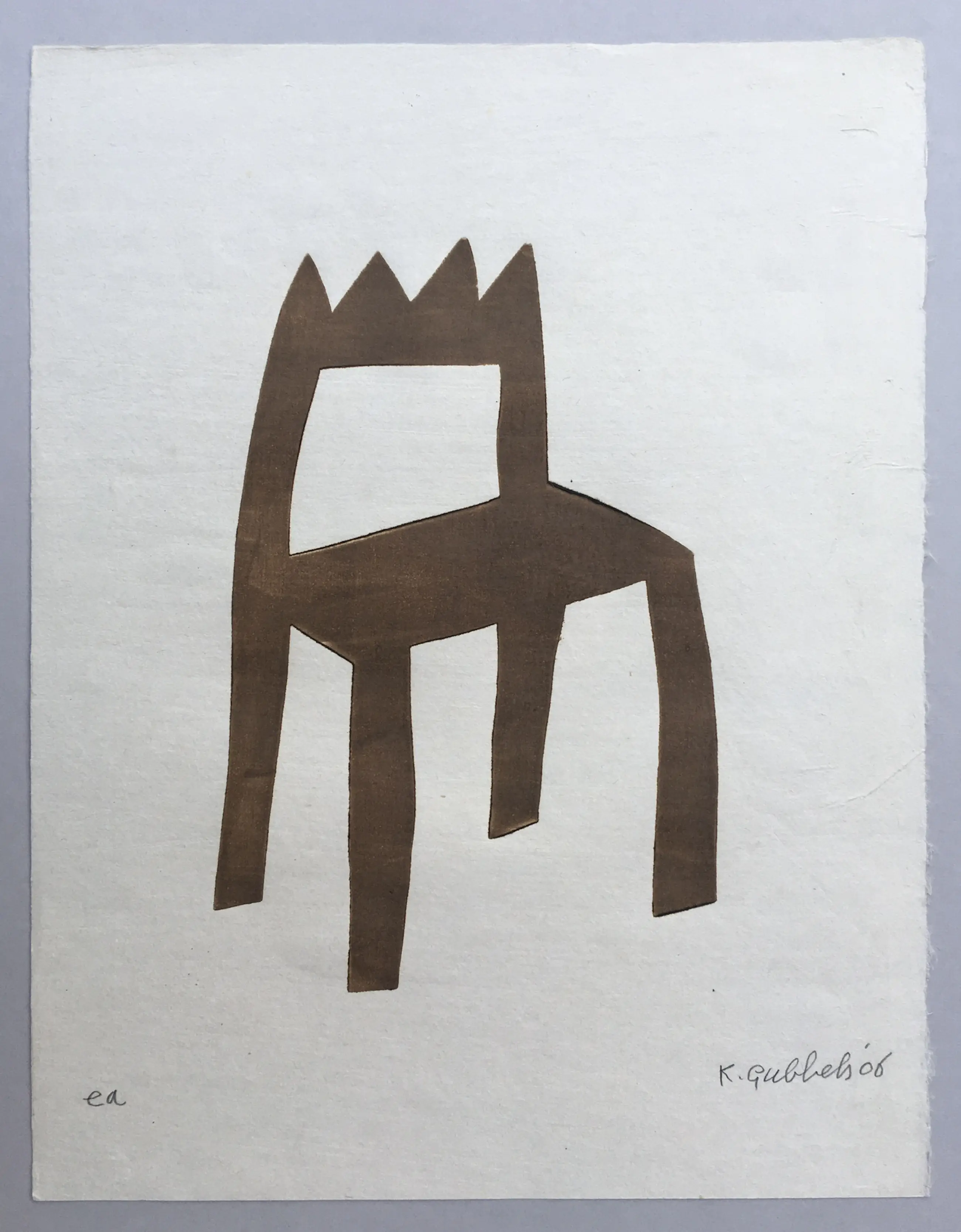 Een zeer fraaie houtdruk van Klaas Gubbels, ‘Koningsstoel’ uit 2006 oplage EA.