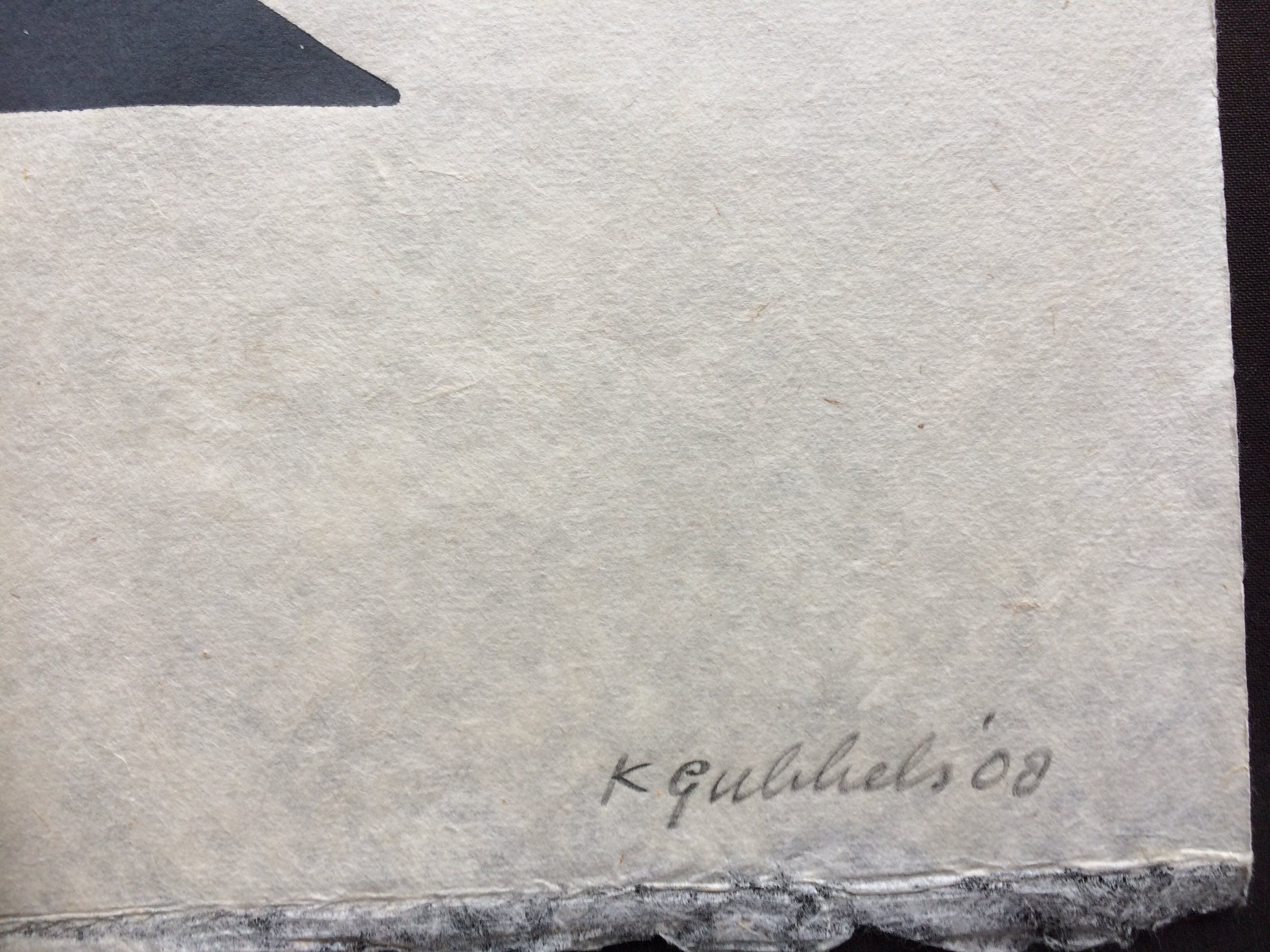 De houtdruk is gesigneerd en genummerd, oplage X/X.
