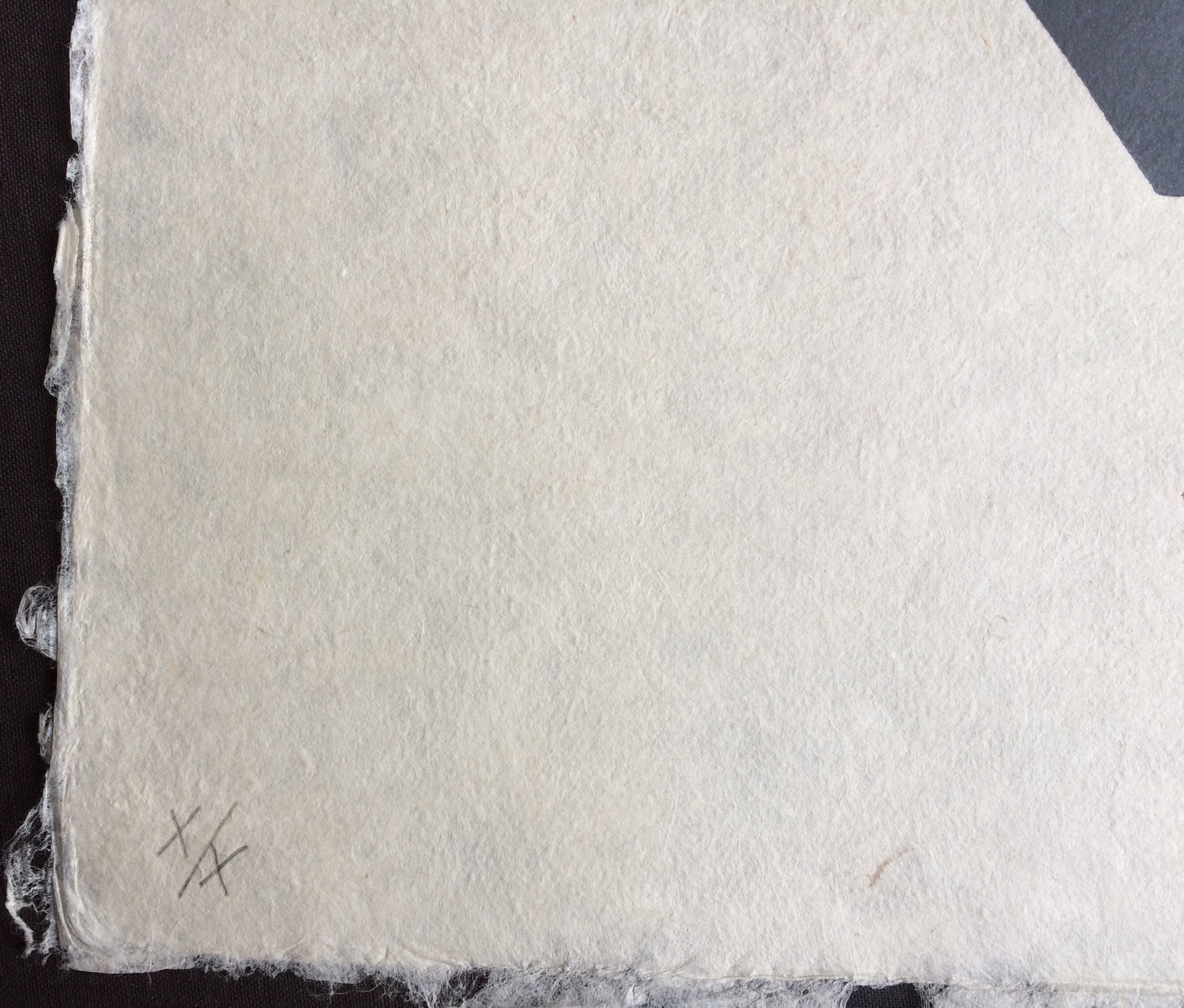 Het werk is uitgevoerd op handgeschept papier en heeft de afmetingen: 70 x 50cm.
