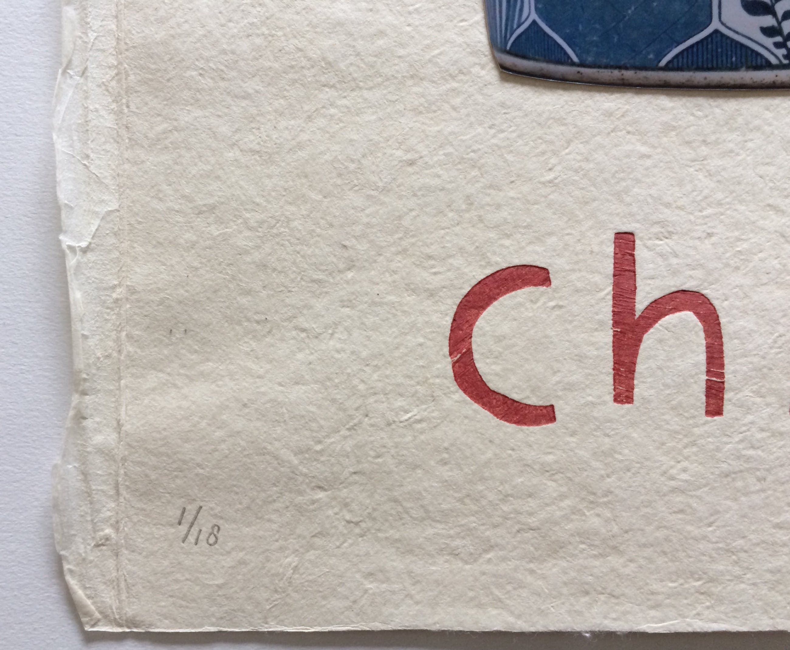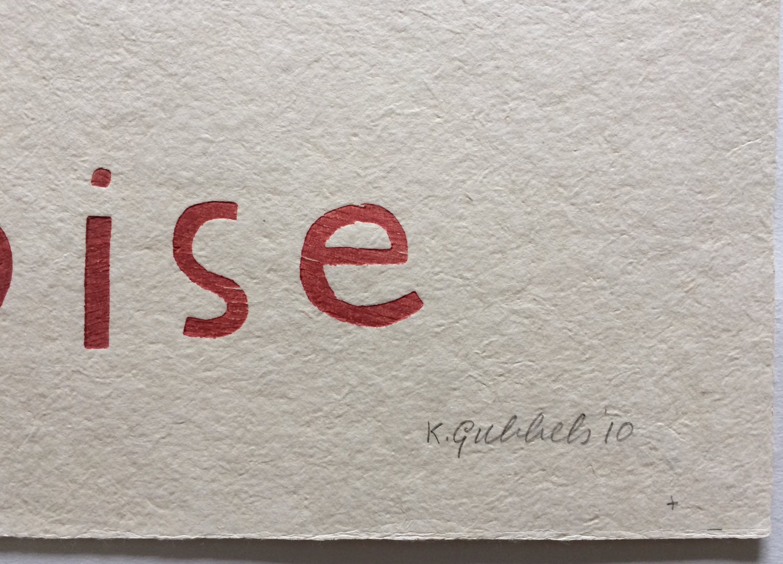 Een zeer fraaie houtdruk met collage op handgeschept papier van Klaas Gubbels uit 2010.