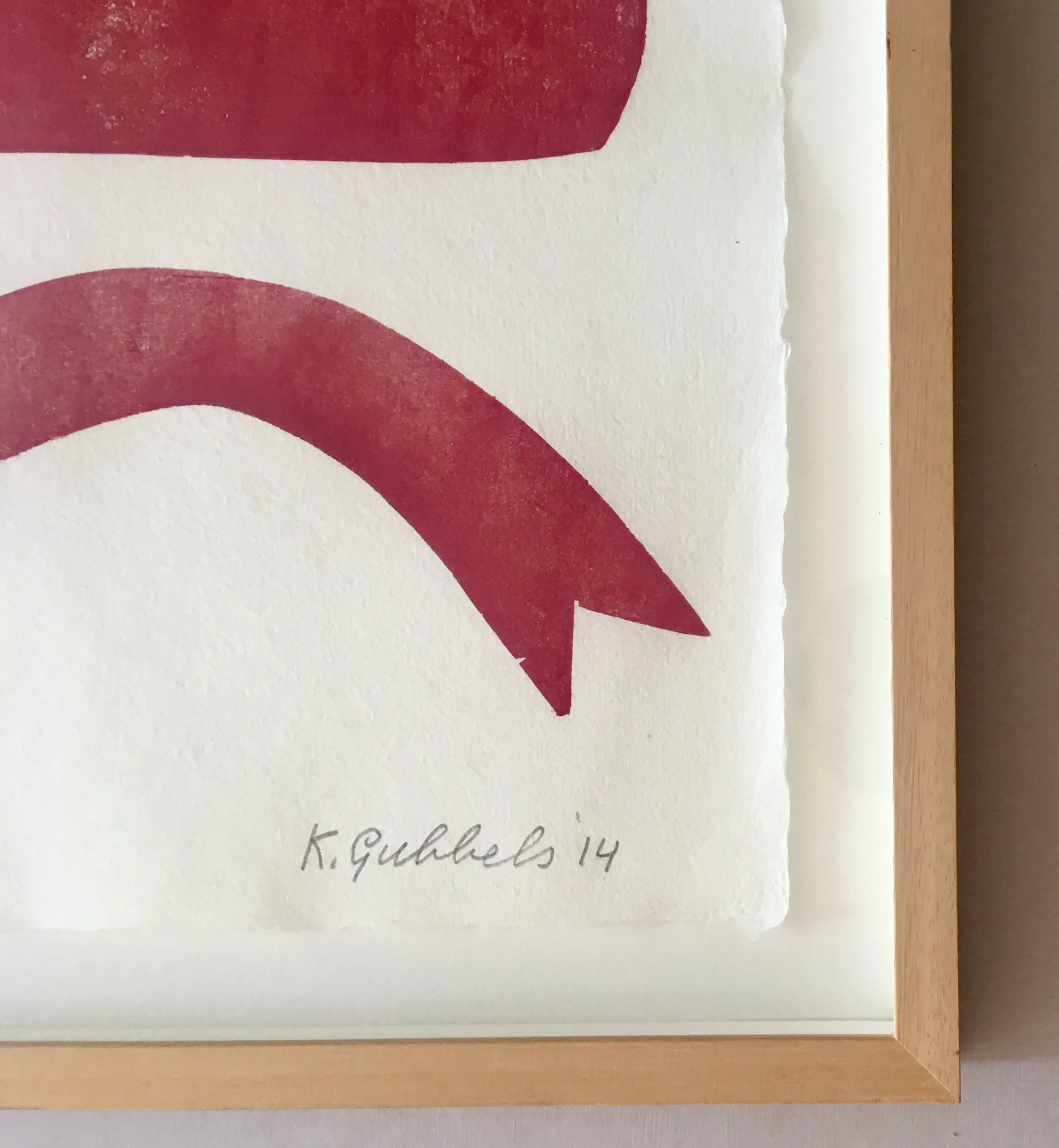 Een erg fraaie houtdruk van Klaas Gubbels uit 2014 Het werk is gesigneerd en genummerd, oplage 20/24 Verdiept ingelijst in een licht houten lijst.