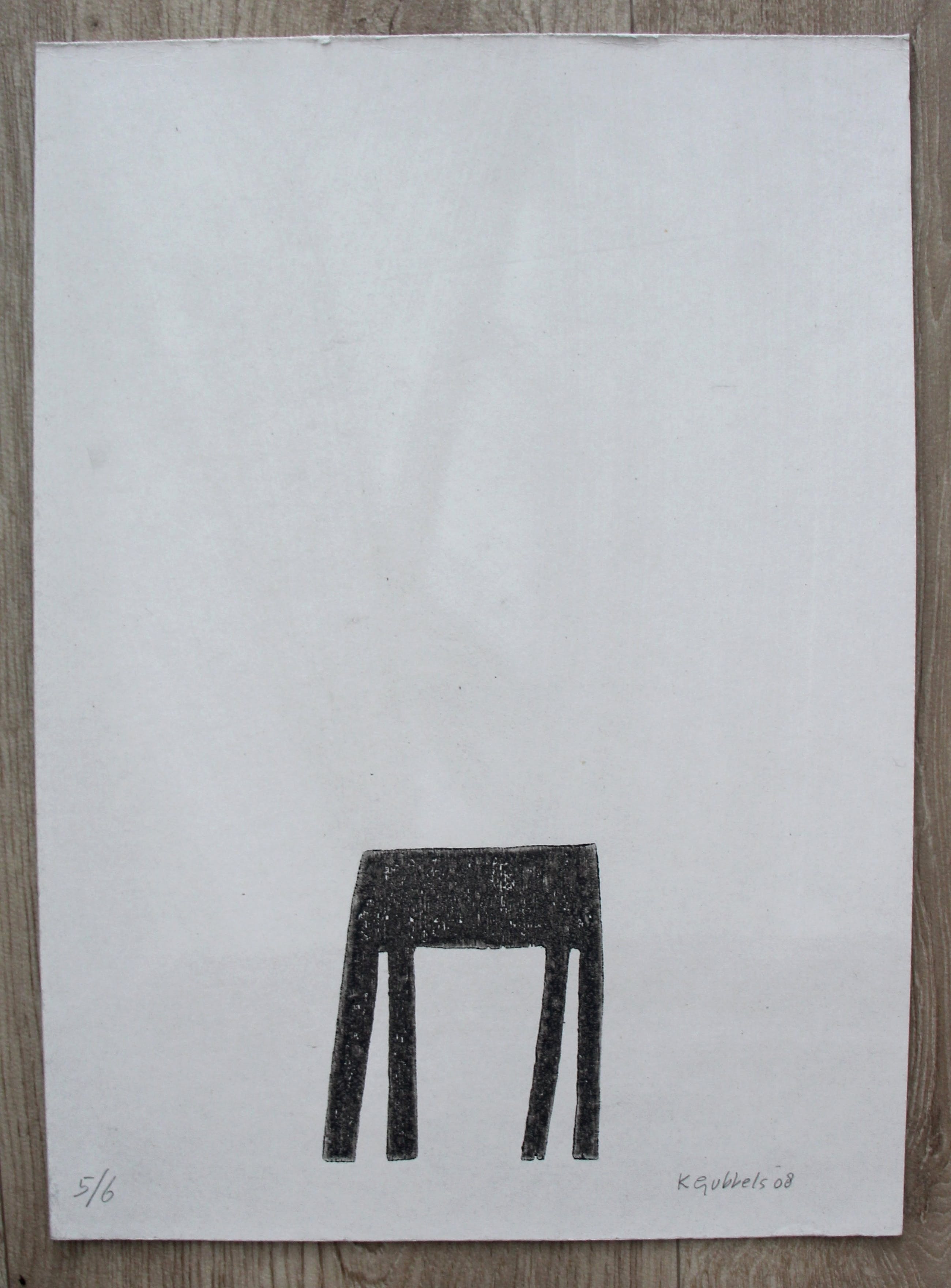 Houtdruk van Klaas Gubbels uit 2008. Titel: Tafel. Nummer: 5/6. Jaar: 2008. Afmetingen blad: H35 x b25cm. Afmetingen voorstelling: H10 x b8 cm. Het werk is rechts onderaan, met potlood, gesigneerd door de kunstenaar. De authenticiteit van dit werk wordt volledig gegarandeerd. Een certificaat van echtheid kan, op aanvraag, worden gemaild.