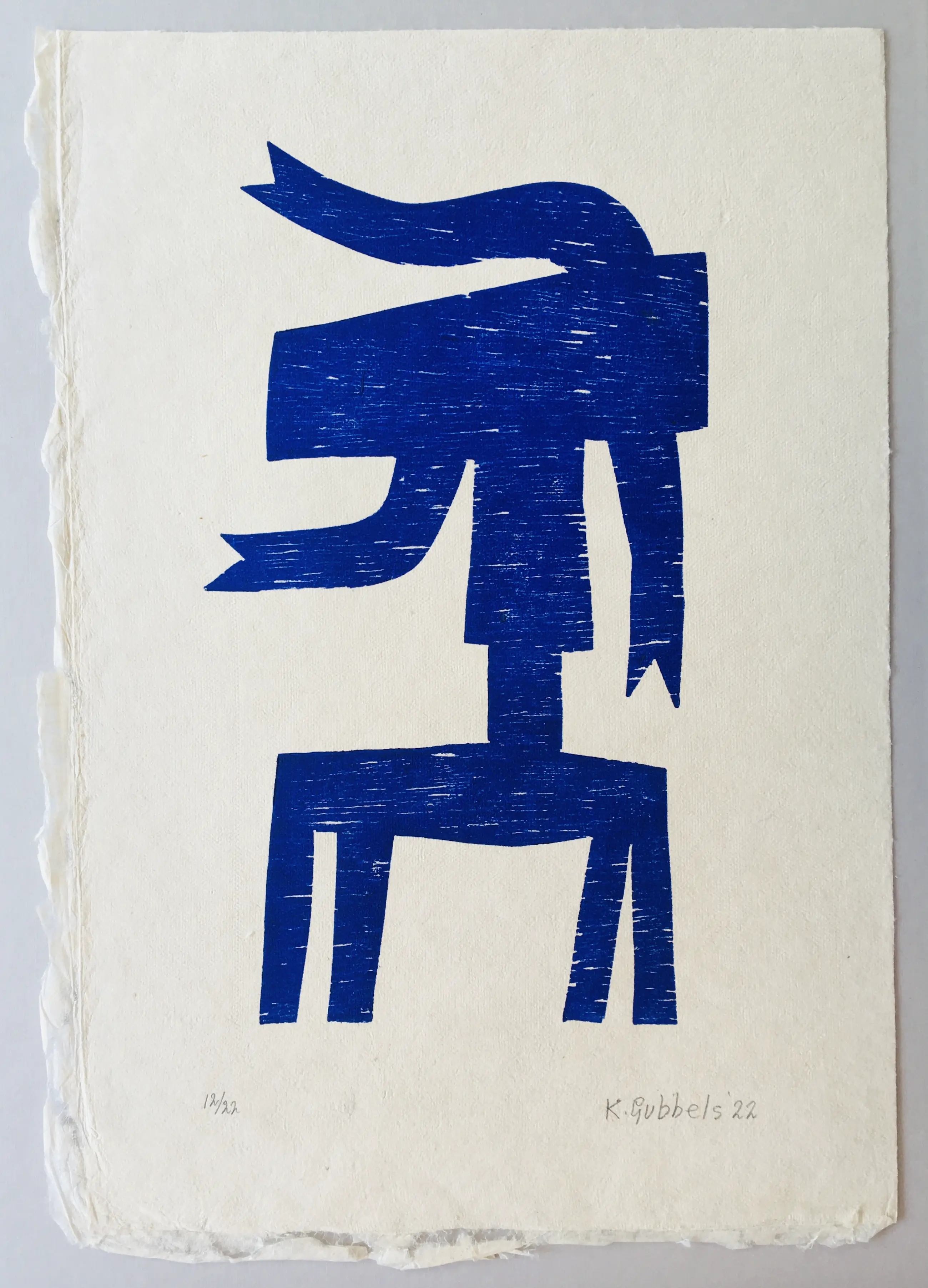 Een zeer fraaie houtdruk op handgeschept papier van Klaas Gubbels, ‘Zijwaarts’ uit 2022 oplage 22.