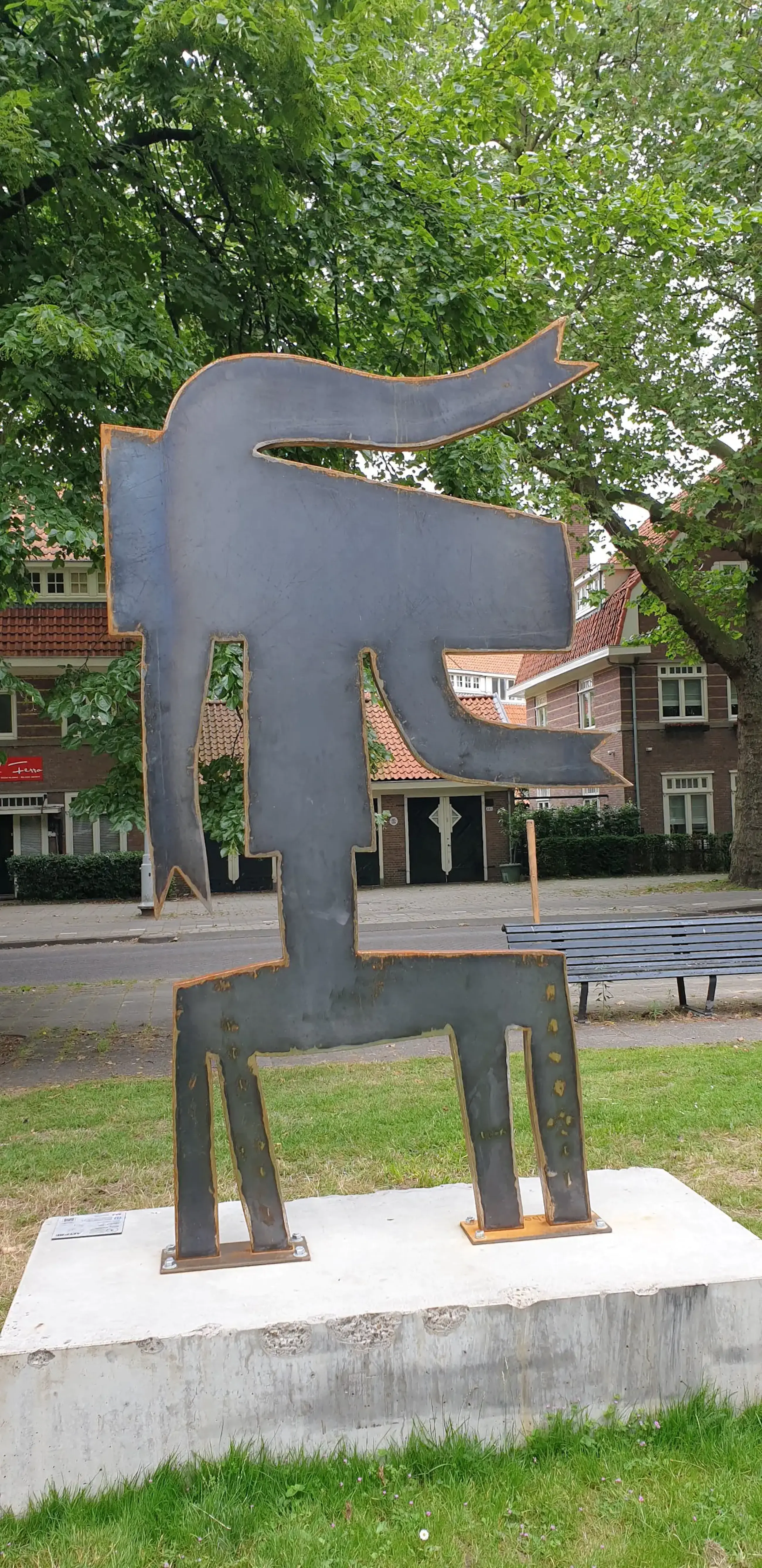 Een groot stalen beeld van ‘Zijwaarts’ is te zien bij ArtZuid in Amsterdam.