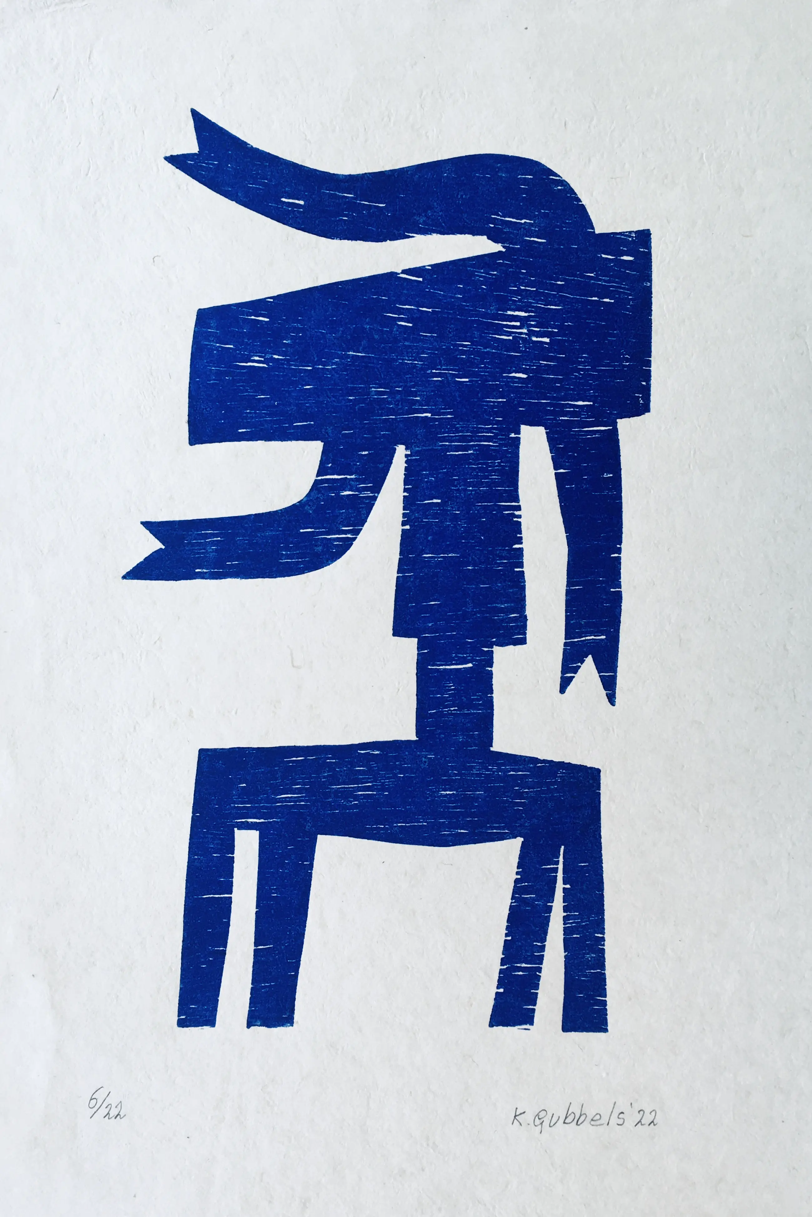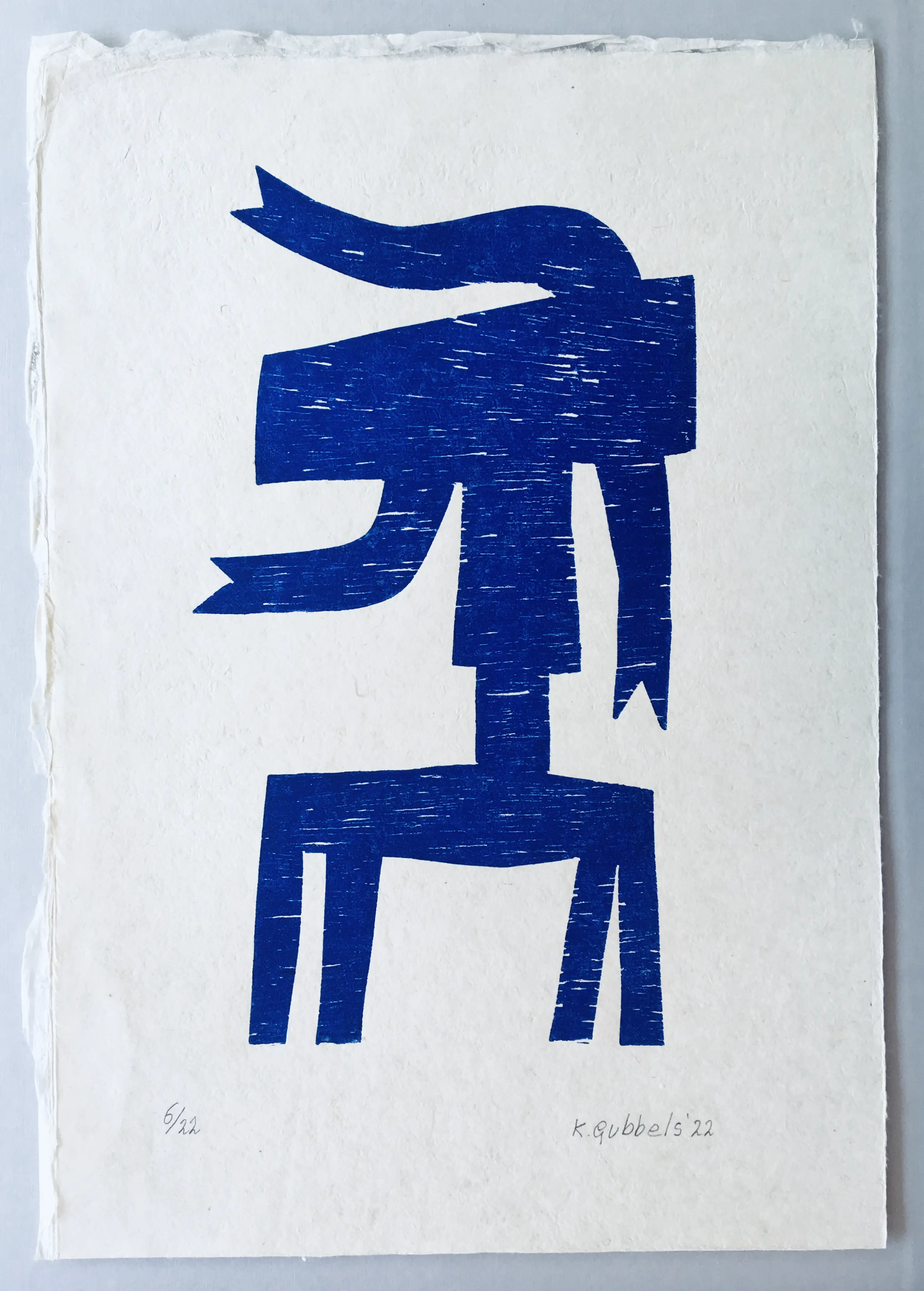 Een zeer fraaie houtdruk op handgeschept papier van Klaas Gubbels, ‘Zijwaarts’ uit 2022 oplage 22.
